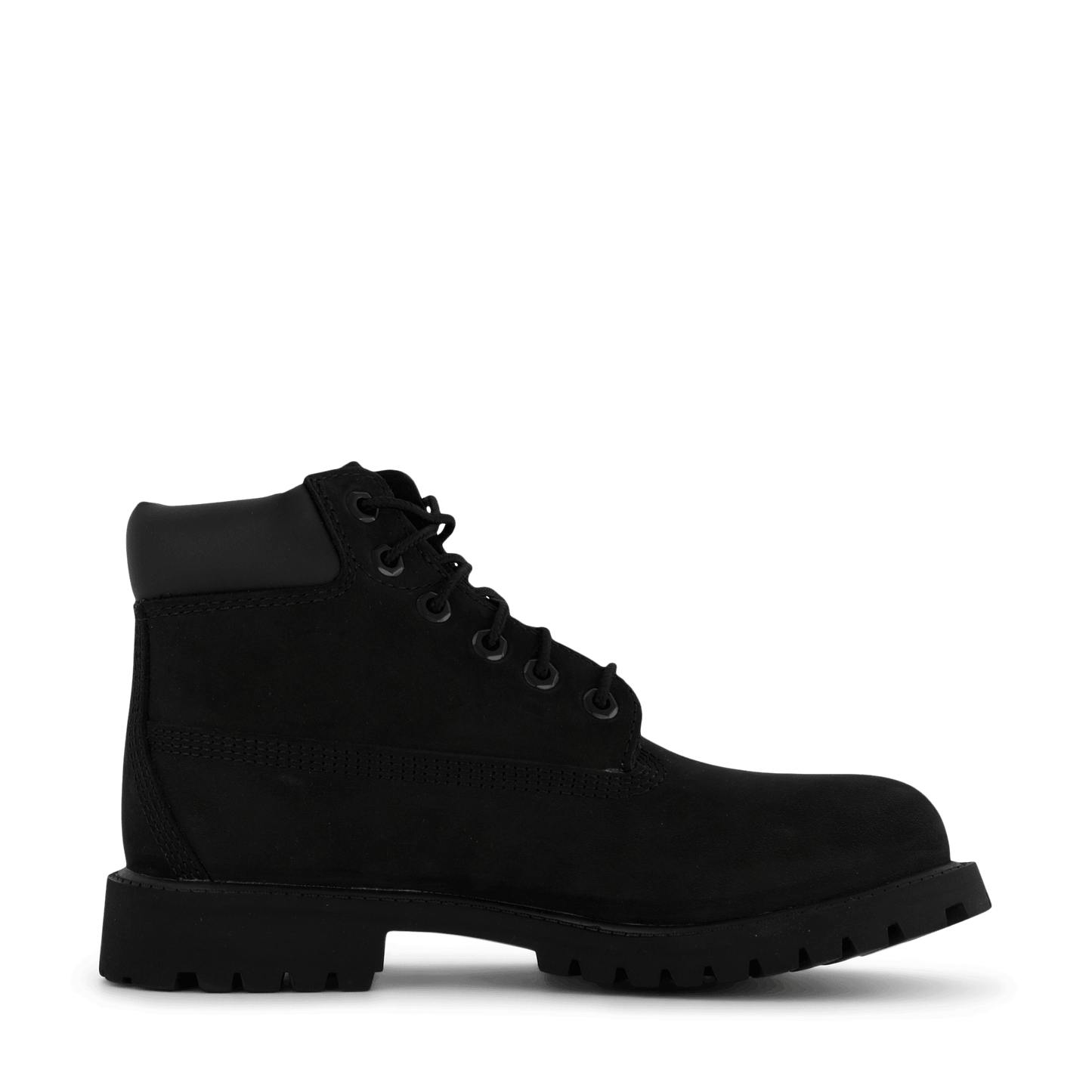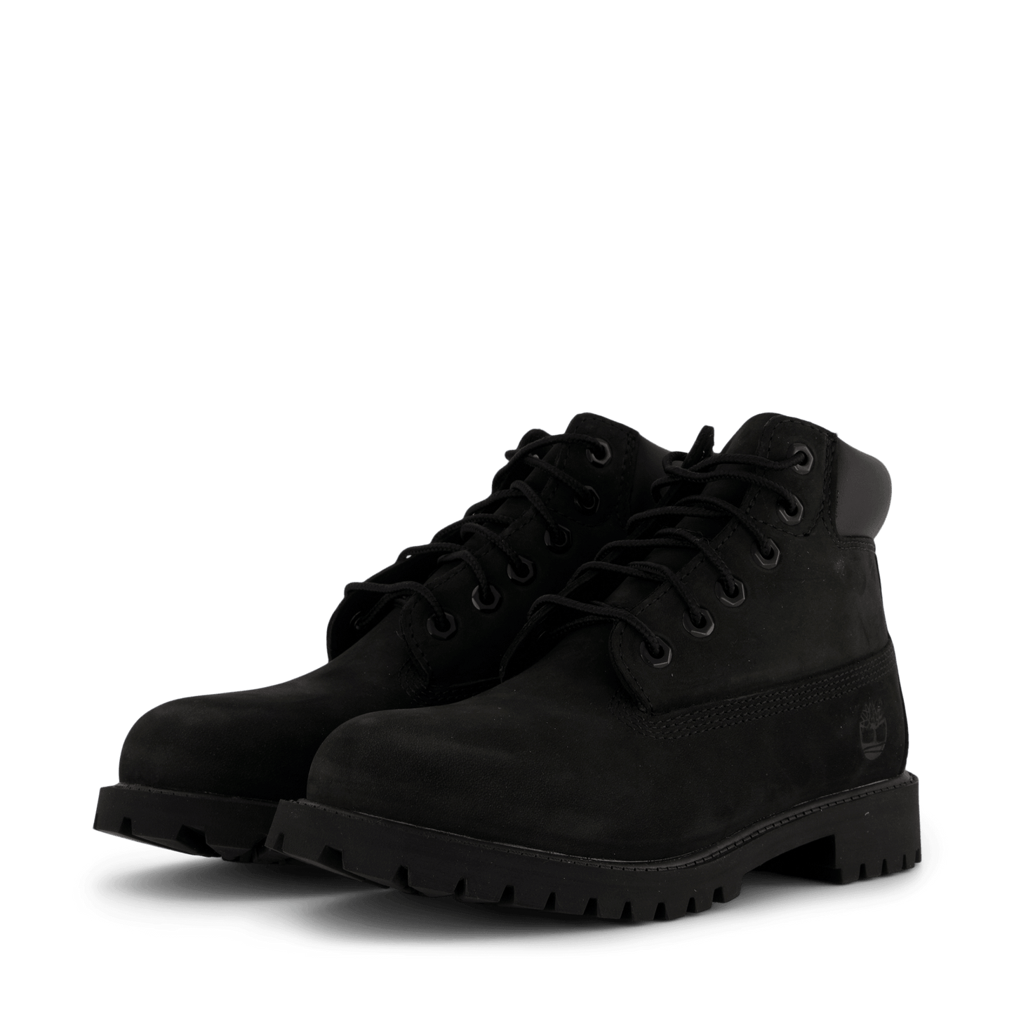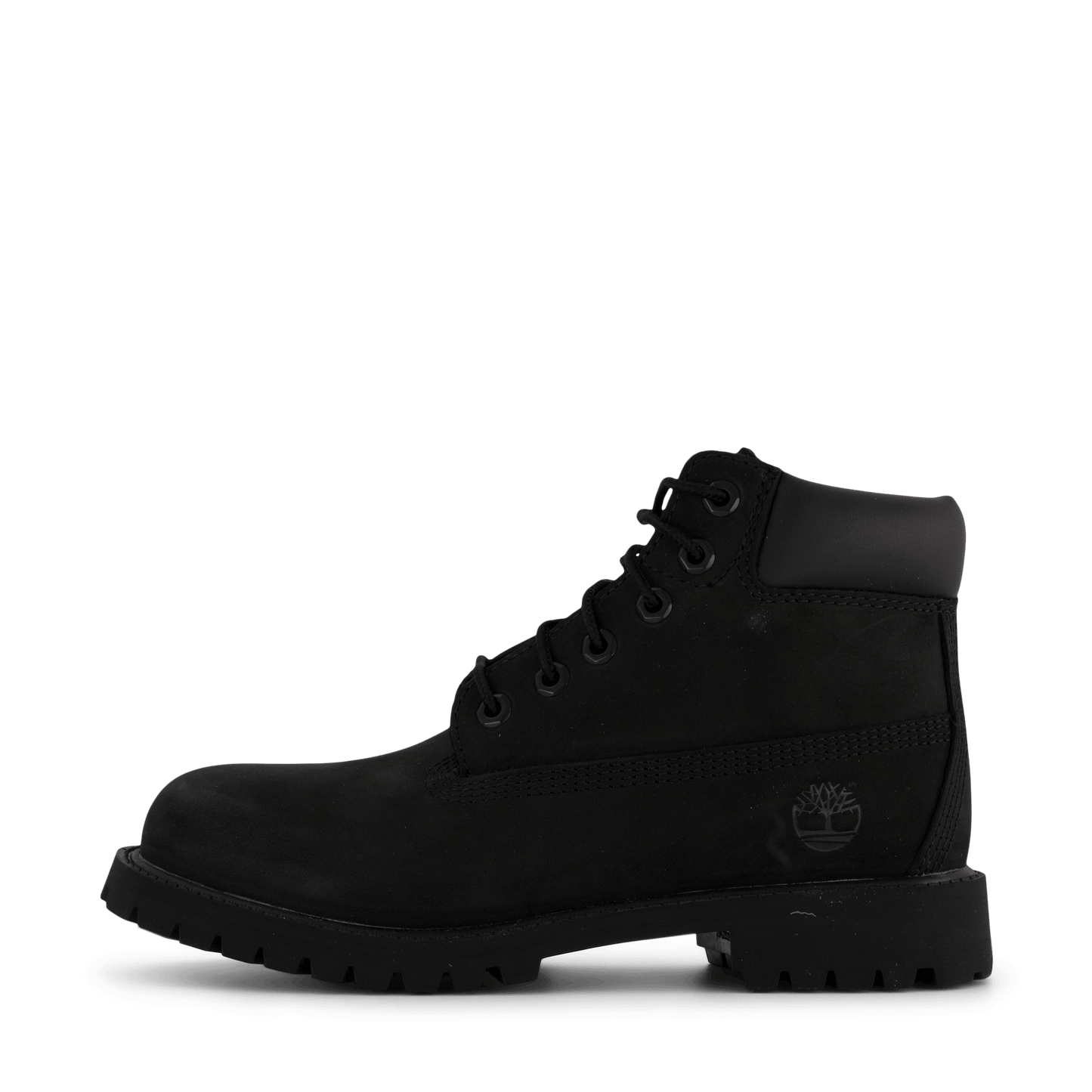Timberland's 6-inch Premium Waterproof Boot in Black Nubuck Mono combines style and functionality. Crafted with sustainable Better Leather, this youth boot features 200g PrimaLoft® ECO insulation, seam-sealed waterproof construction, and a ReBOTL™ fabric lining. The rugged rubber lug outsole, steel shank for arch support, and shock-absorbing EVA footbed ensure comfort and durability for various outdoor activities.