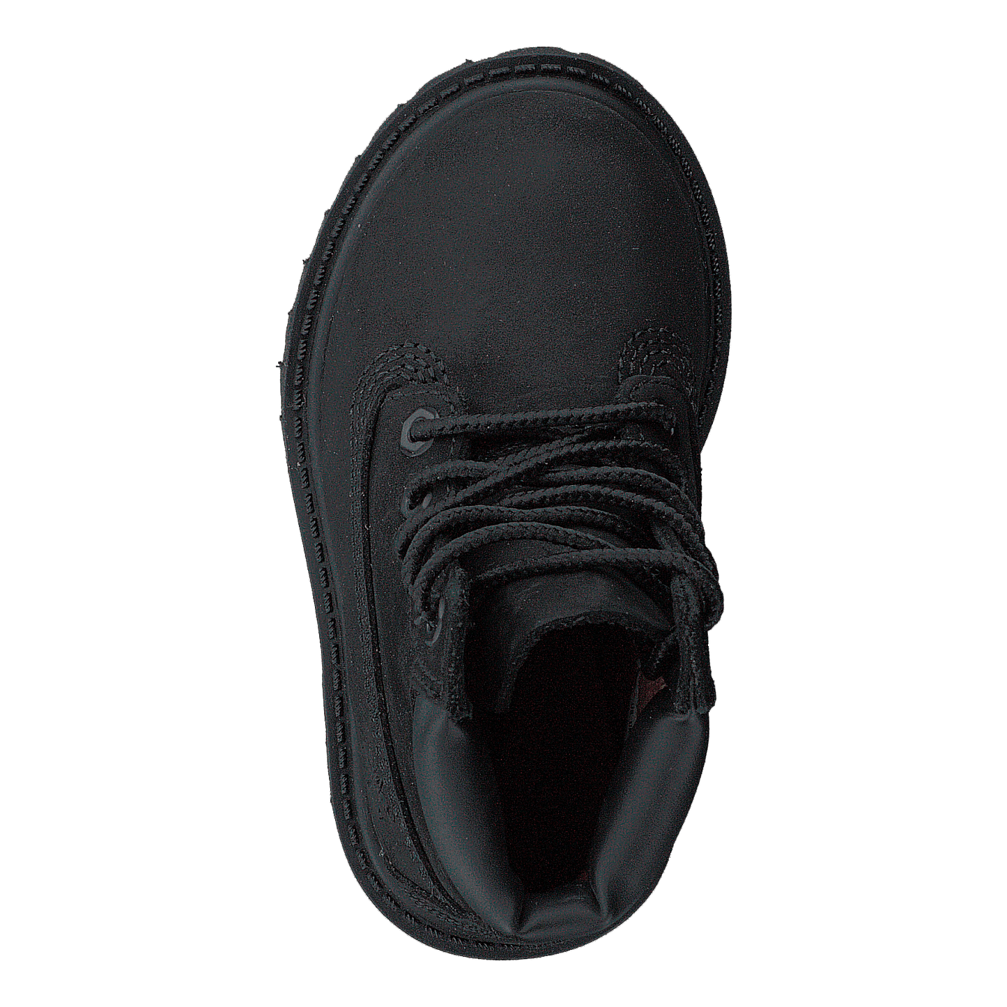 Timberland's 6-inch Premium Waterproof Black Nubuck Mono boot for toddlers combines style and functionality. Crafted from sustainable nubuck leather, these boots feature eco-conscious PrimaLoft® insulation, recycled plastic lining, and 100% PET laces. With seam-sealed waterproof construction, padded collar, and durable rubber lug outsole, they offer comfort and protection for little feet in various conditions.