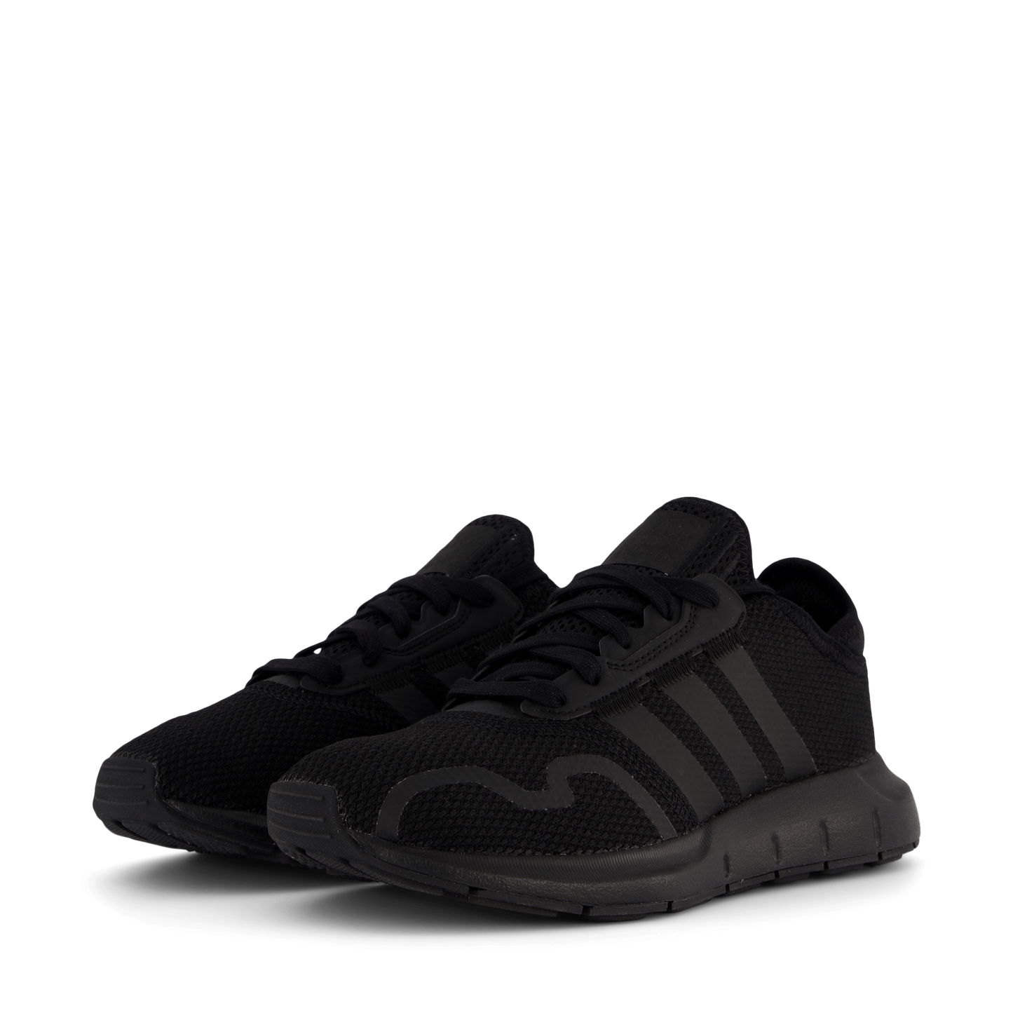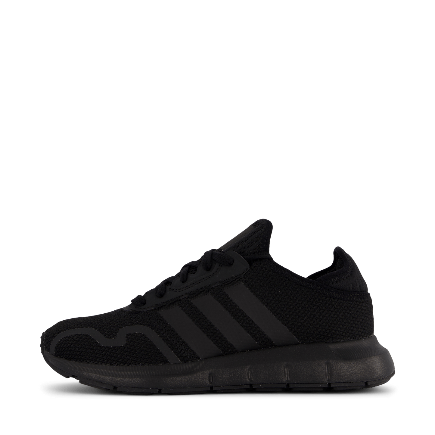 Sleek and stylish, these all-black adidas Swift Run X J shoes offer comfort and versatility for active juniors. Featuring a breathable mesh upper, lightweight cushioning, and OrthoLite® sockliner, they provide a snug fit for all-day wear. The iconic three-stripe design blends seamlessly into the monochromatic look, perfect for both athletic pursuits and casual outings.