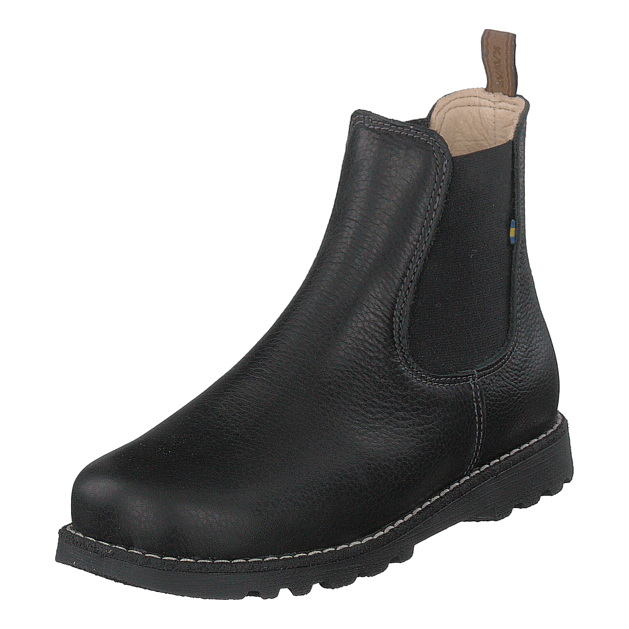 Kavat's Bodås Jr Ep Black is a sleek, Chelsea-style boot crafted from high-quality black leather. Featuring elastic side panels for easy slip-on wear, a sturdy rubber sole, and a pull tab at the back, this versatile boot combines durability with style. Its lightweight design, PU foam insole, and slip-resistant fit ensure comfort and protection against moisture and scratches, making it suitable for both casual and semi-formal occasions.