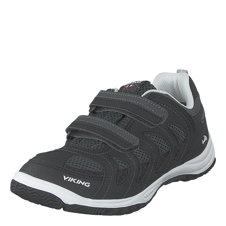 The Cascade II Black/grey is a versatile, waterproof shoe designed for active children. Featuring a durable polyester mesh upper with PU reinforcements, GORE-TEX® membrane for breathability, and two adjustable Velcro straps for easy fitting. The reinforced last provides stability, while the patterned rubber sole ensures excellent traction on various surfaces, making it ideal for all-weather activities.