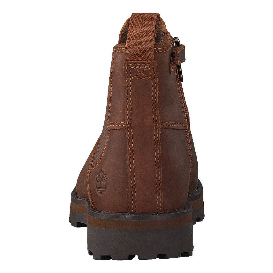 Crafted with premium Better Leather, these youth Chelsea boots feature a glazed ginger finish and eco-friendly ReBOTL™ fabric lining. Equipped with a convenient side zip, breathable OrthoLite® footbed, and "Does it Fit?" sockliner, they offer comfort and practicality. The durable rubber outsole ensures grip, while Defender Repellent Systems® treatment provides stain protection.
