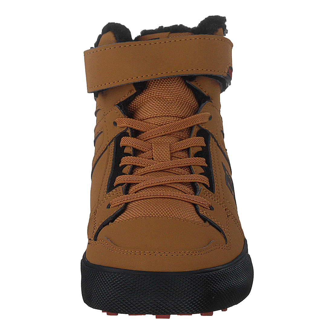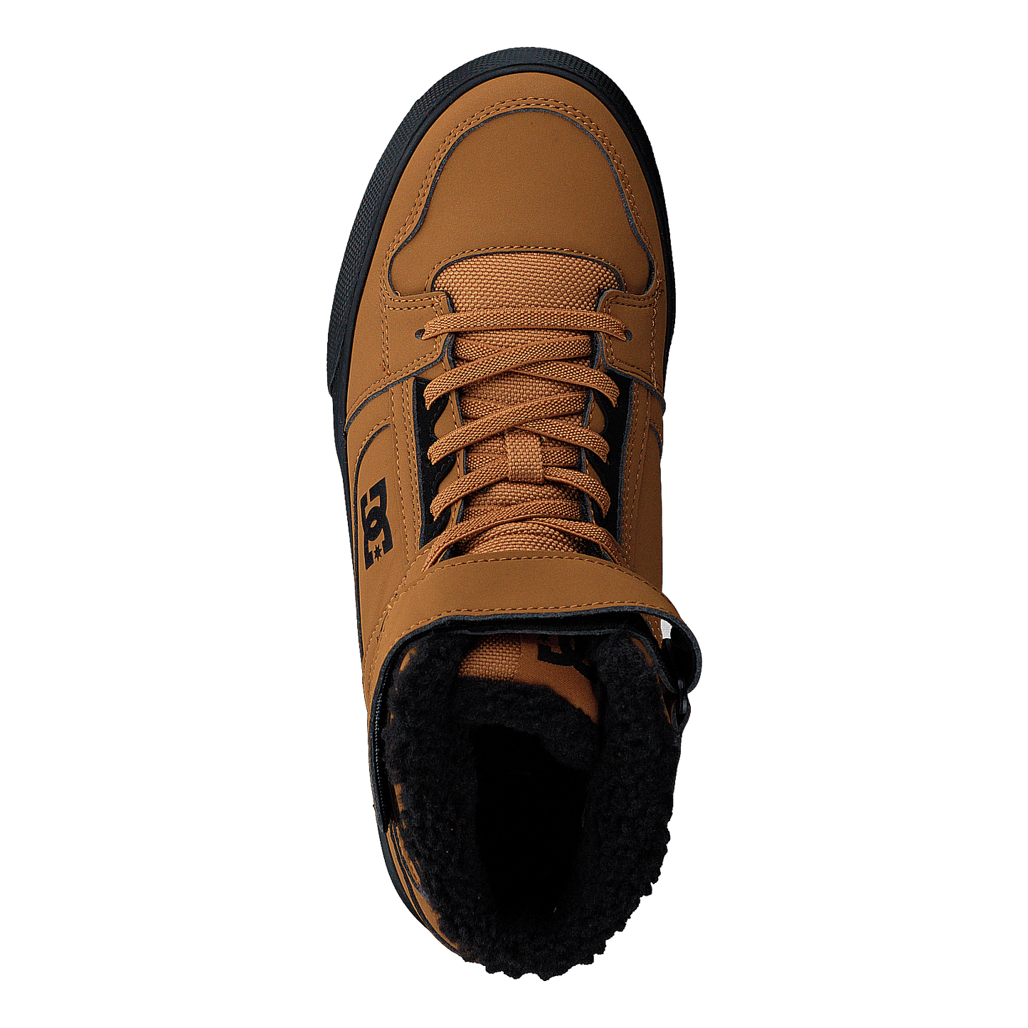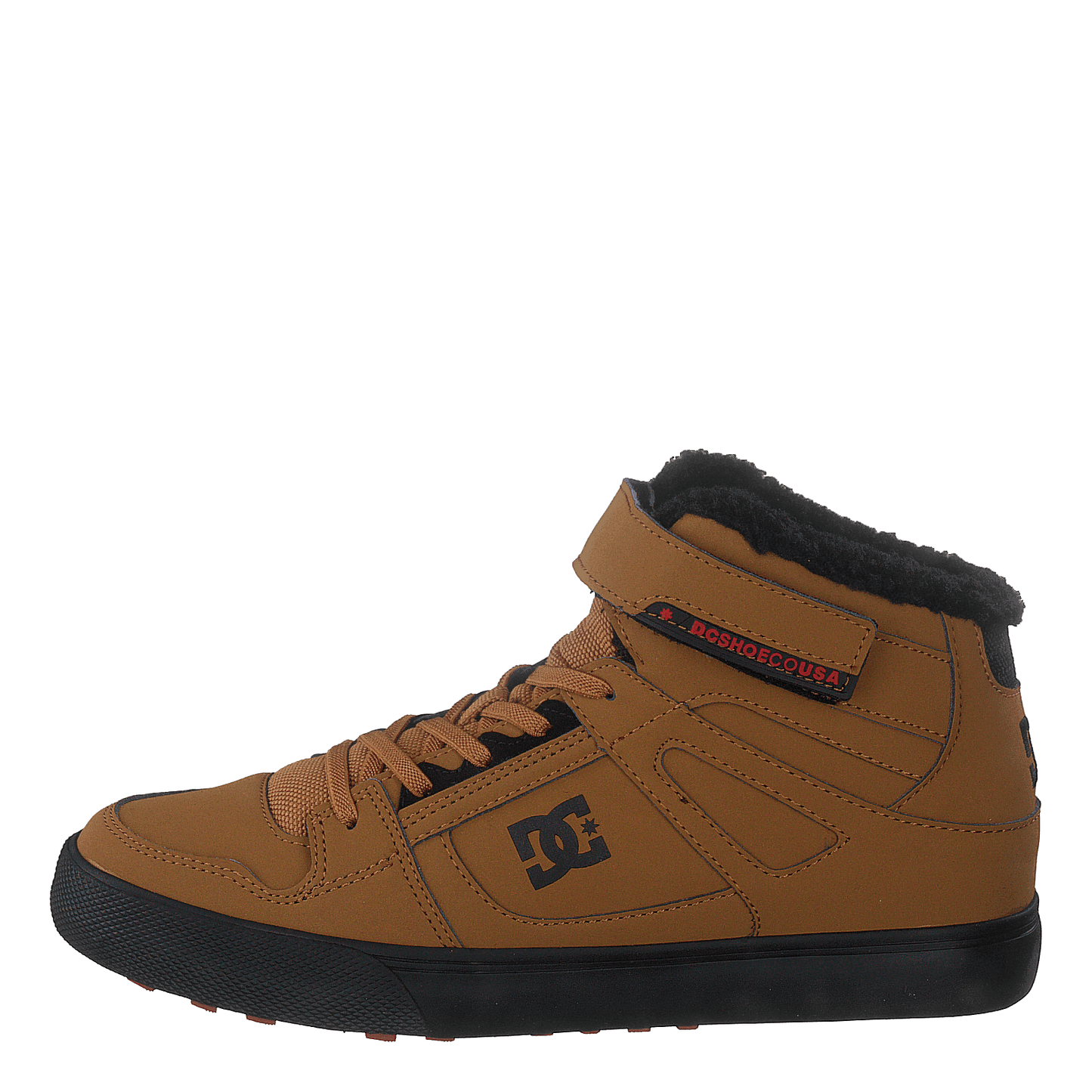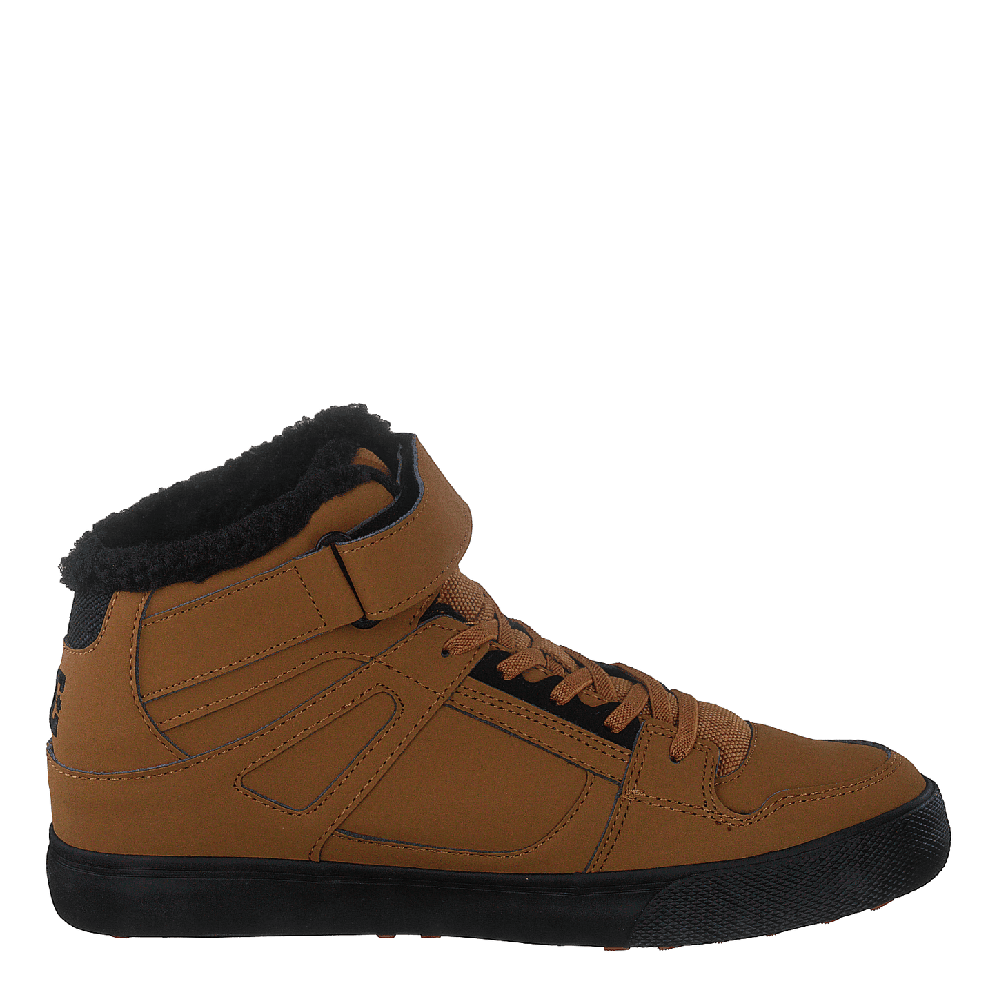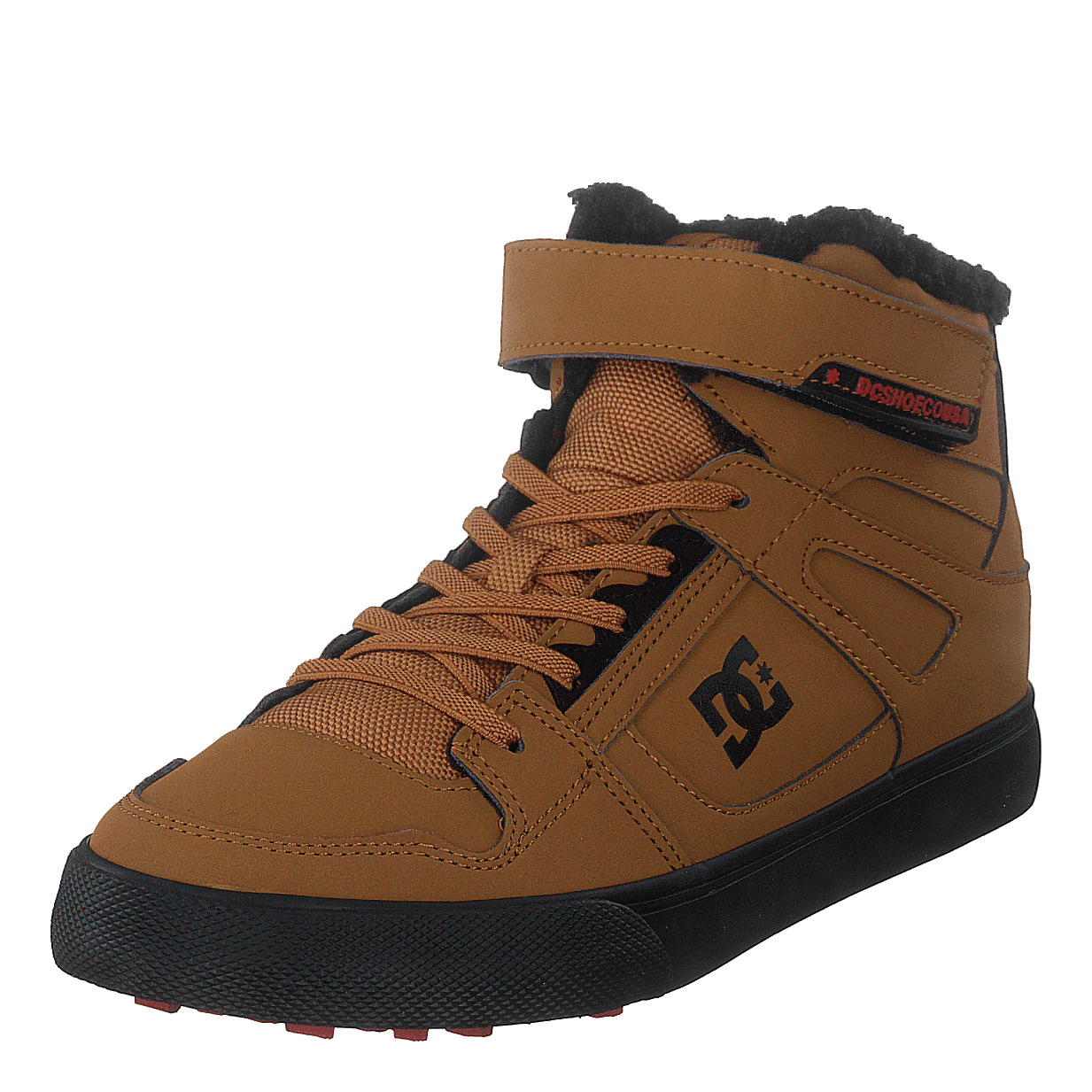 Elevate your winter style with DC Shoes' Pure High-top Wnt Ev in wheat/black. This sneaker combines street-ready design with cold-weather functionality, featuring a wheat-colored nubuck upper, black fleece lining, and a padded collar for warmth. The ankle strap adds support, while the black sole provides contrast and traction for urban adventures.