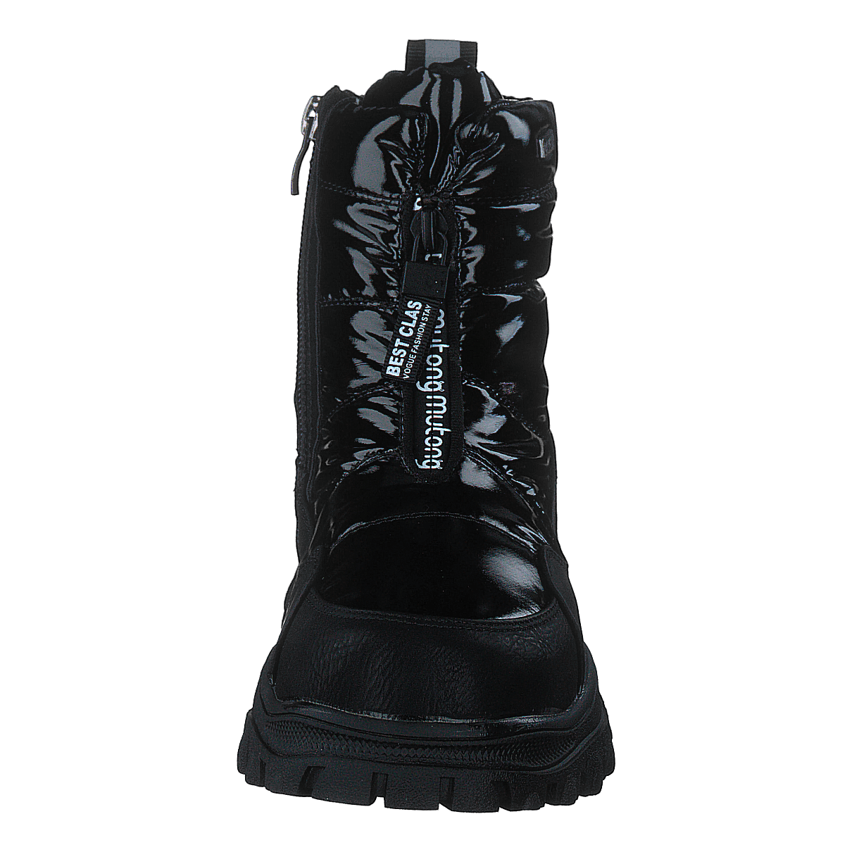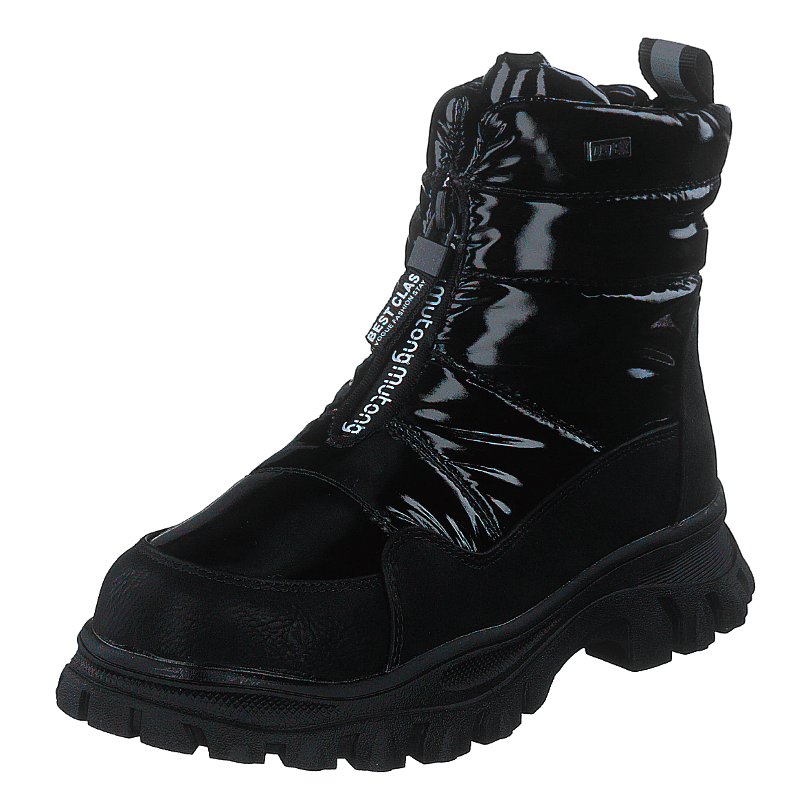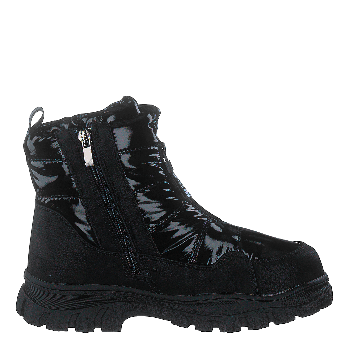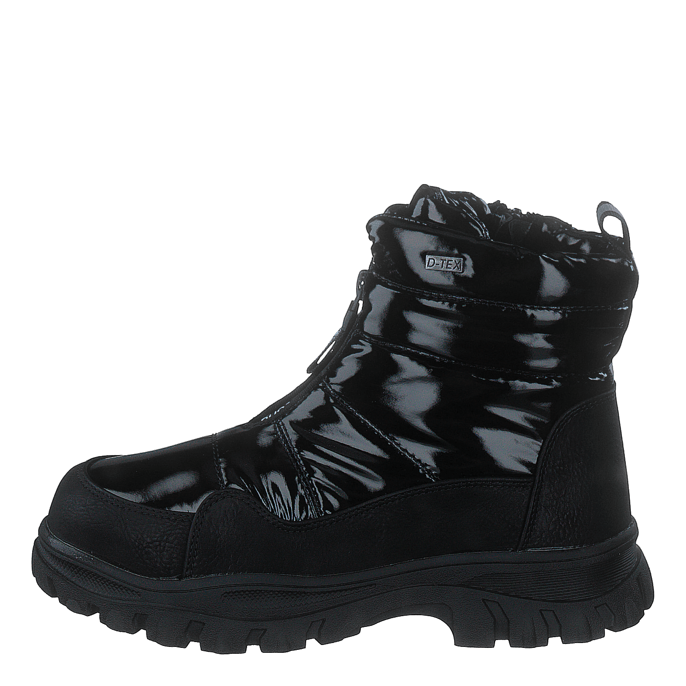 Duffy's Black winter boot combines style and functionality for cold weather. Featuring a glossy, insulated upper and matte lower, this women's boot offers warmth and waterproof protection. With a front zipper, D-TEX technology, and a chunky, treaded sole for traction, it's perfect for urban winter wear and light outdoor activities.