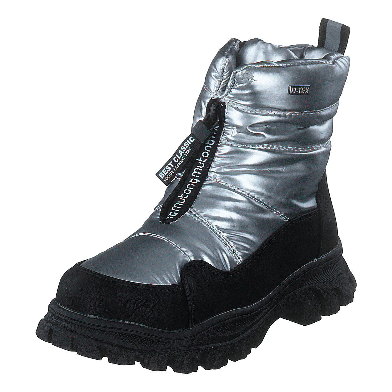Stay warm and stylish with these Duffy winter boots. Featuring a metallic silver quilted upper and black rubber sole, these boots combine fashion with functionality. The D-TEX technology, hidden zipper closure, and rugged tread ensure protection and traction in cold weather. Perfect for those seeking both comfort and contemporary style in winter footwear.
