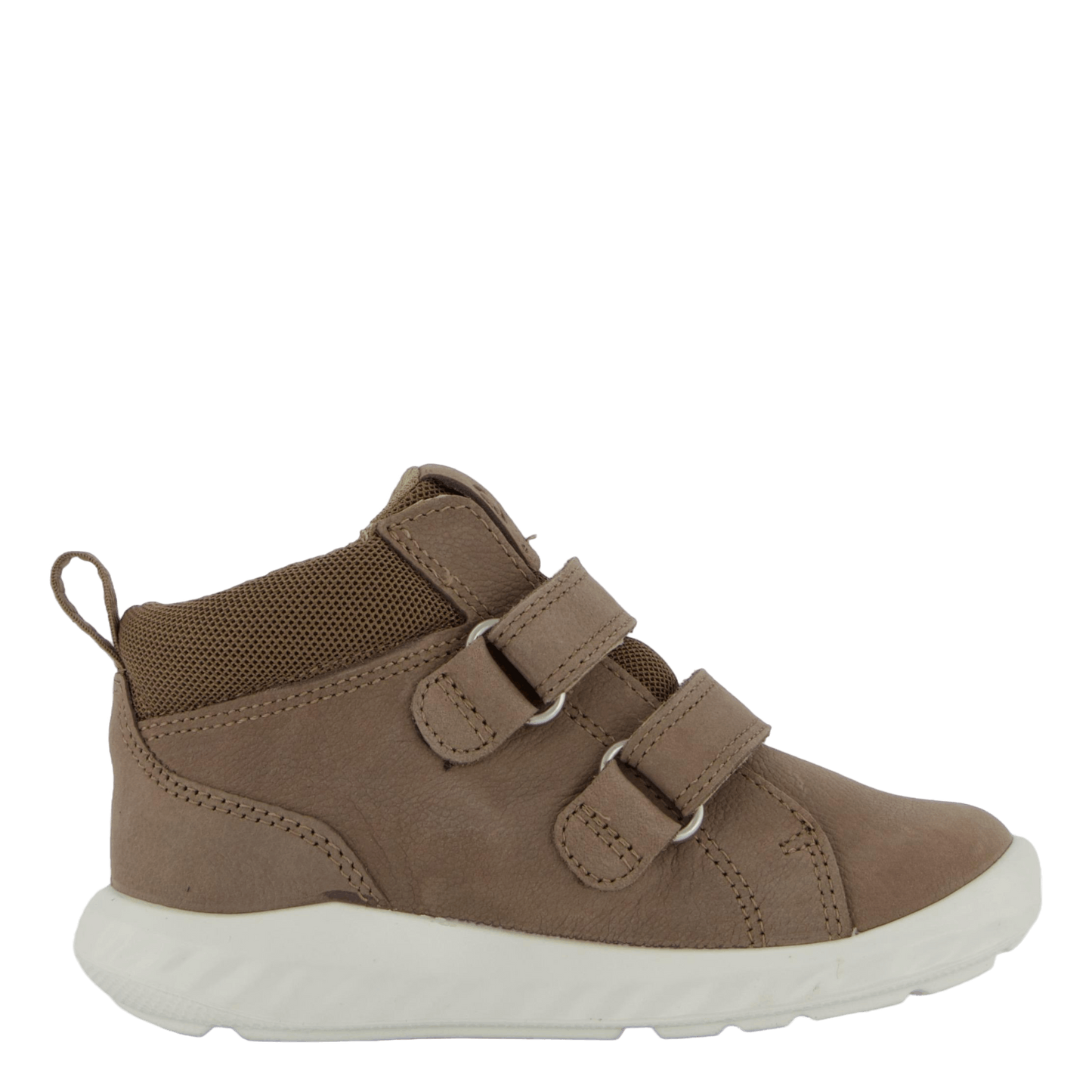 Stylish and practical, the Ecco Sp.1 Lite Infant shoe in taupe combines comfort and functionality. This high-top sneaker features soft leather construction with breathable mesh inserts, three easy-to-use velcro straps, and a padded ankle area for support. The lightweight, flexible sole ensures comfort for little feet, while the minimalist design offers versatile everyday wear.