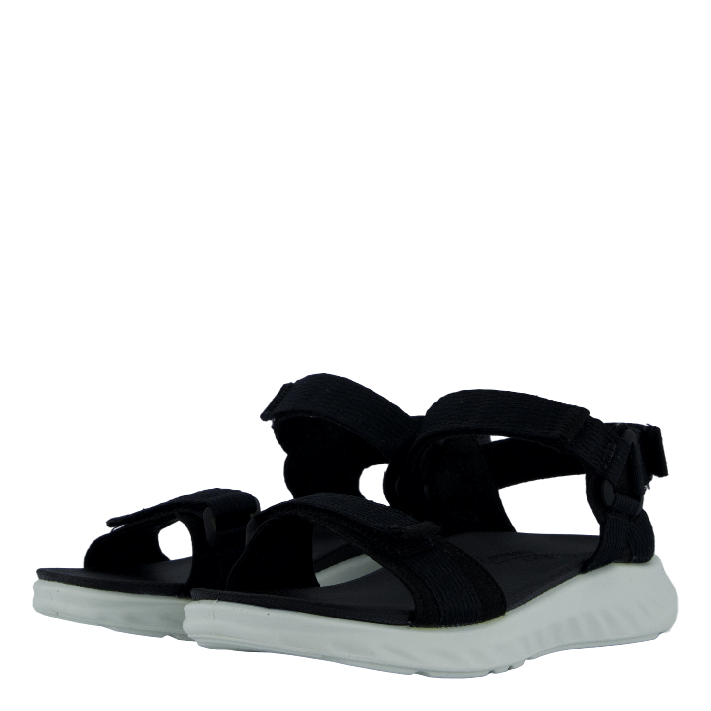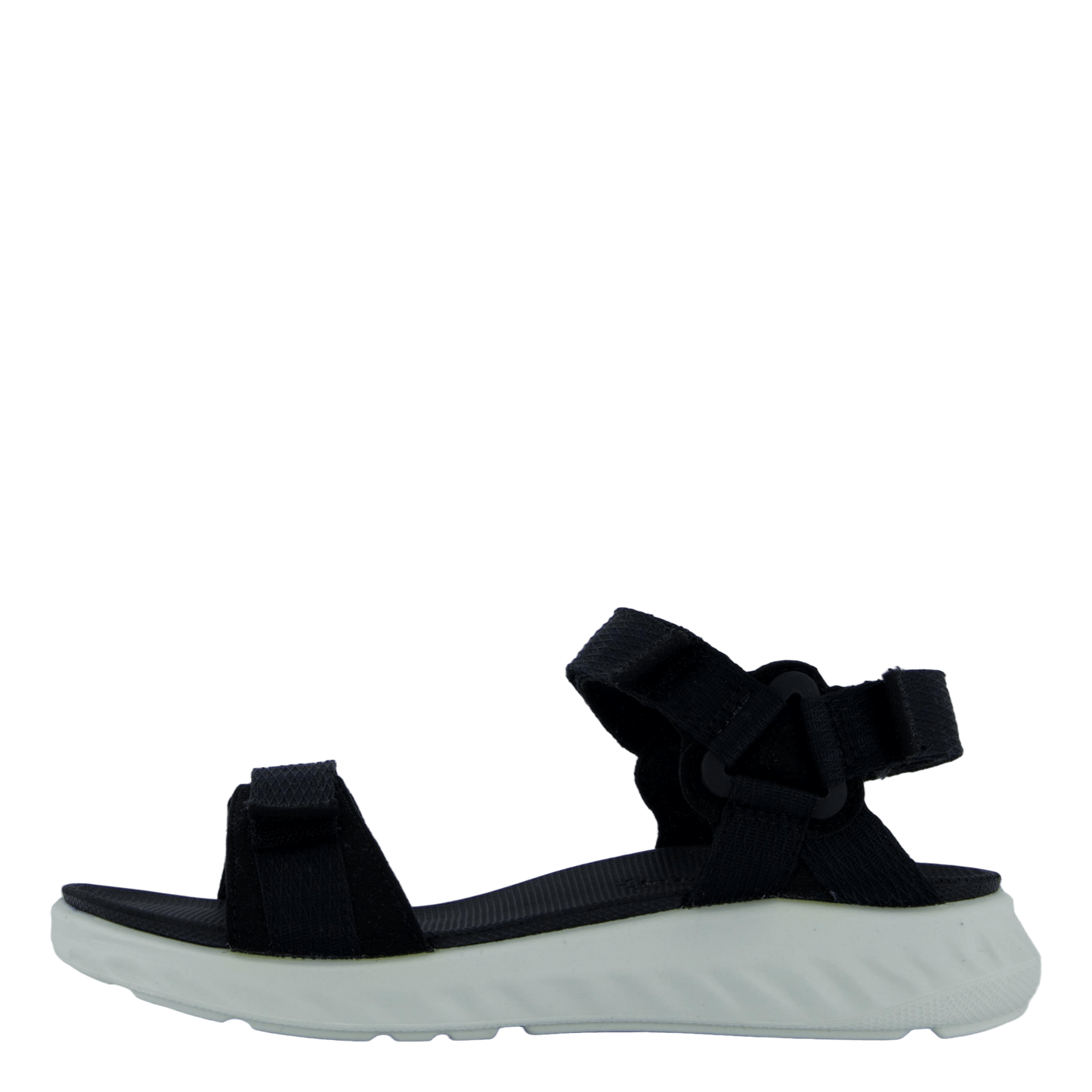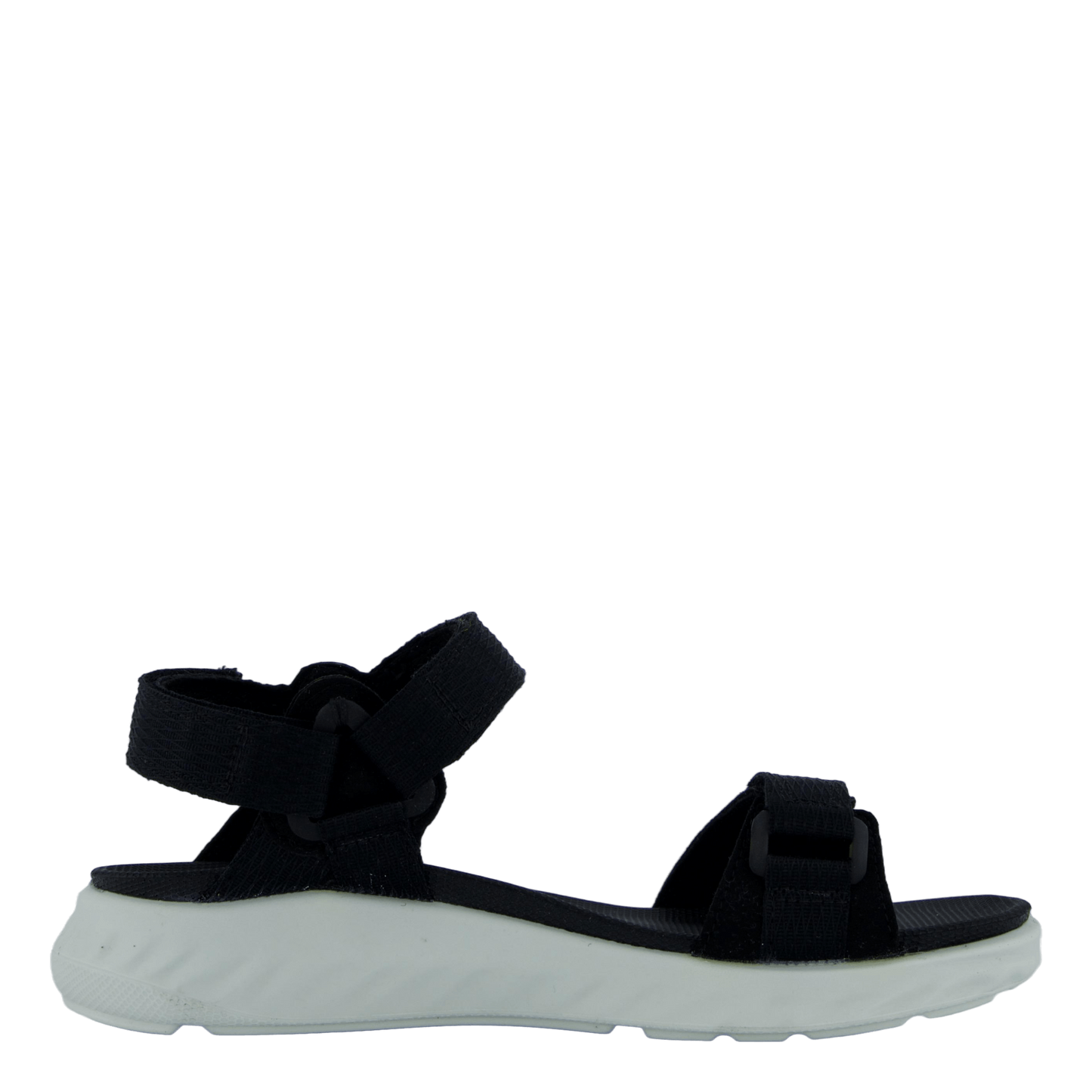 The Ecco Sp.1 Lite Sandal K offers sporty style and comfort for kids. Featuring black textile straps with easy-adjust fasteners, a soft PHORENE footbed, and a lightweight PU outsole, it's ideal for summer adventures. The sandal combines modern design with practical features like ECCO SHOCK POINT technology for enhanced shock absorption, making it suitable for beach to city wear.
