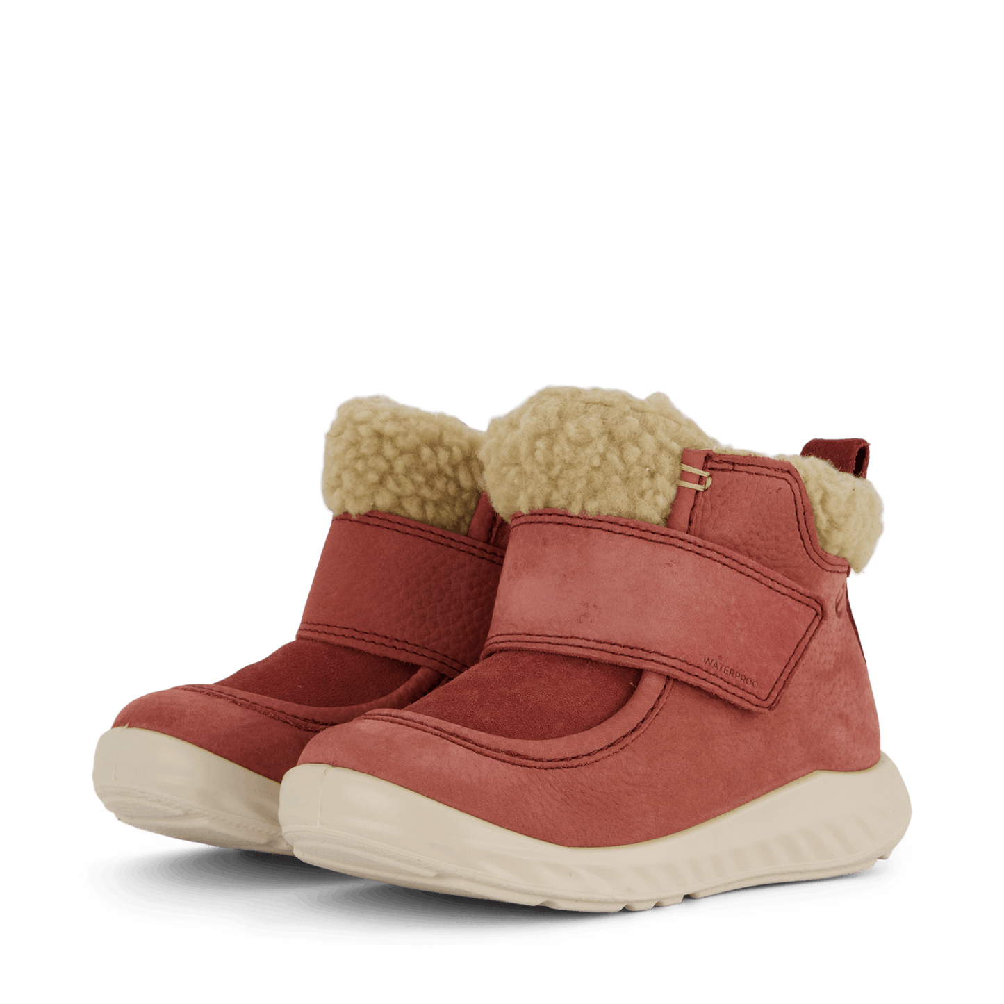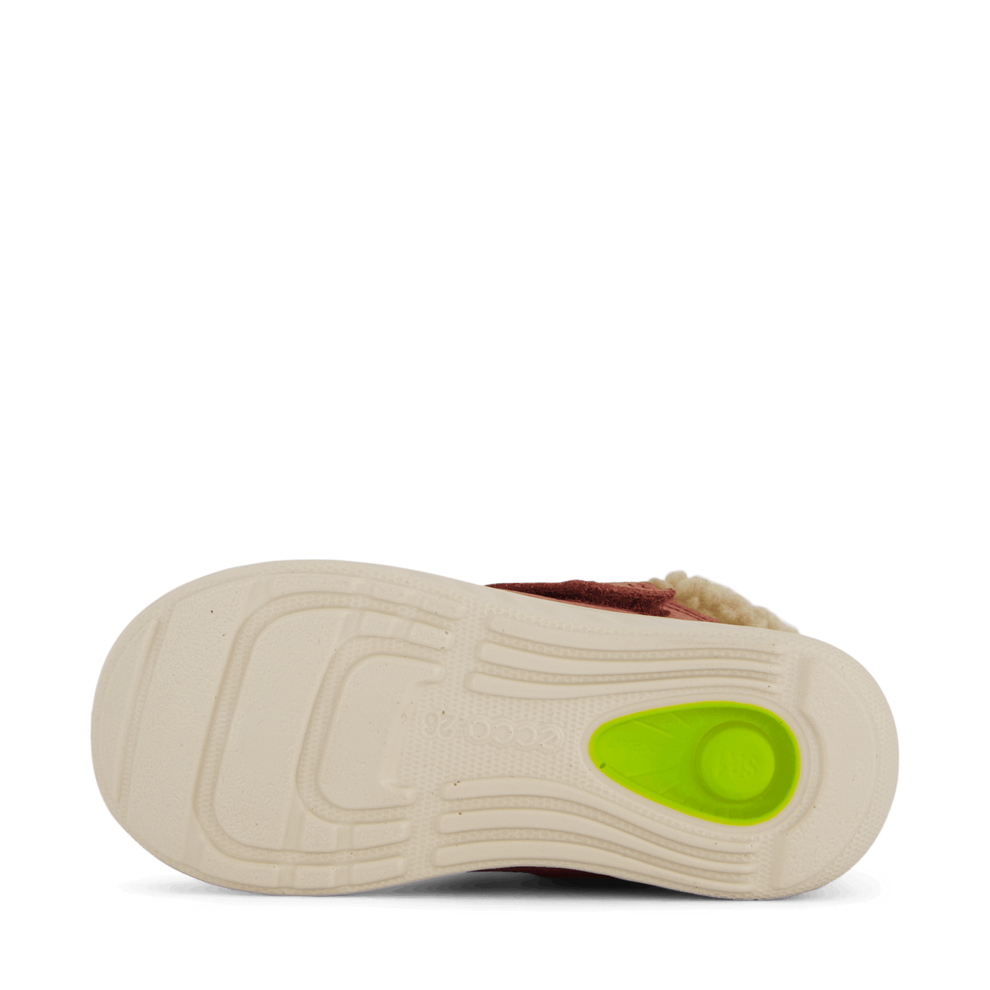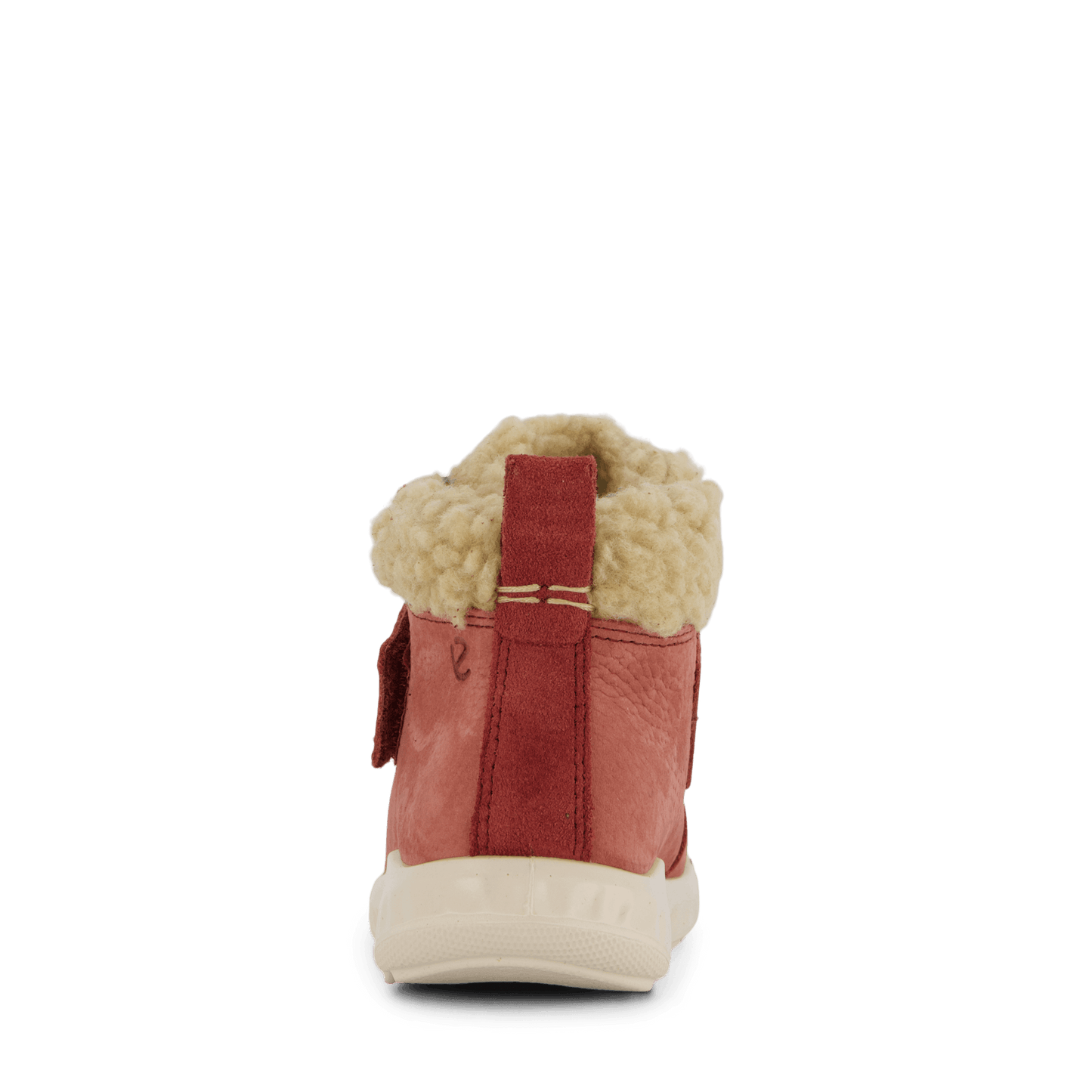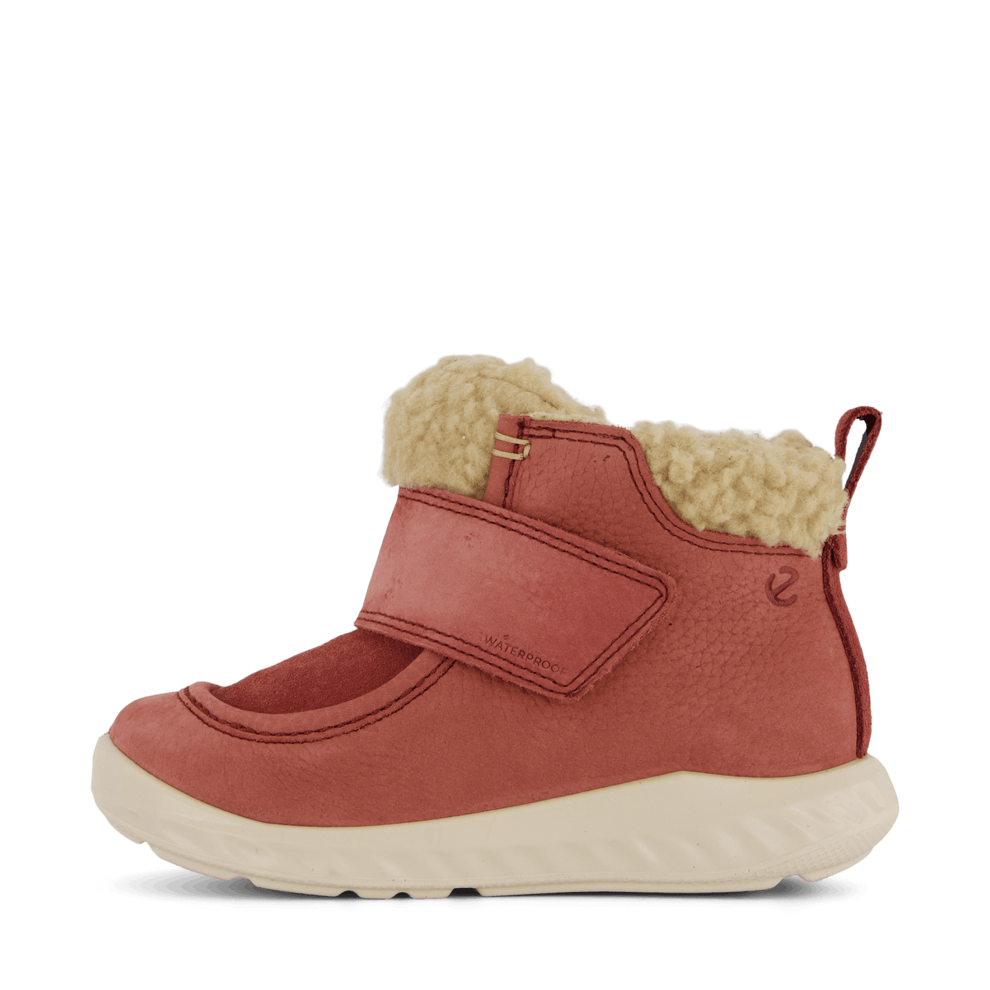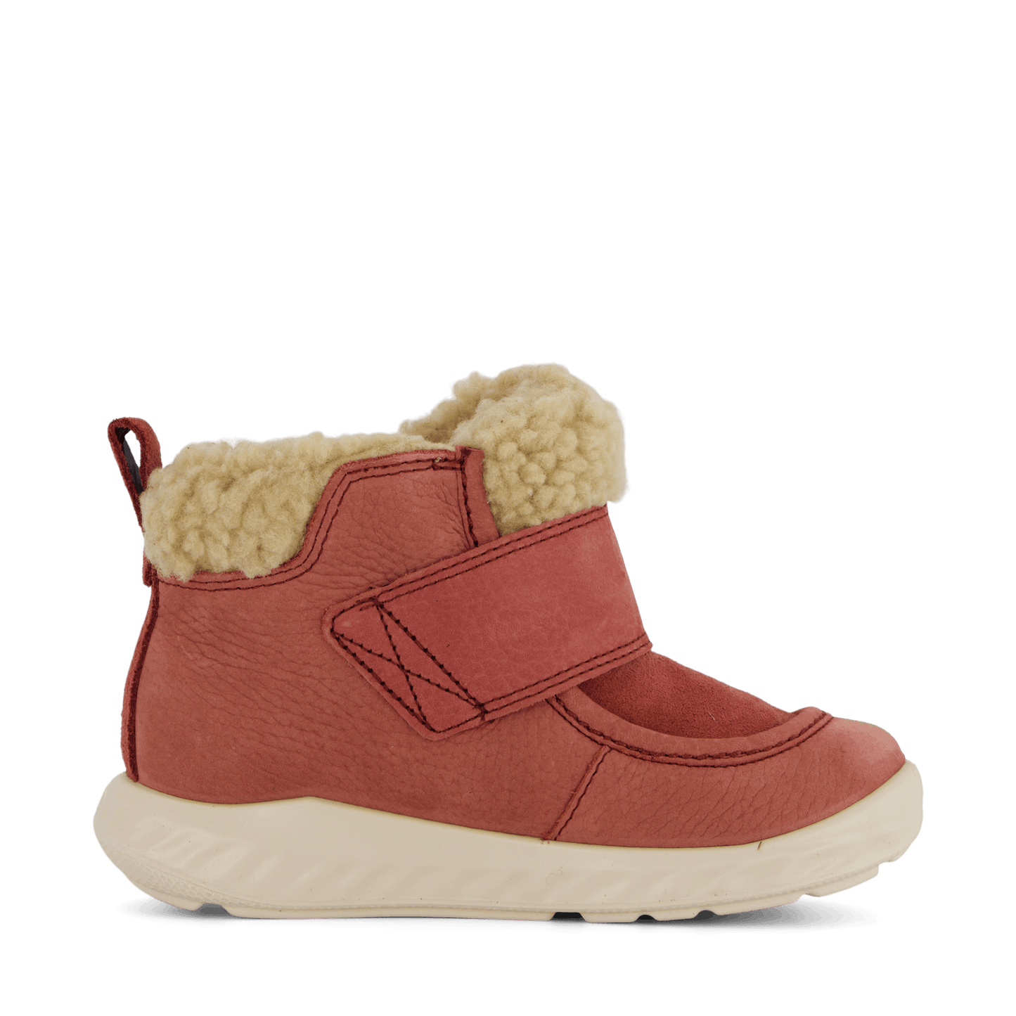 Cozy and stylish, these ECCO infant winter boots feature a soft pink suede-like exterior with a plush cream lining for warmth. The single velcro strap ensures easy wear, while the light cream sole provides flexibility for early walkers. Waterproof stitching and a modern design make these boots both functional and adorable for little feet.