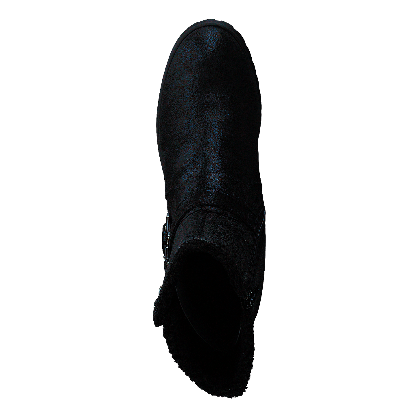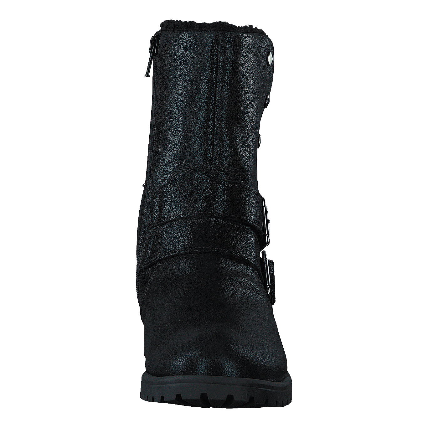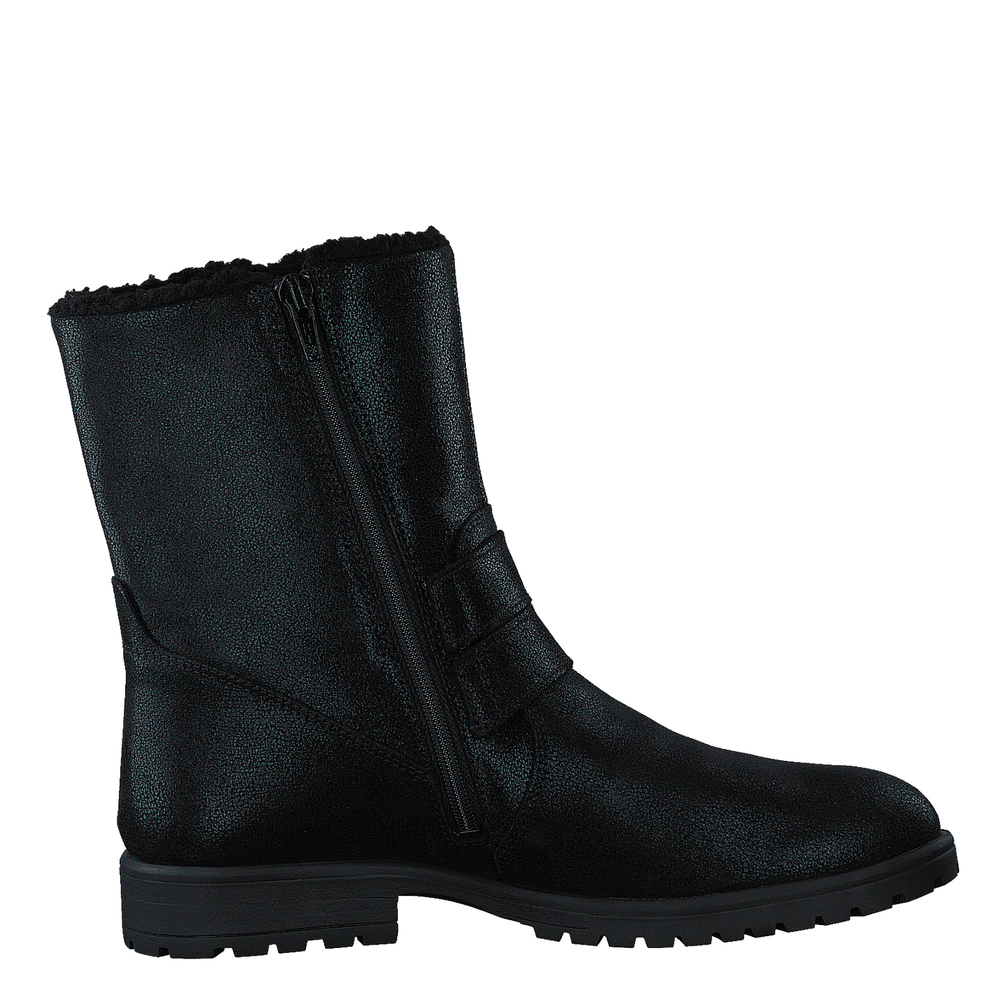 Stylish and functional, these Galaxy Gore-tex Black ankle boots by Superfit blend fashion with practicality. Featuring waterproof GORE-TEX technology, they keep feet warm and dry in various conditions. The black leather-like exterior boasts a subtle metallic sheen, adorned with silver buckles and studs for an edgy look. A thick, rugged sole provides durability and traction, while the fleece-like lining ensures comfort.