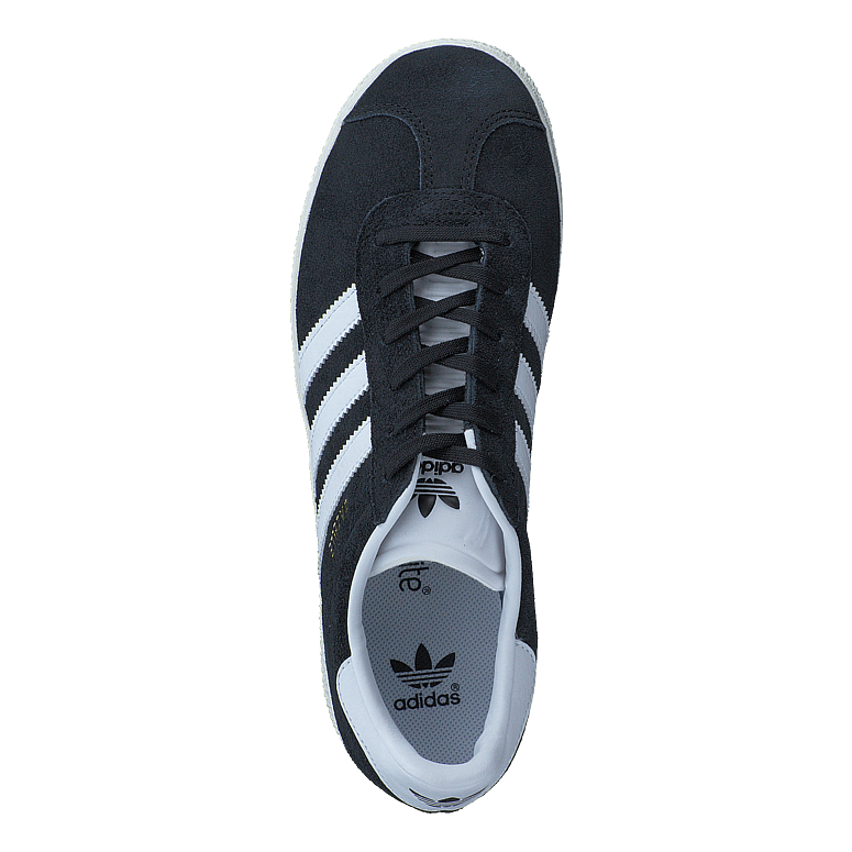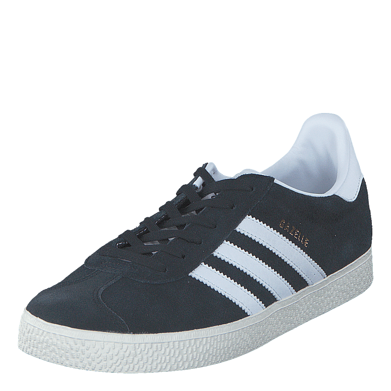 Revive the '90s with these Adidas Gazelle J sneakers, a faithful reissue of the iconic 1991 design. Featuring a black suede upper with classic white three-stripe branding, these versatile shoes offer both style and comfort. The white rubber outsole and soft jersey lining, combined with an OrthoLite® sockliner, ensure all-day wearability for the fashion-conscious junior.