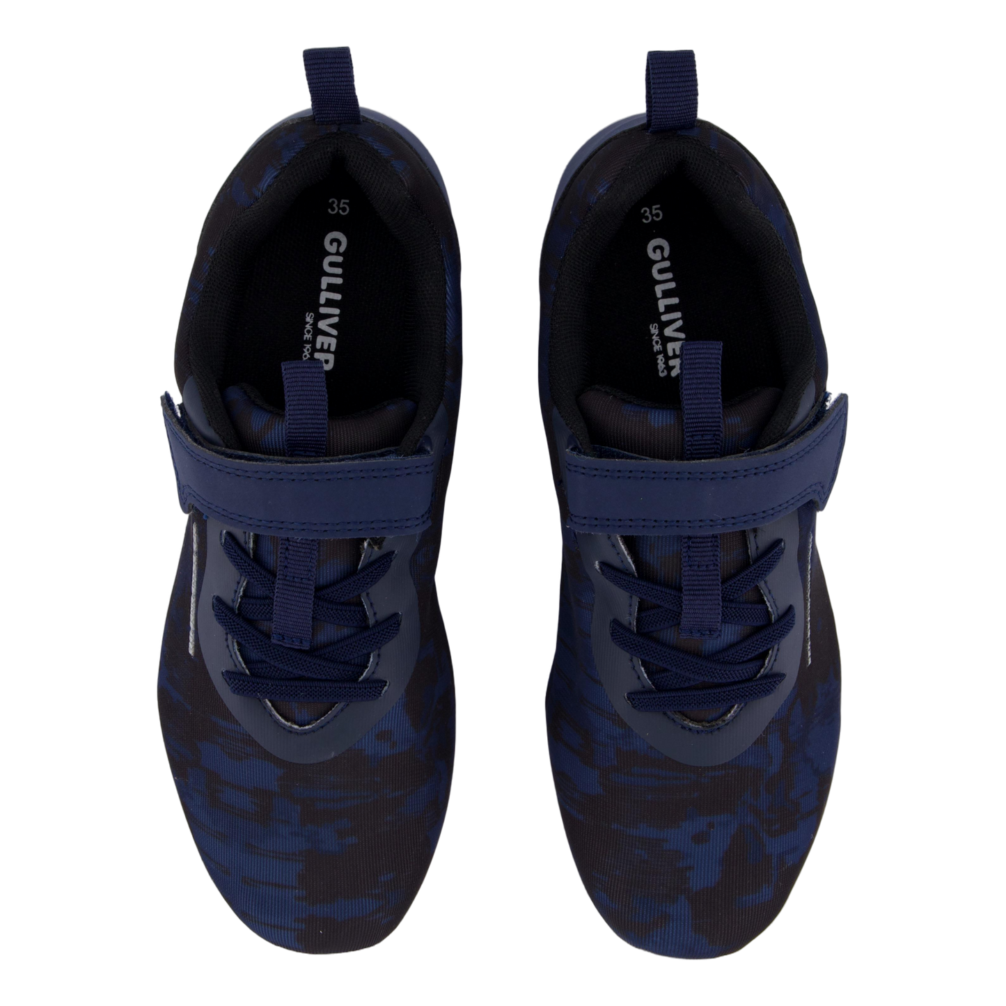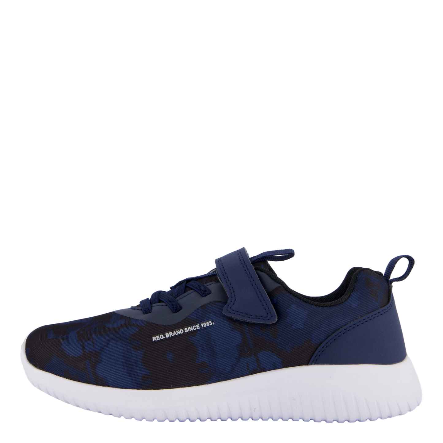 Experience comfort and style with the Hemse Sparv Navy/black sneaker. This low-top athletic shoe features a breathable navy upper with black camouflage accents, offering a trendy urban look. The versatile design includes a velcro strap and laces for a secure fit, while the padded collar ensures ankle comfort. Perfect for casual wear or light sports activities.