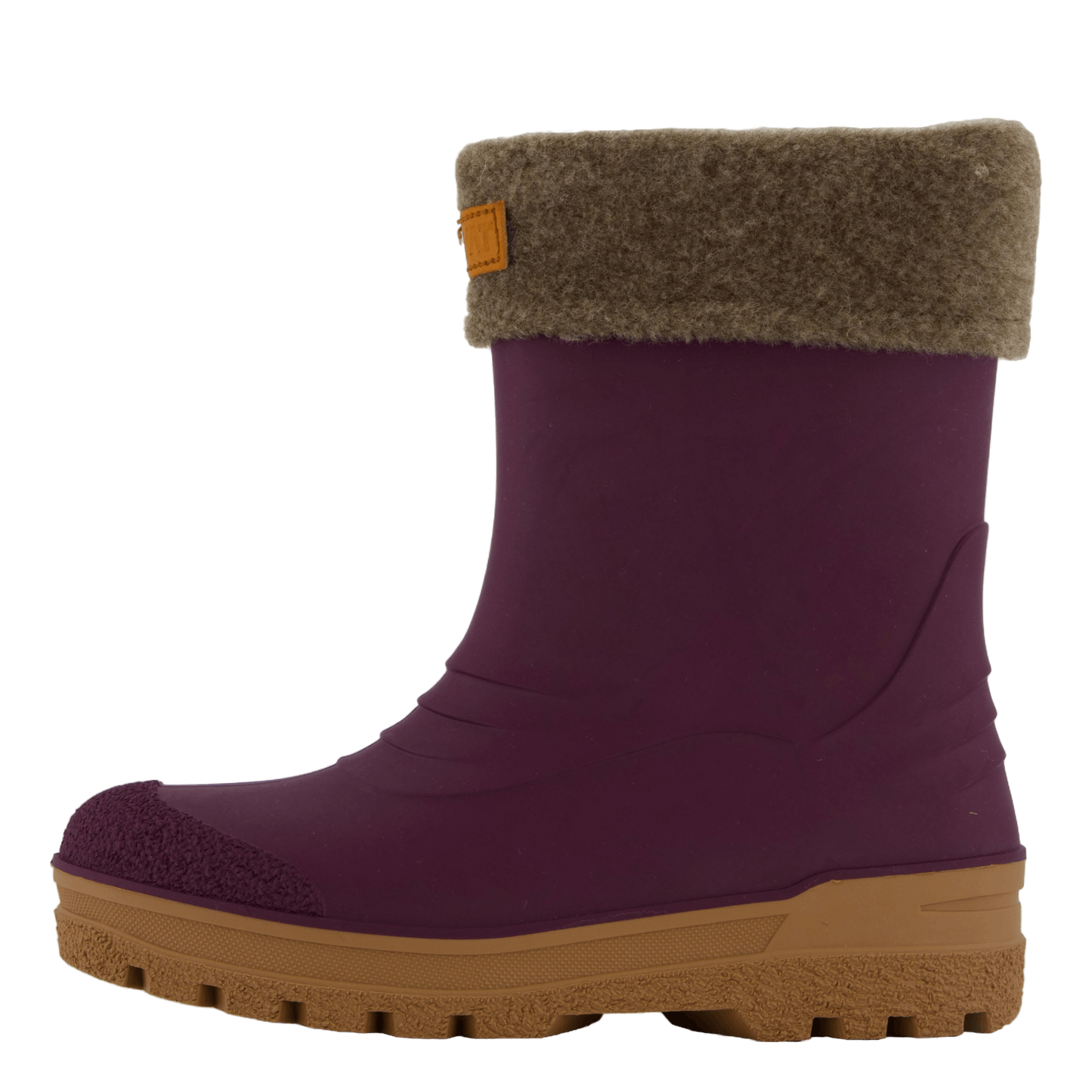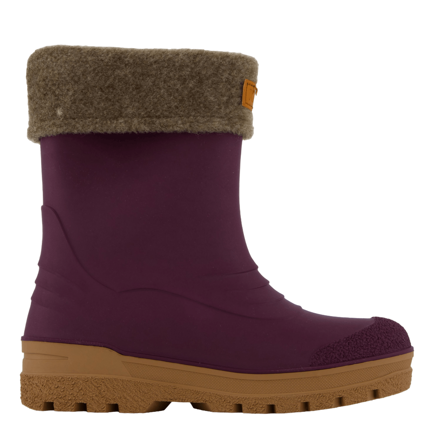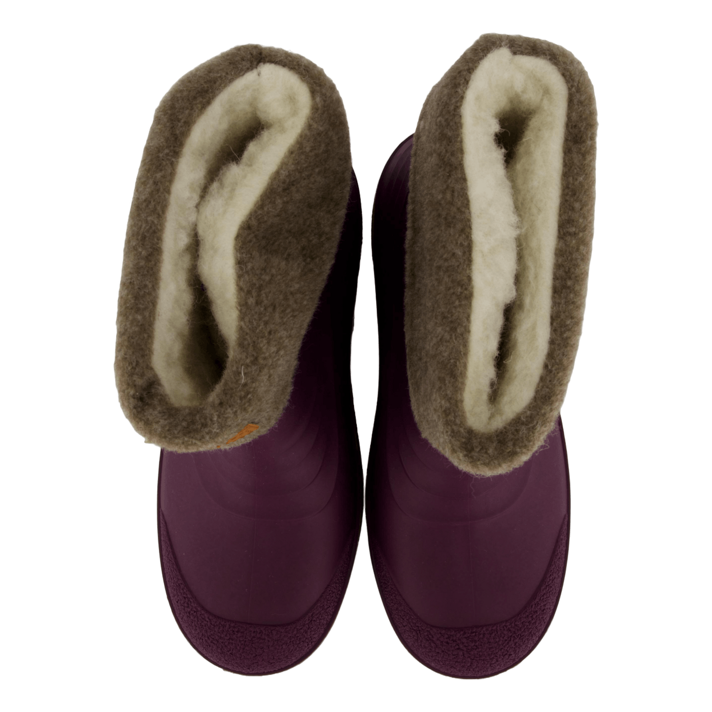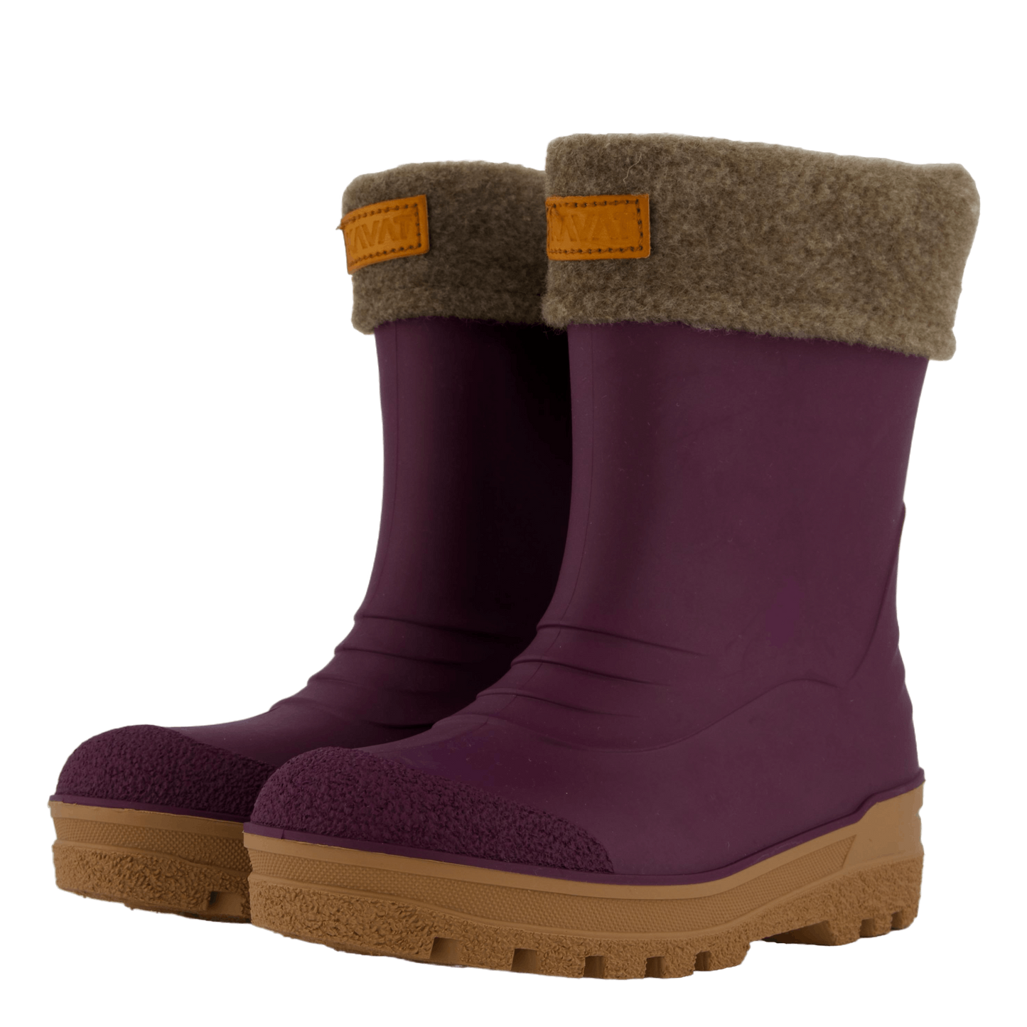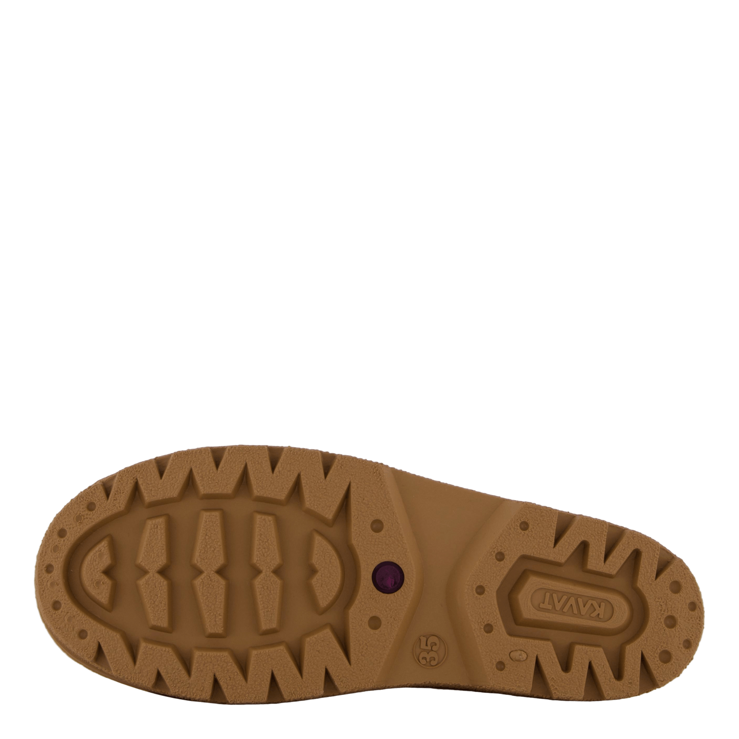 Elevate your winter style with the Gimo Wp Violet boot by Kavat. This mid-calf waterproof boot features a deep purple body with a cozy taupe fold-over cuff, combining fashion and functionality. The rugged tan sole offers excellent traction, while the reinforced toe cap ensures durability. Perfect for braving winter conditions with a pop of color.