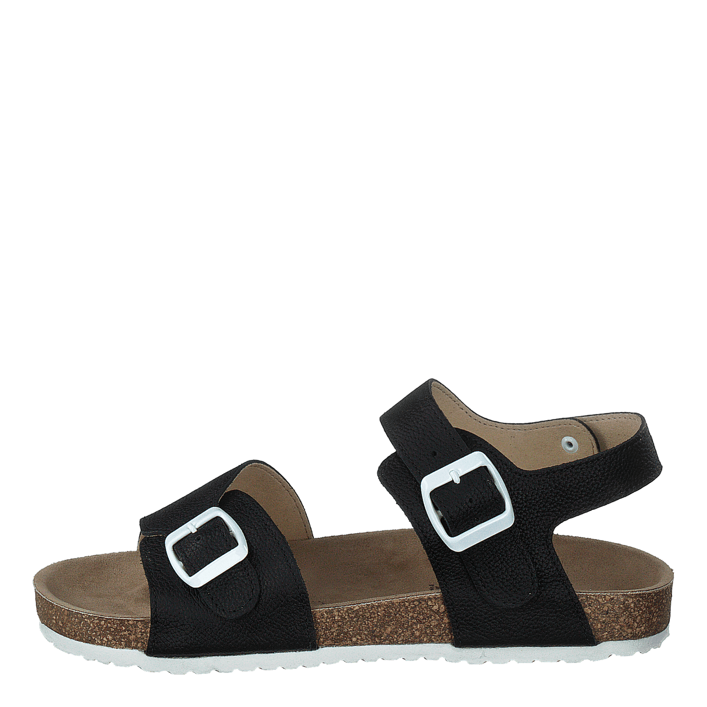 Stylish and comfortable, these Åhus Ep Black sandals are perfect for kids' summer adventures. Featuring a minimalist design with textured black leather straps and contrasting white metal buckles, they offer both fashion and functionality. The cork footbed provides natural comfort, while the white rubber sole ensures durability for everyday wear. Versatile and easy to style, these sandals are a must-have for warm weather.