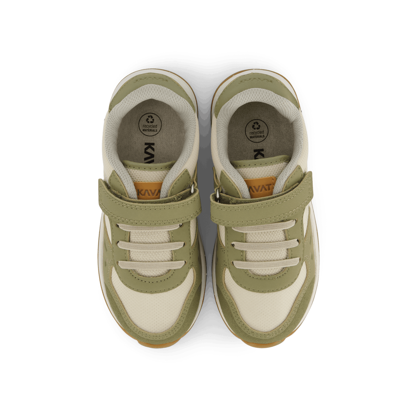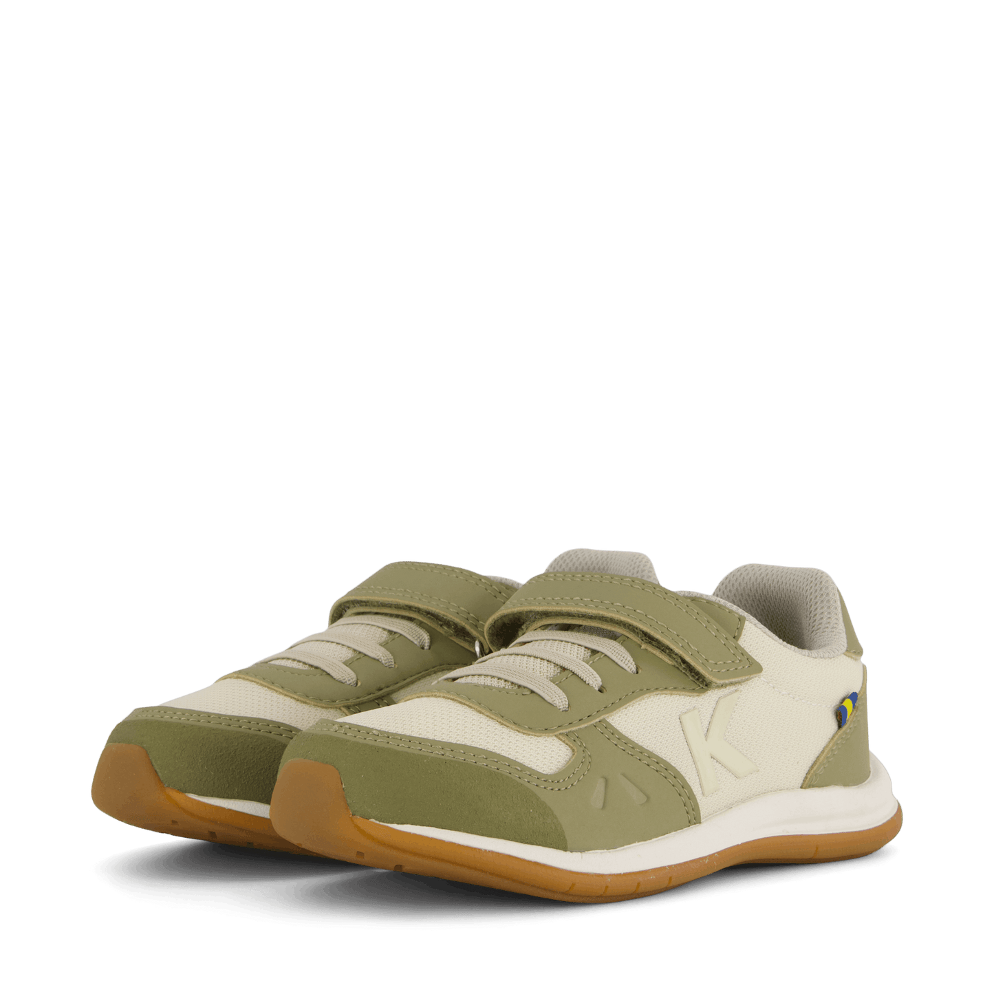 Klippan Tx Khaki is a lightweight, eco-friendly children's sneaker perfect for outdoor play. Made with partially recycled materials, it features a khaki green and off-white design with easy-on quick lacing and an adjustable strap. The durable shoe boasts a reinforced toe, removable shock-absorbing insole, and grip-friendly rubber sole. Machine washable and fluorocarbon-free for conscientious parents.