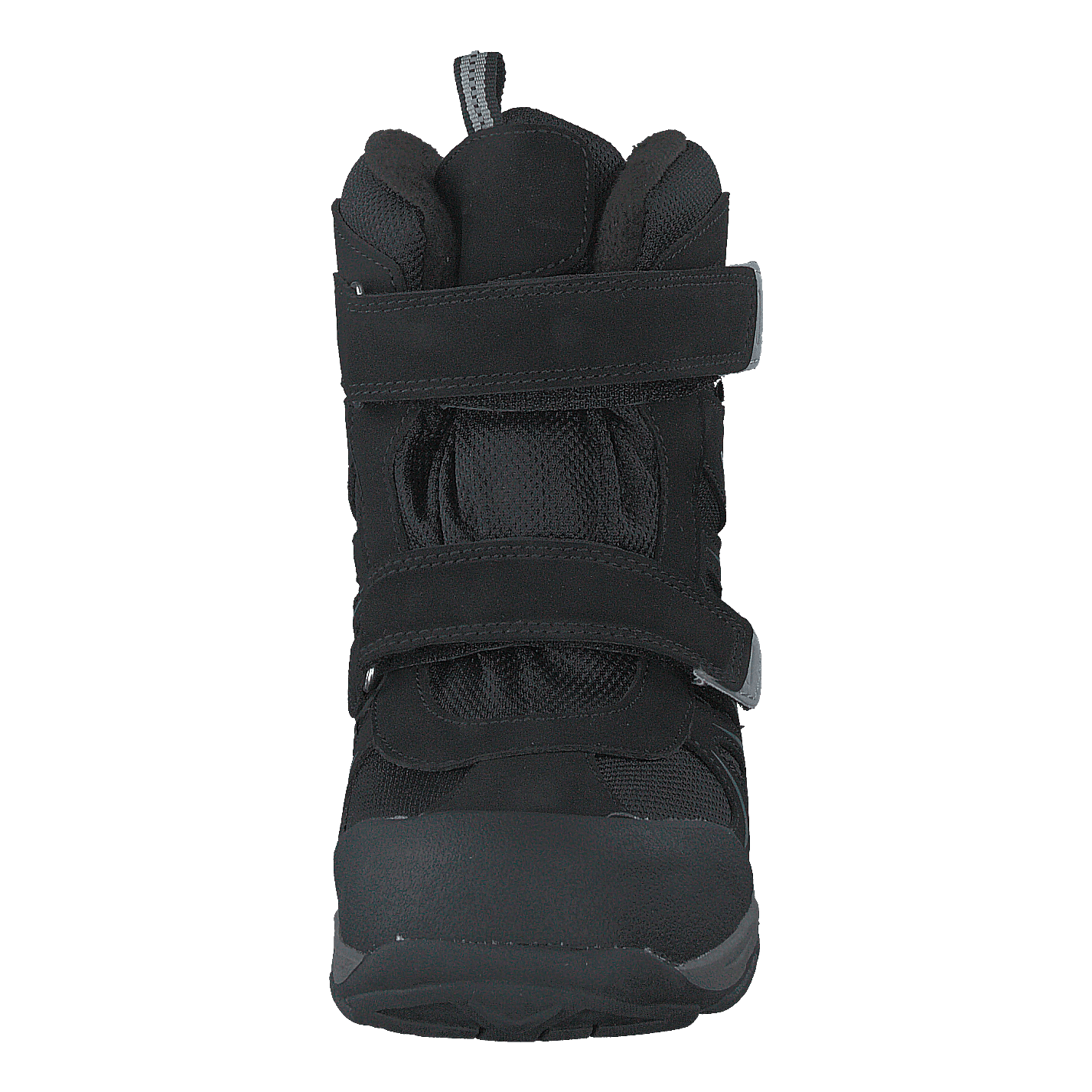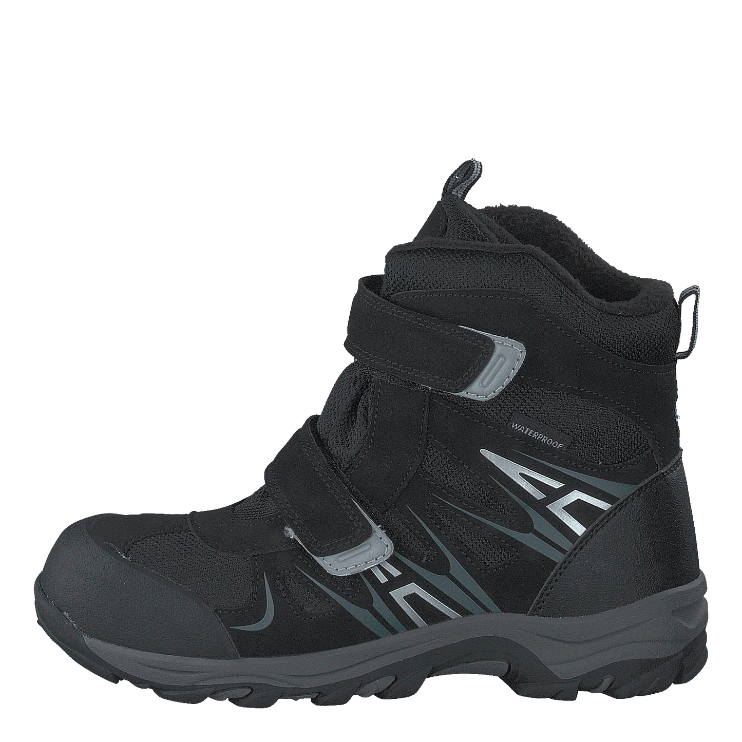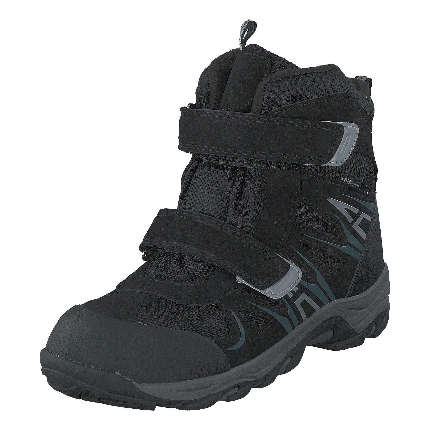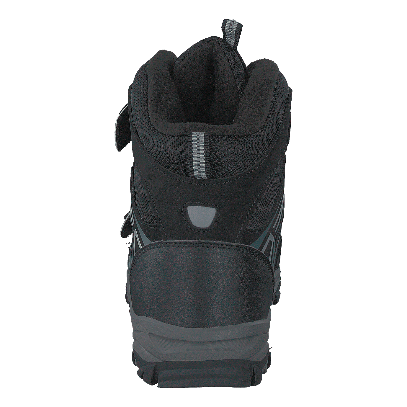 Discover the Kompis 430-3932 Black, a high-top hiking boot designed for outdoor enthusiasts. This weather-resistant boot features a synthetic mesh and suede-like upper, dual velcro straps for easy fastening, and a thick, rugged sole for superior traction. With its waterproof construction, padded lining, and modern geometric accents, this boot offers both style and functionality for your adventures.