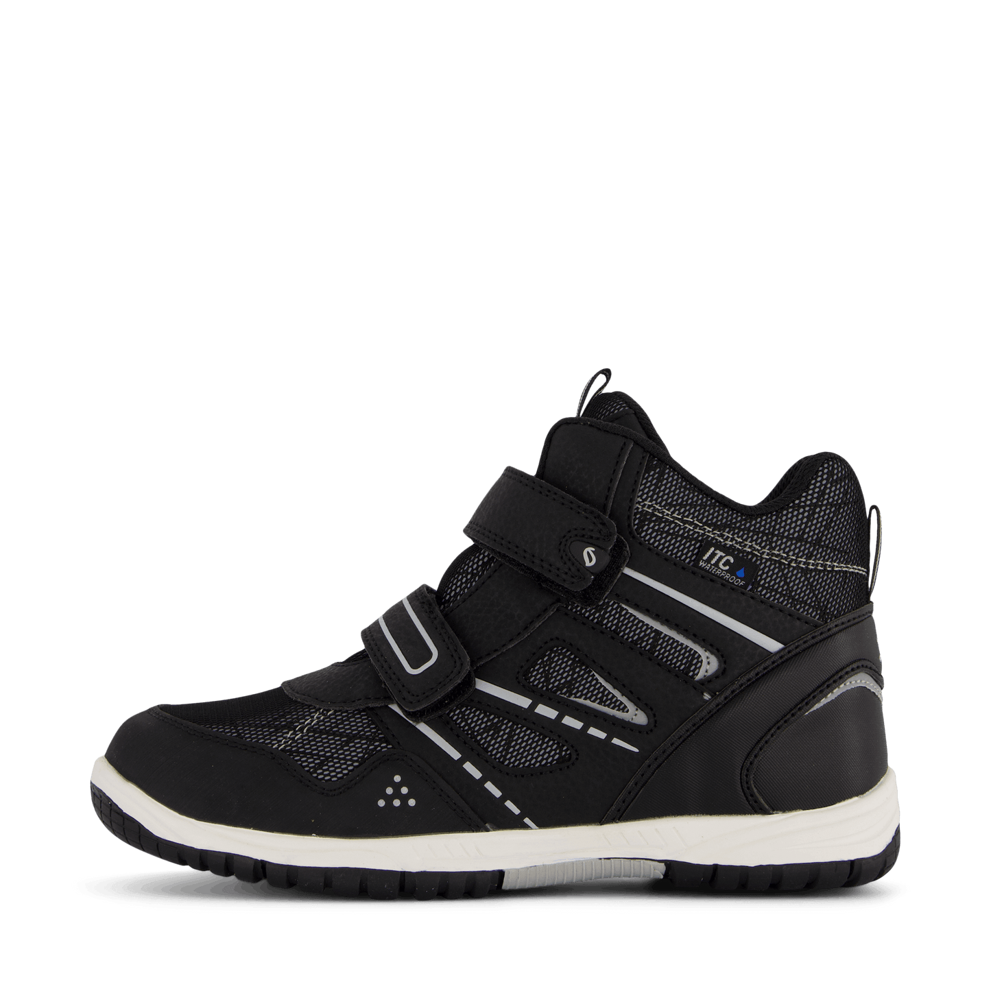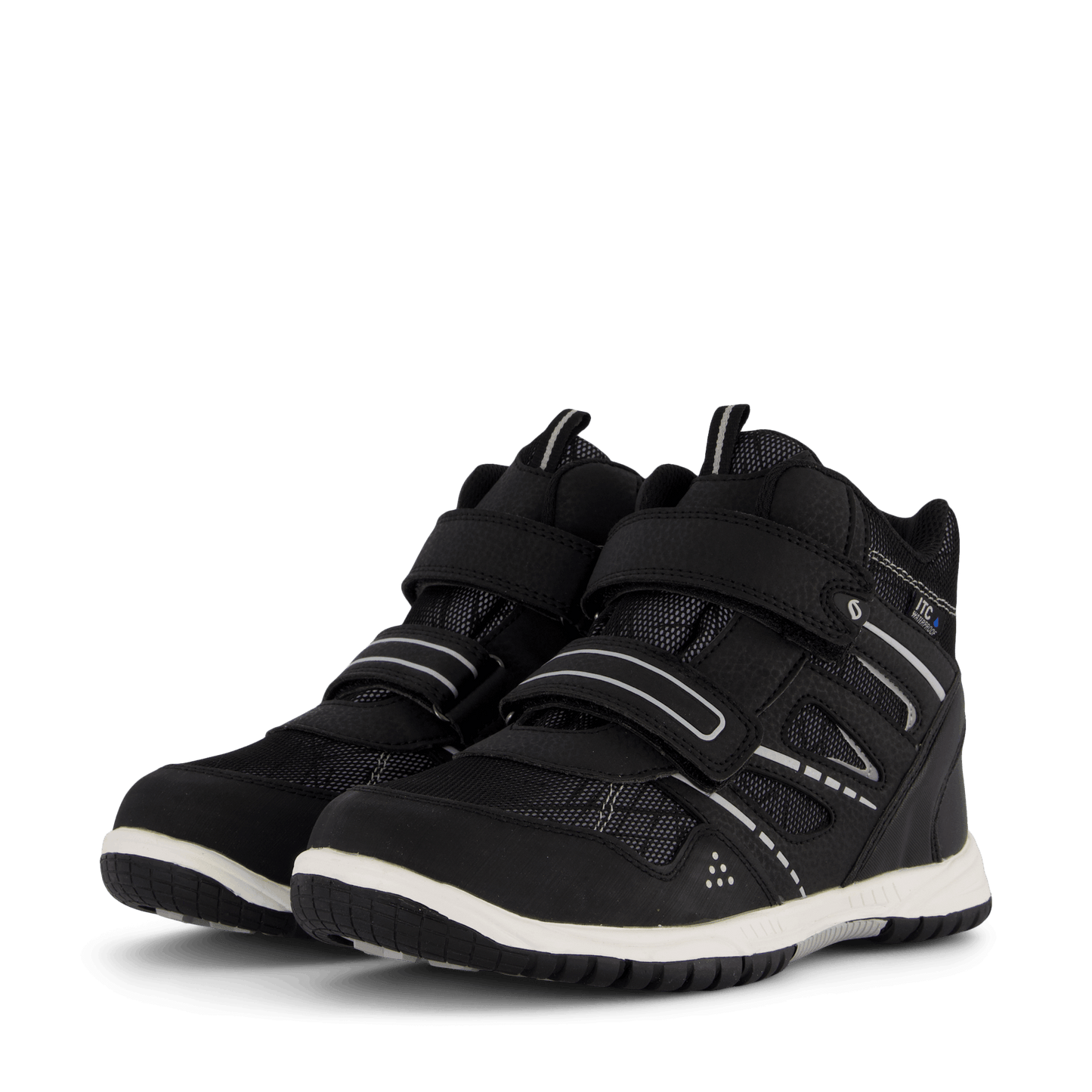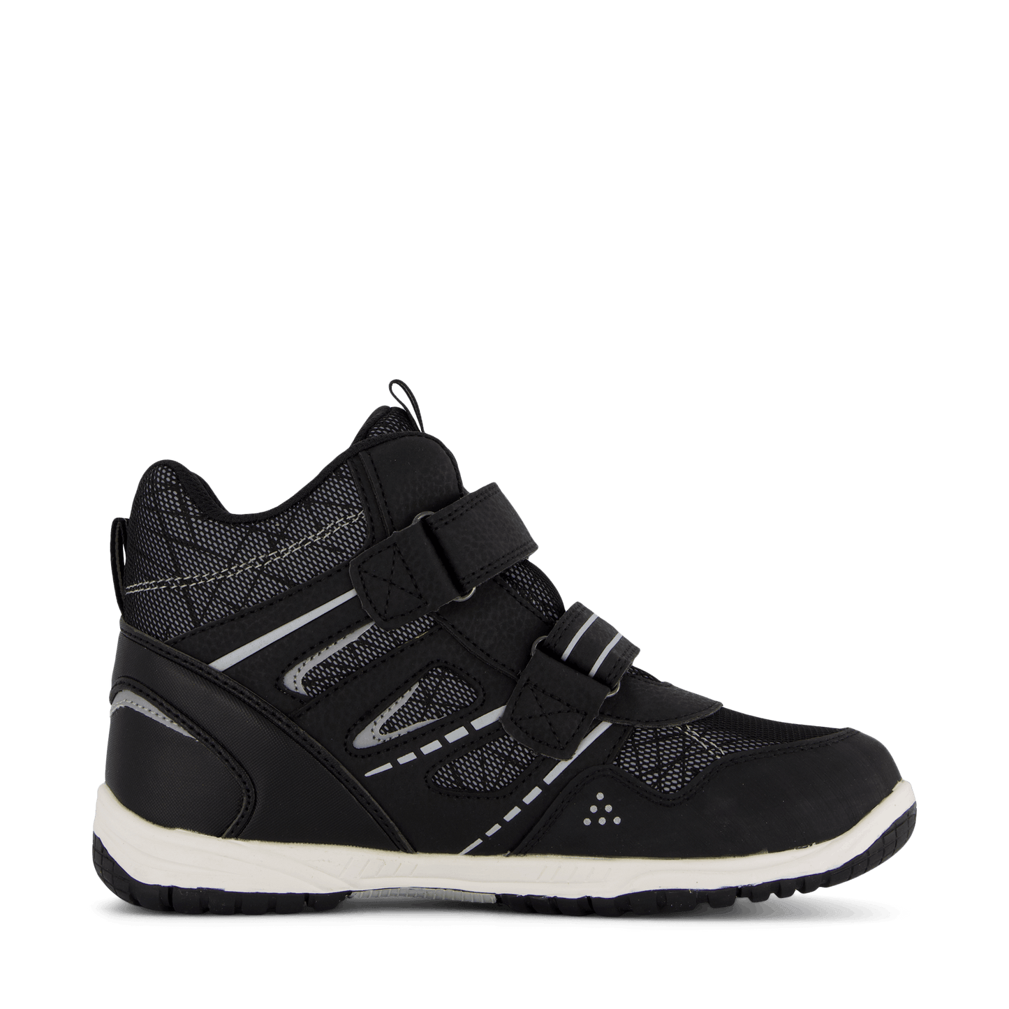 Elevate your outdoor style with the Kasuri Black high-top sneaker. This versatile footwear combines breathable mesh and synthetic leather for comfort and durability. Featuring two velcro straps for easy adjustment, a chunky supportive sole with grippy treads, and reflective accents for visibility. Perfect for hiking or everyday wear, these shoes blend modern design with practical functionality.