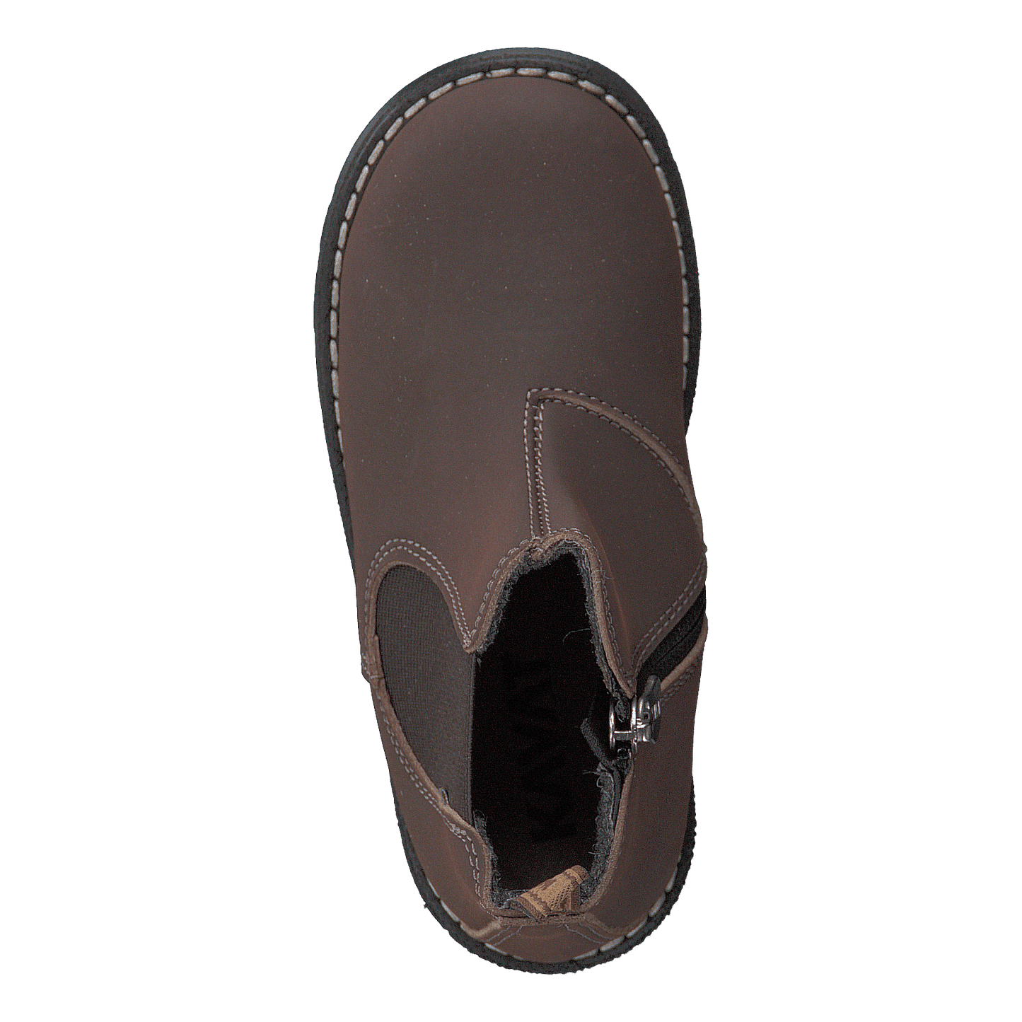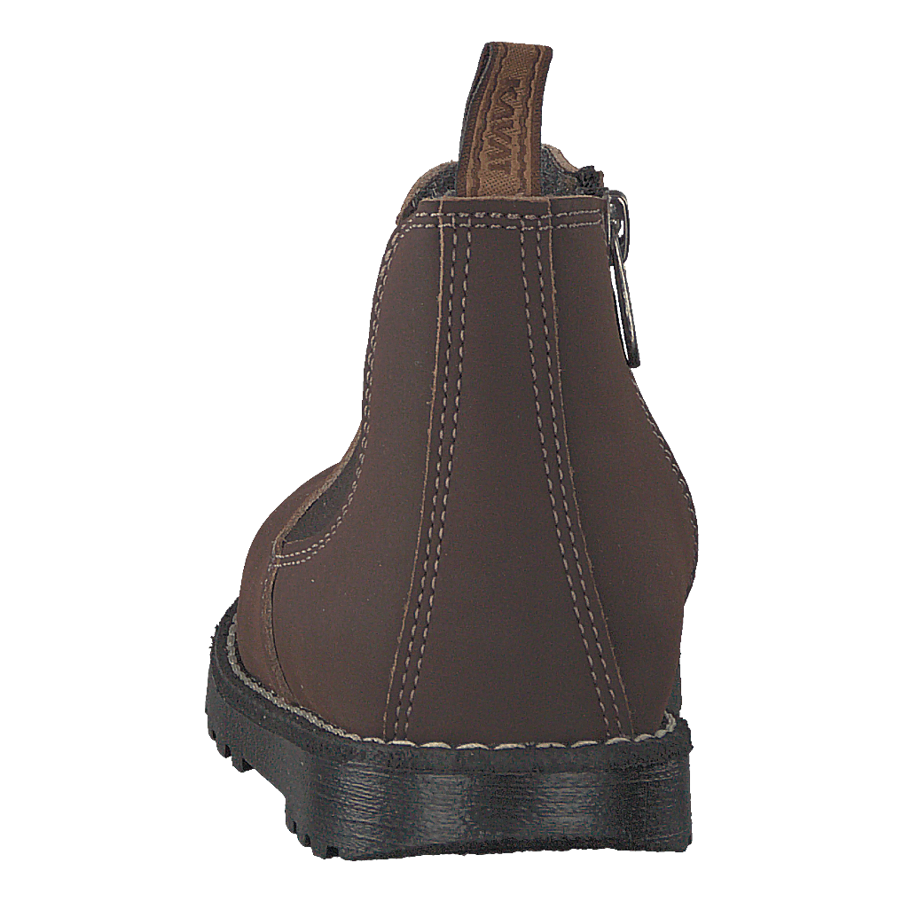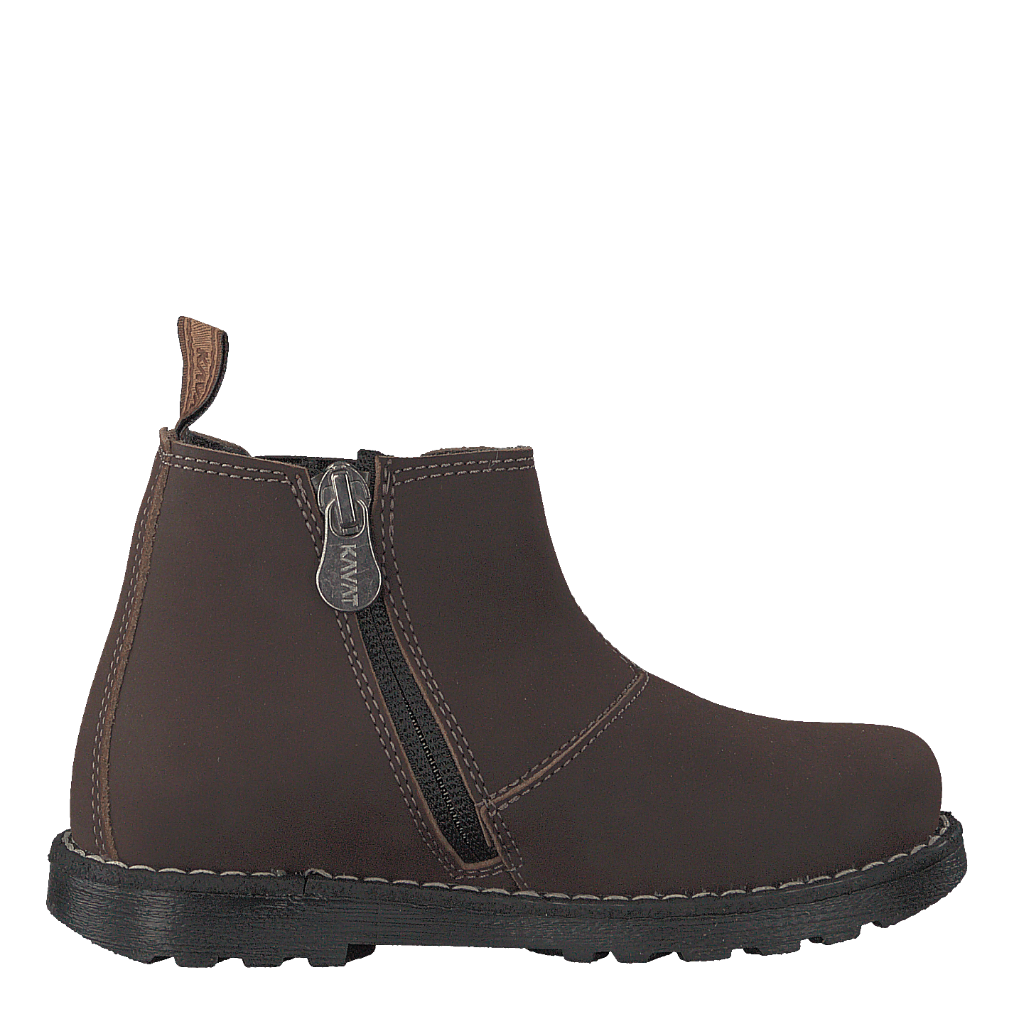 Nymölla Xc is a comfortable Chelsea boot for young children, crafted from durable, water-repellent European leather. Features include a practical inner zipper for easy on/off, warm wool fleece lining, and a shock-absorbing insole. The dark brown boot boasts a grip-friendly rubber outsole, elastic side panels, and is free from fluorocarbons, making it both stylish and functional.