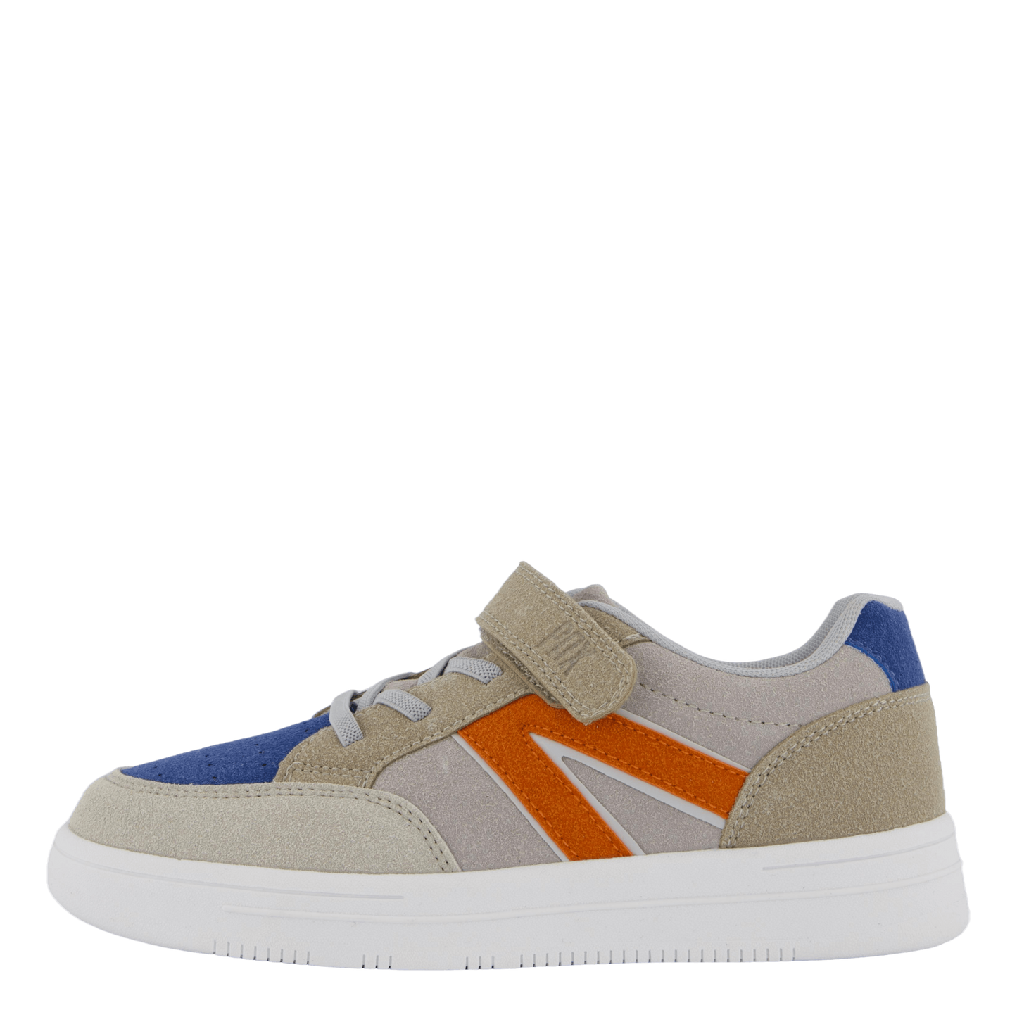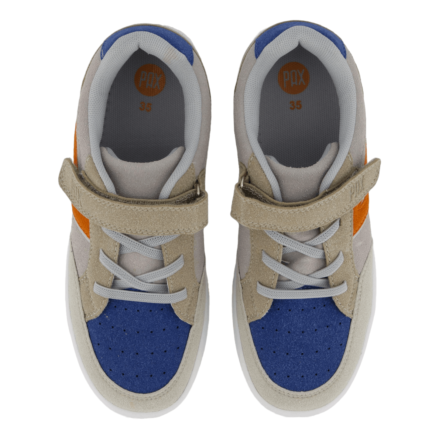 Stylish and comfortable, these Blaze Beige/Blue children's sneakers feature a multi-colored suede upper with a sporty color-block design. The low-top silhouette combines beige, blue, and orange accents for a modern look. A convenient velcro strap and elastic laces ensure easy wear, while the thick white sole provides stability. Perfect for everyday casual wear, these sneakers blend retro-inspired colors with contemporary design.