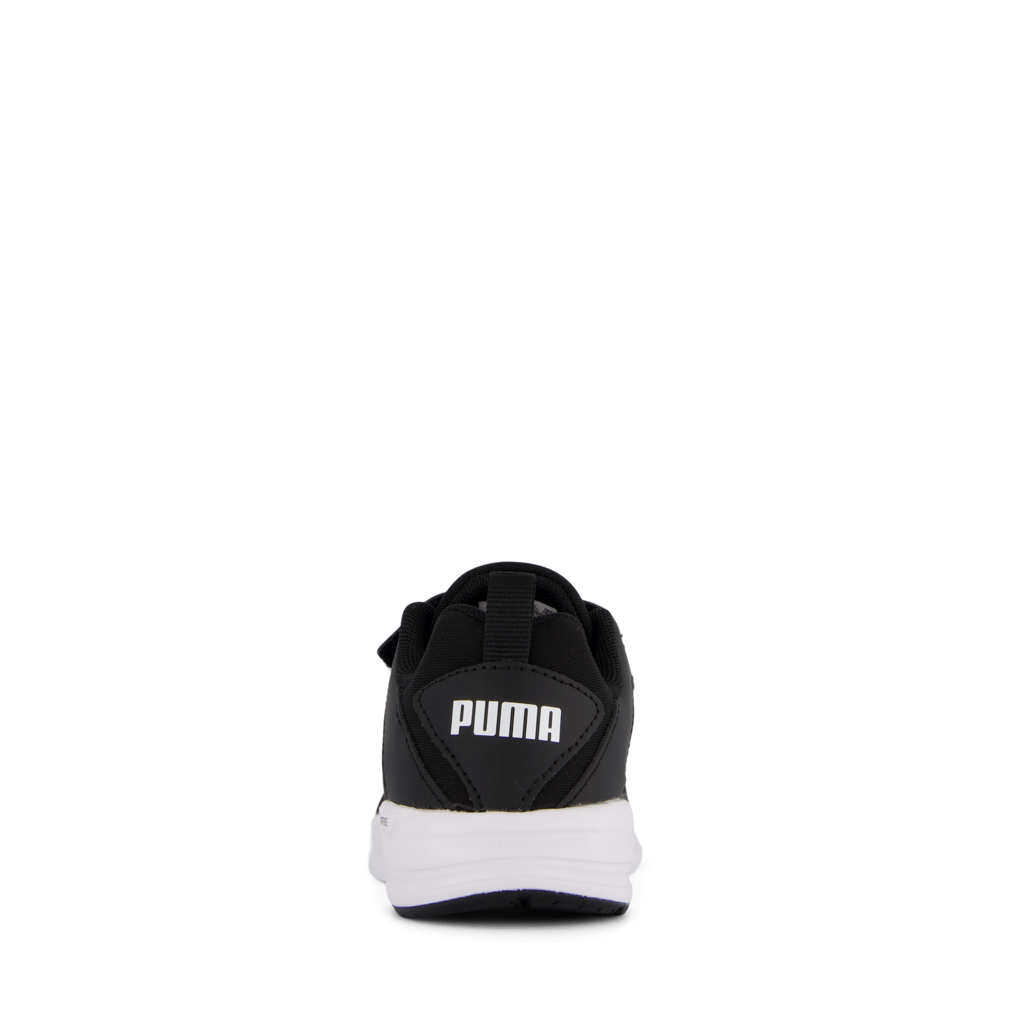 The Puma Comet 2 Alt V Ps is a stylish and functional athletic shoe designed for both training and casual wear. Featuring a breathable black mesh upper with white accents, this low-top shoe offers comfort and versatility. The single velcro strap ensures easy adjustment, while the white EVA midsole provides soft cushioning for all-day comfort. With its sleek design and Puma branding, this shoe combines performance and style effortlessly.