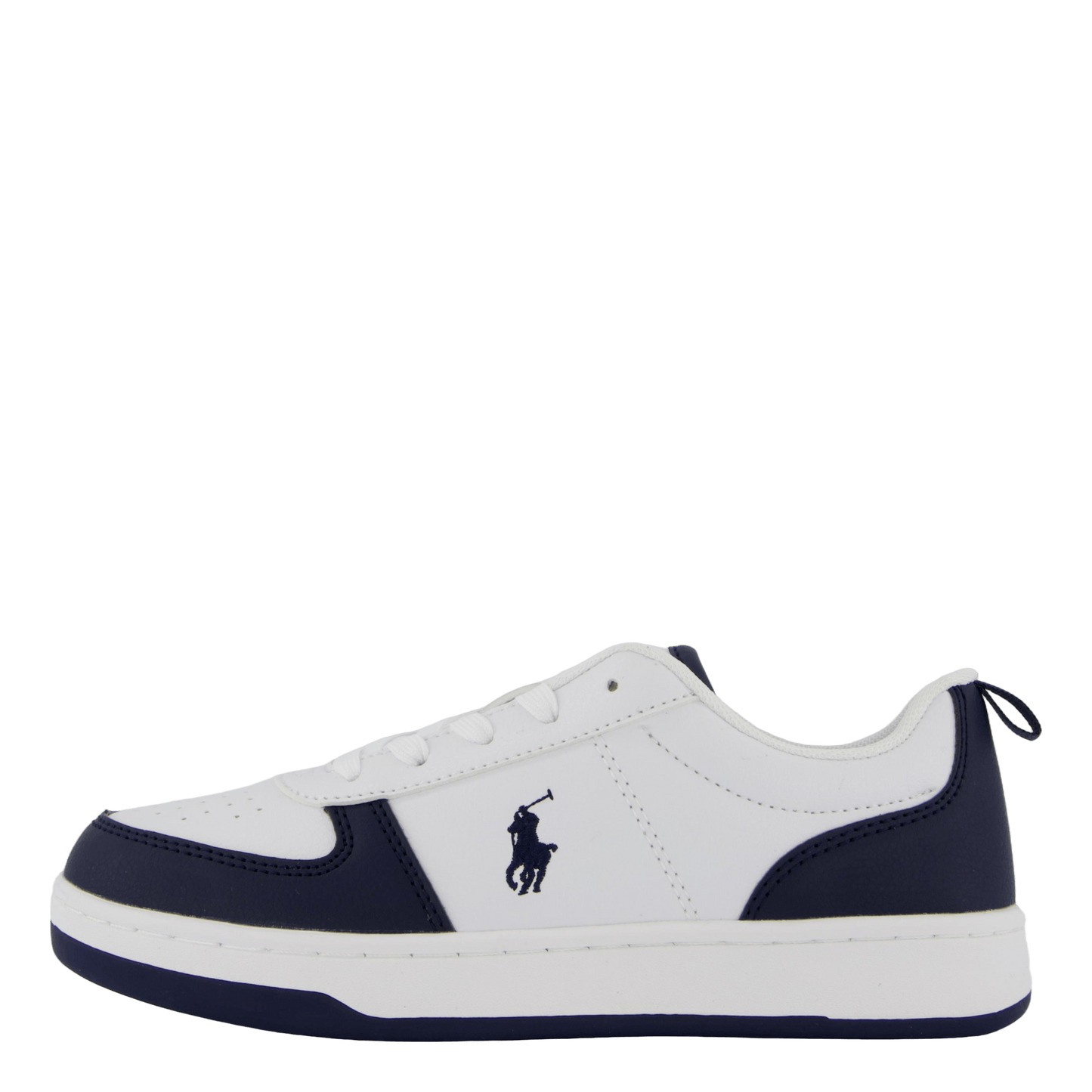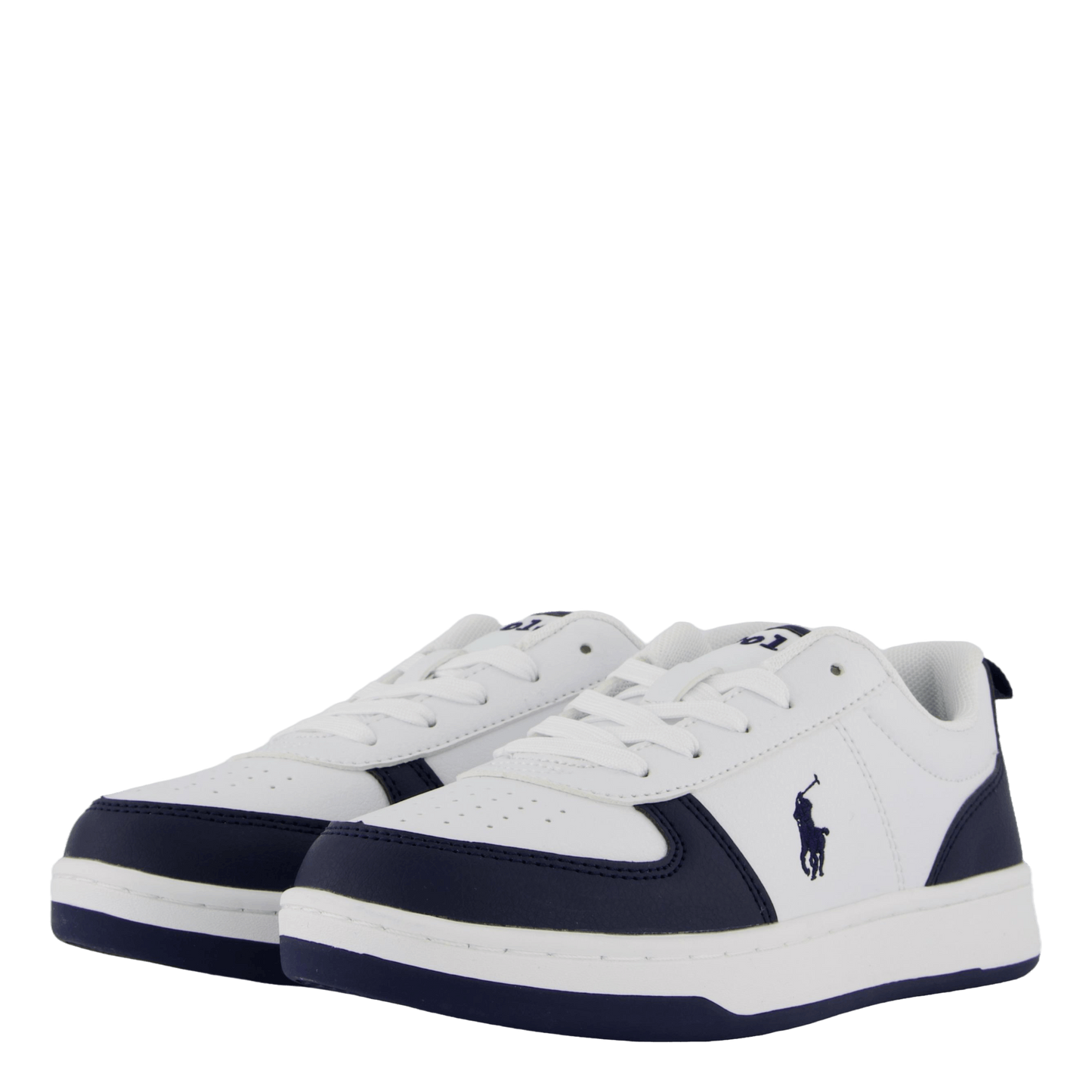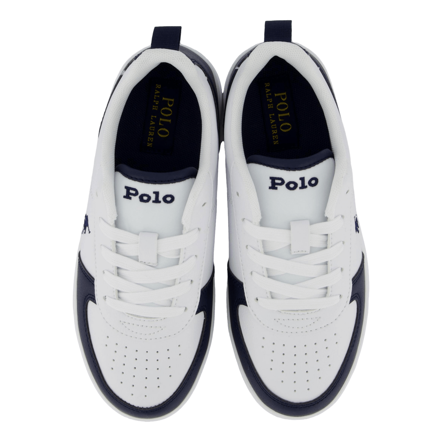 Elevate your athletic style with these Polo Court II sneakers from Ralph Lauren Junior. Featuring a crisp white tumbled leather upper with navy accents, these low-top shoes blend sporty functionality with preppy elegance. The iconic Polo logo adorns the side, while the lace-up closure ensures a secure fit. Perfect for both casual wear and light athletic activities.
