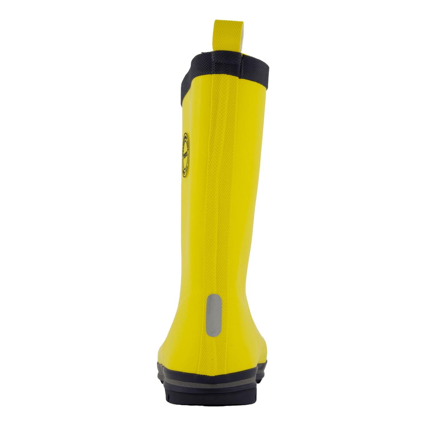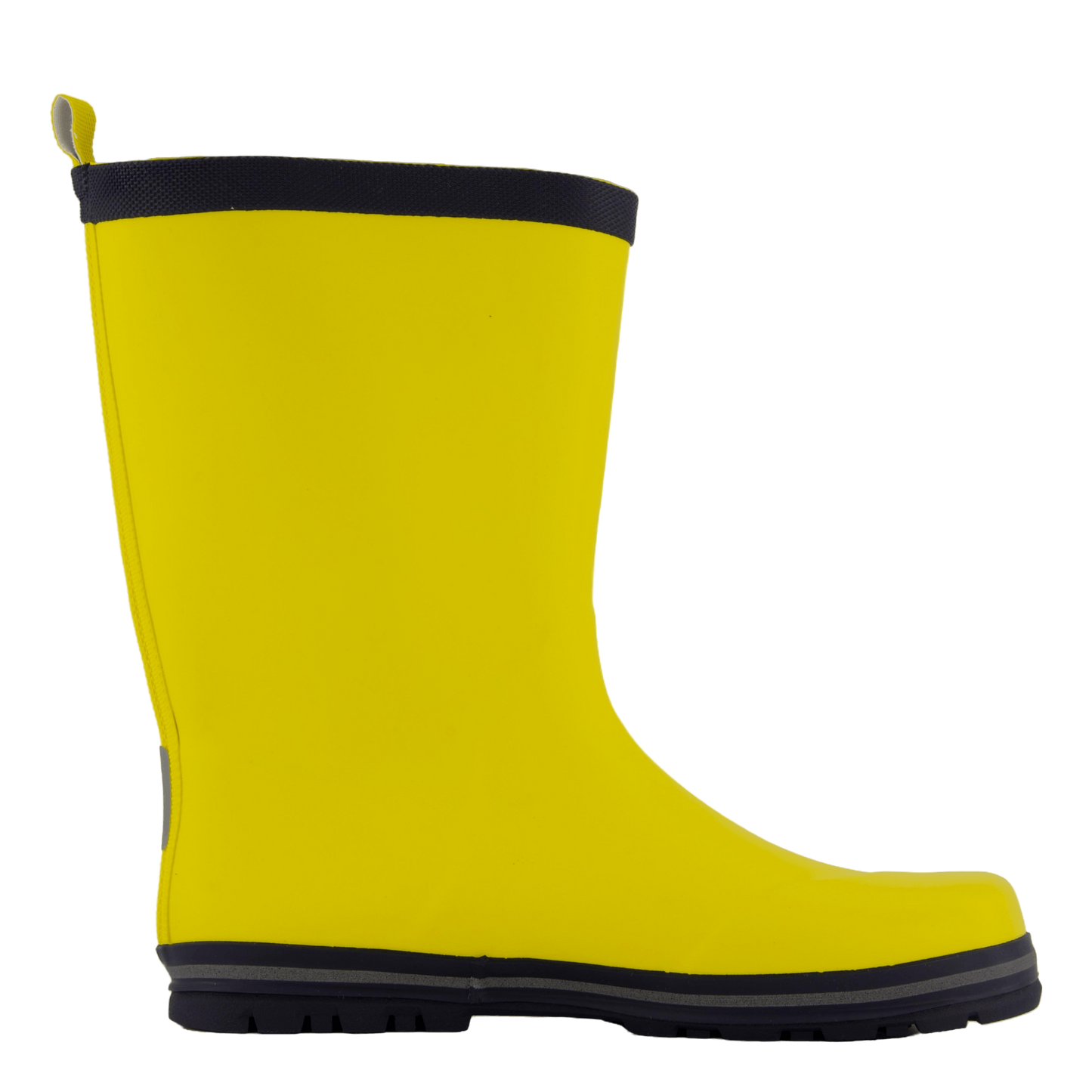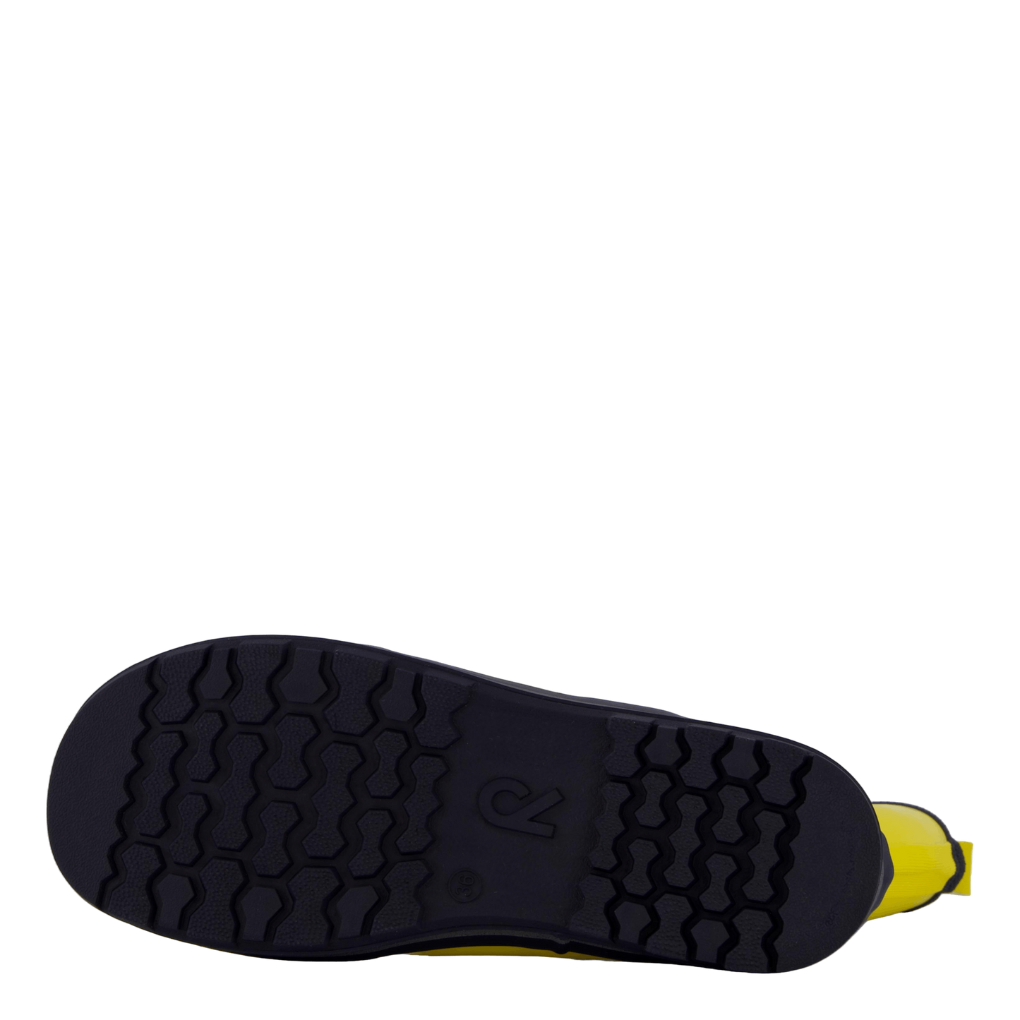 Reima's Taika 2.0 Yellow rain boots offer classic, waterproof protection for children. These bright yellow rubber boots feature a cotton lining, flexible outsole for grip, and removable insoles with Happy Fit print. Easy to put on with a height designed for age-appropriate fit, they include reflective details and a textile lining. Vegan-friendly and perfect for spring and autumn.