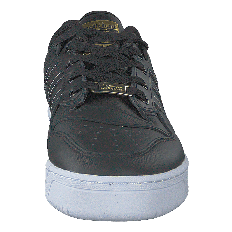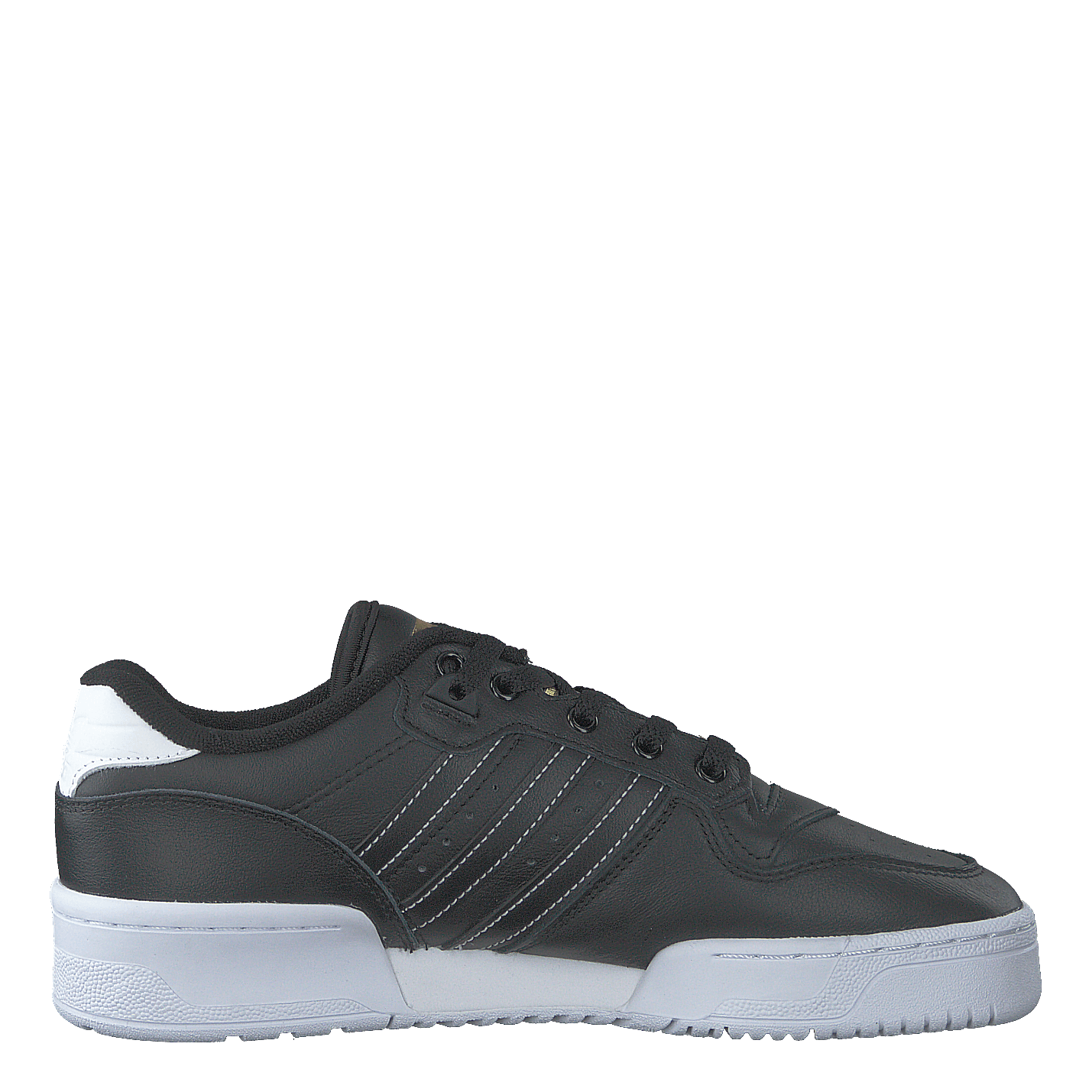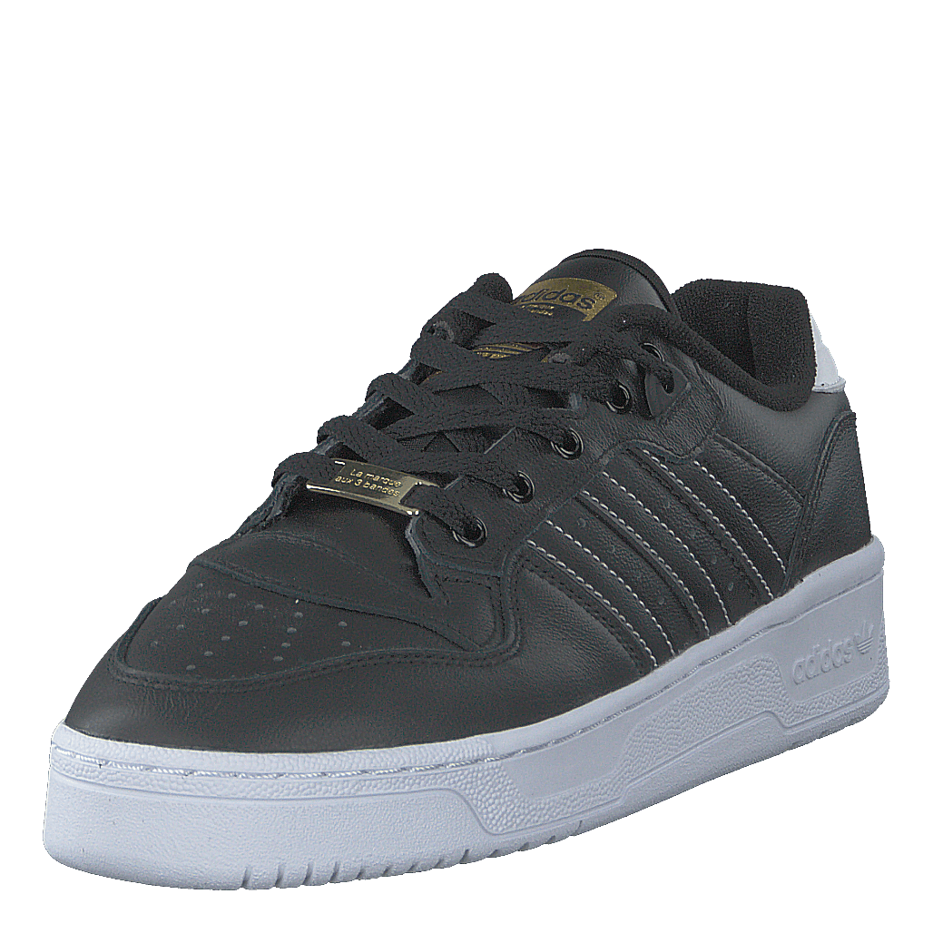 Adidas Rivalry Low combines classic style with modern comfort. This sleek, low-top sneaker features an all-black leather upper with subtle three-stripe detailing, offering a versatile look for various occasions. The white midsole provides a striking contrast, while the padded tongue and supportive heel cage ensure all-day comfort and stability.