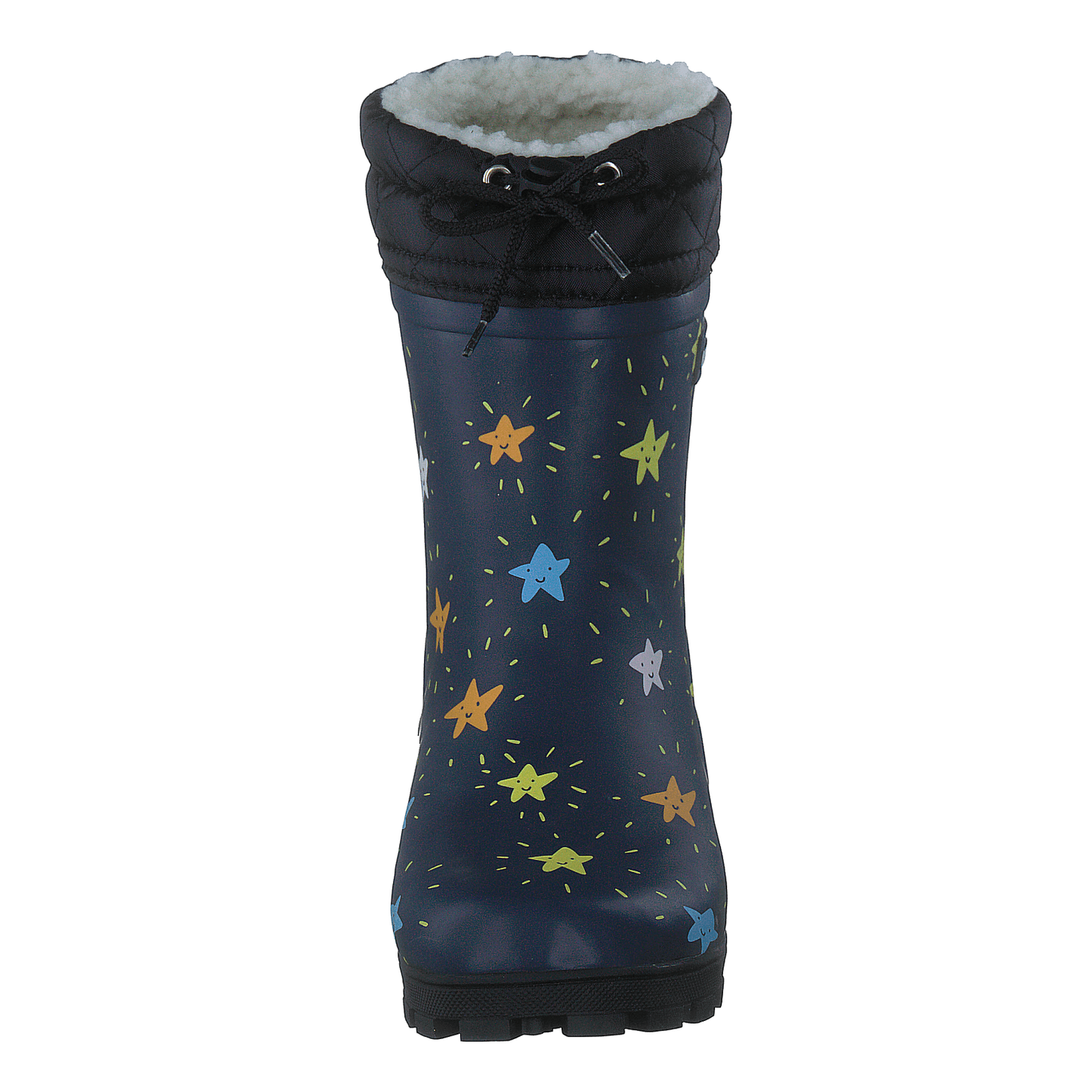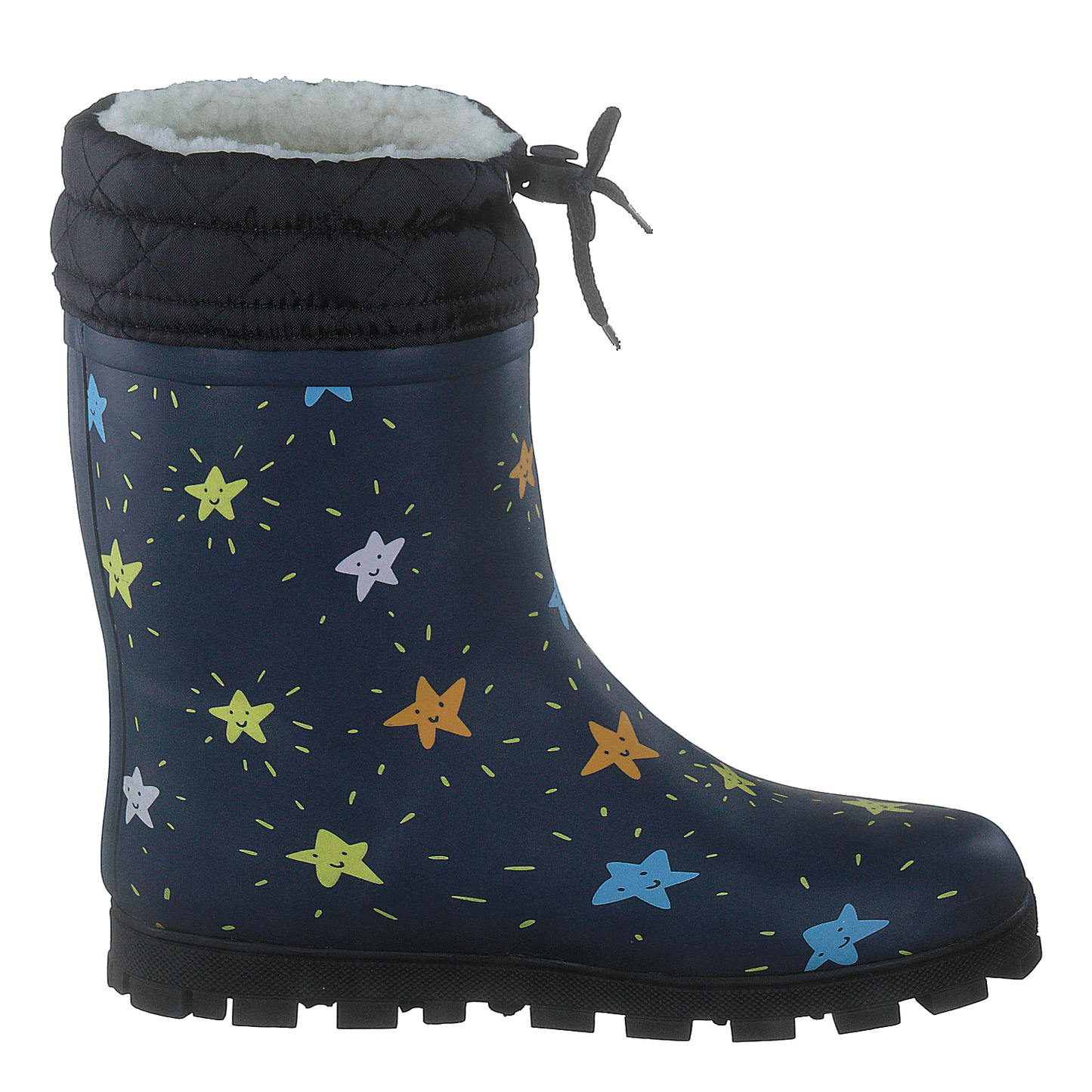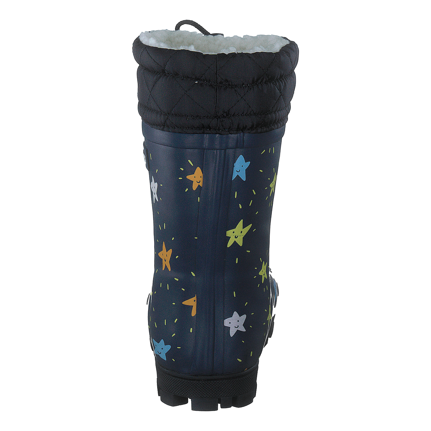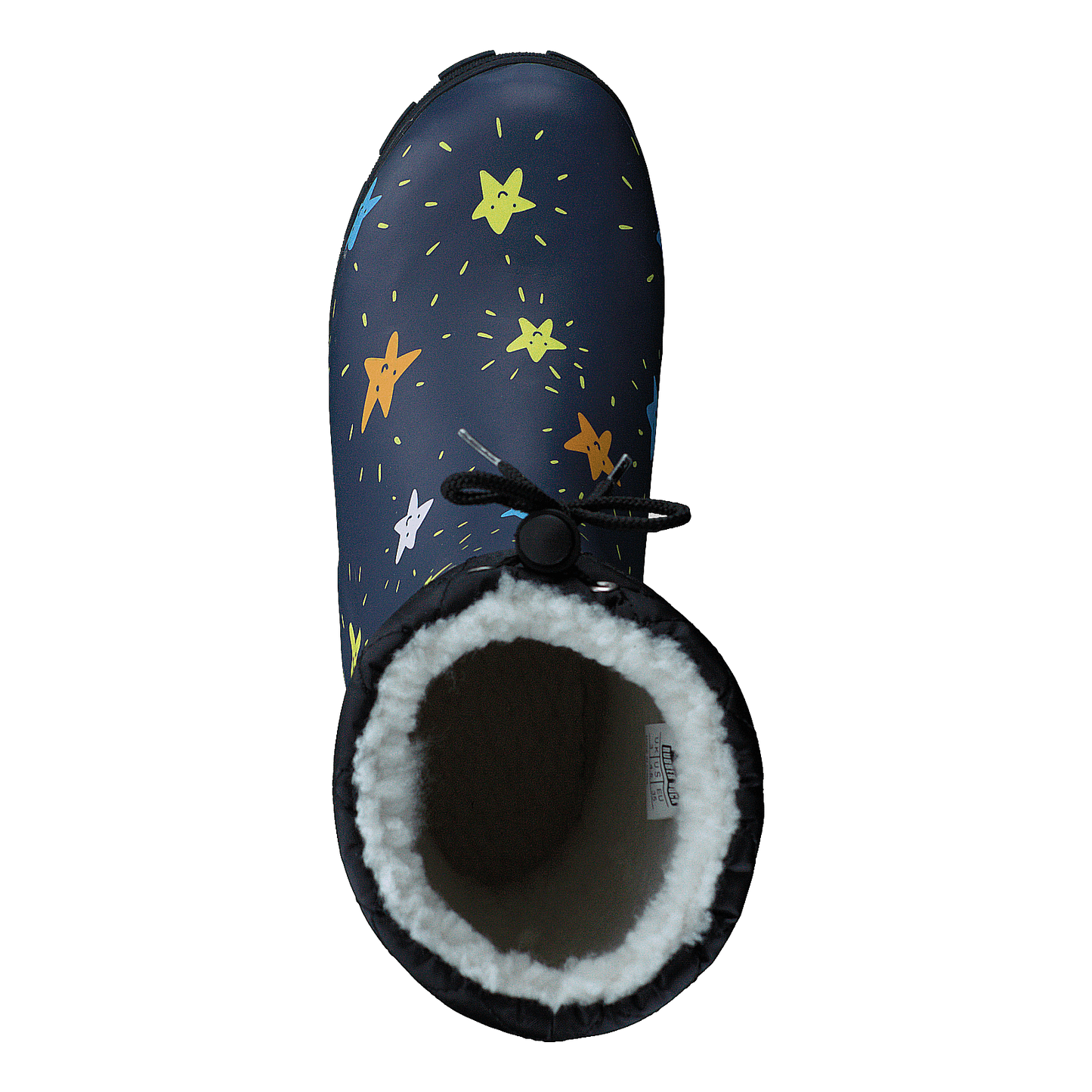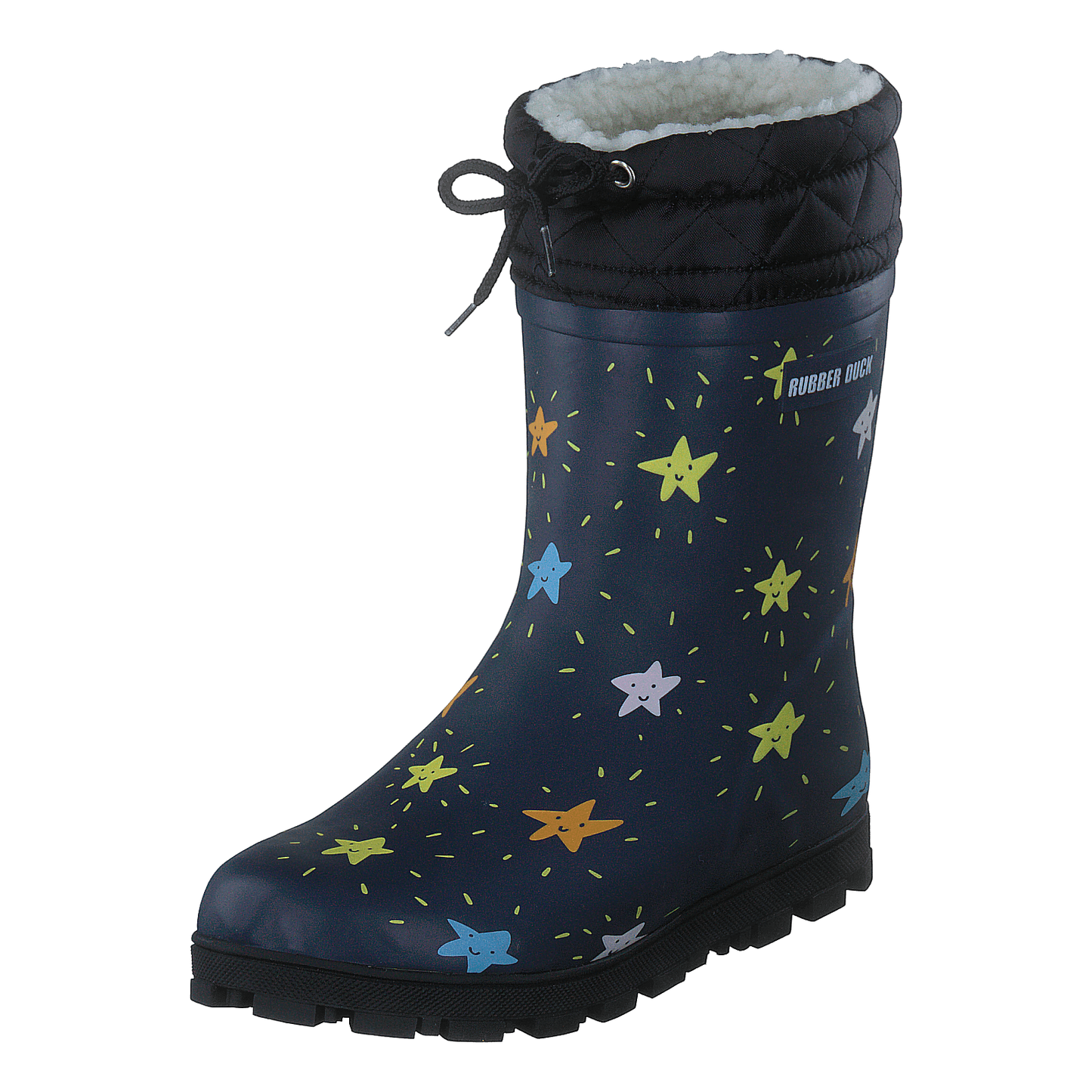 Rubber Duck's Navy Thermal Flash Stars Kids boots combine warmth and style for little adventurers. These rain boots feature a playful star pattern in vibrant colors on a navy background. With a quilted fabric collar, drawstring closure, and fleece lining, they offer superior insulation. The rugged tread ensures traction, making them perfect for cold, wet weather exploration.
