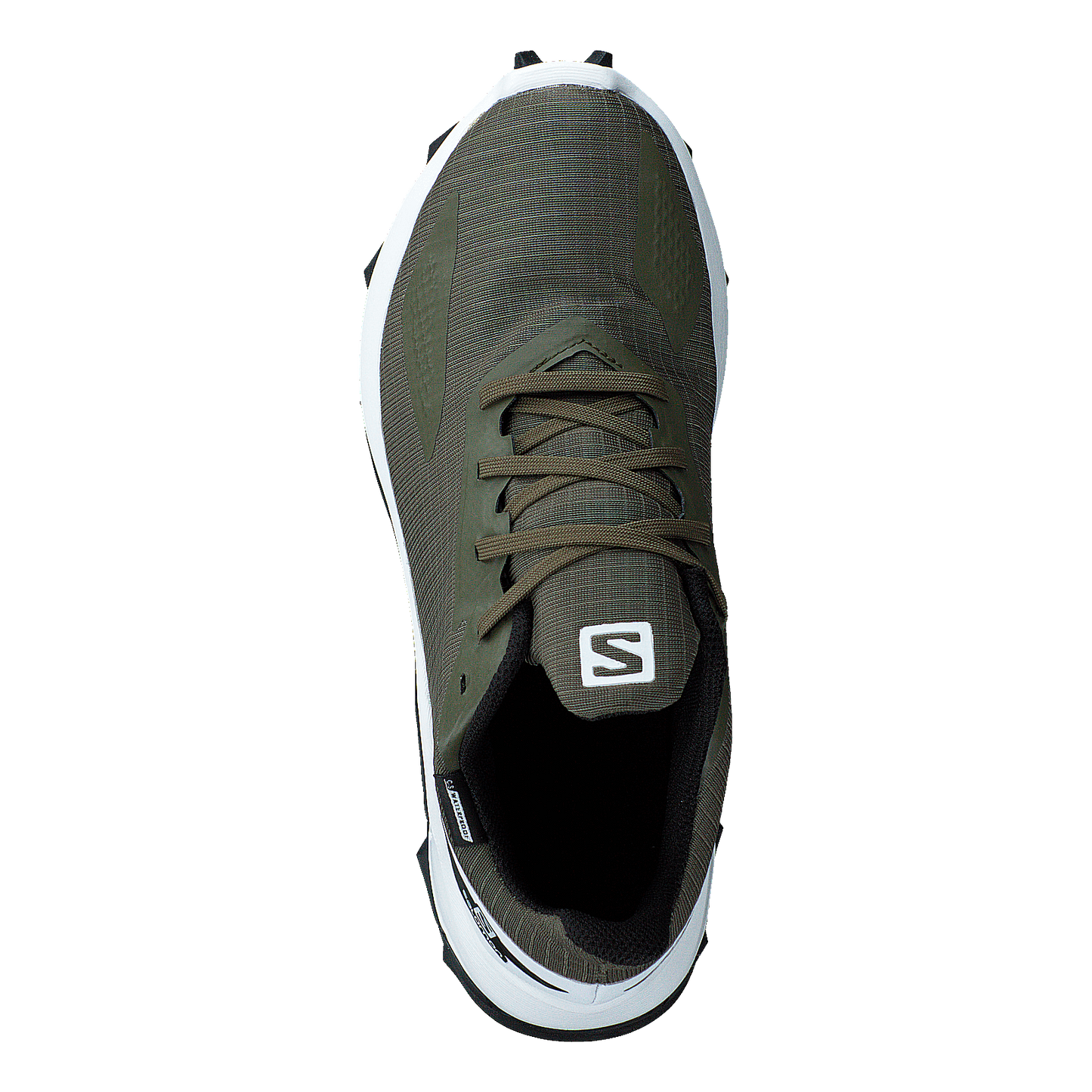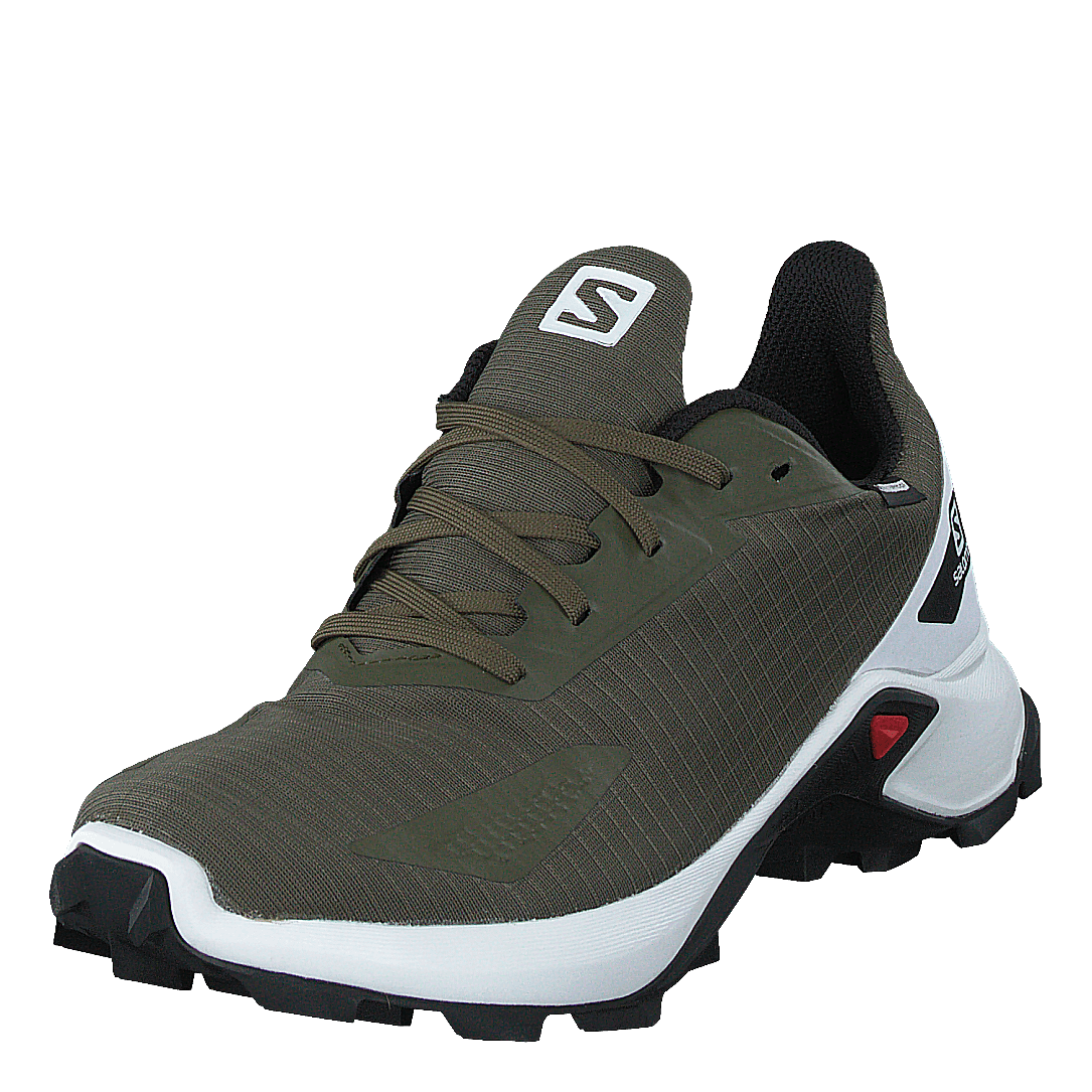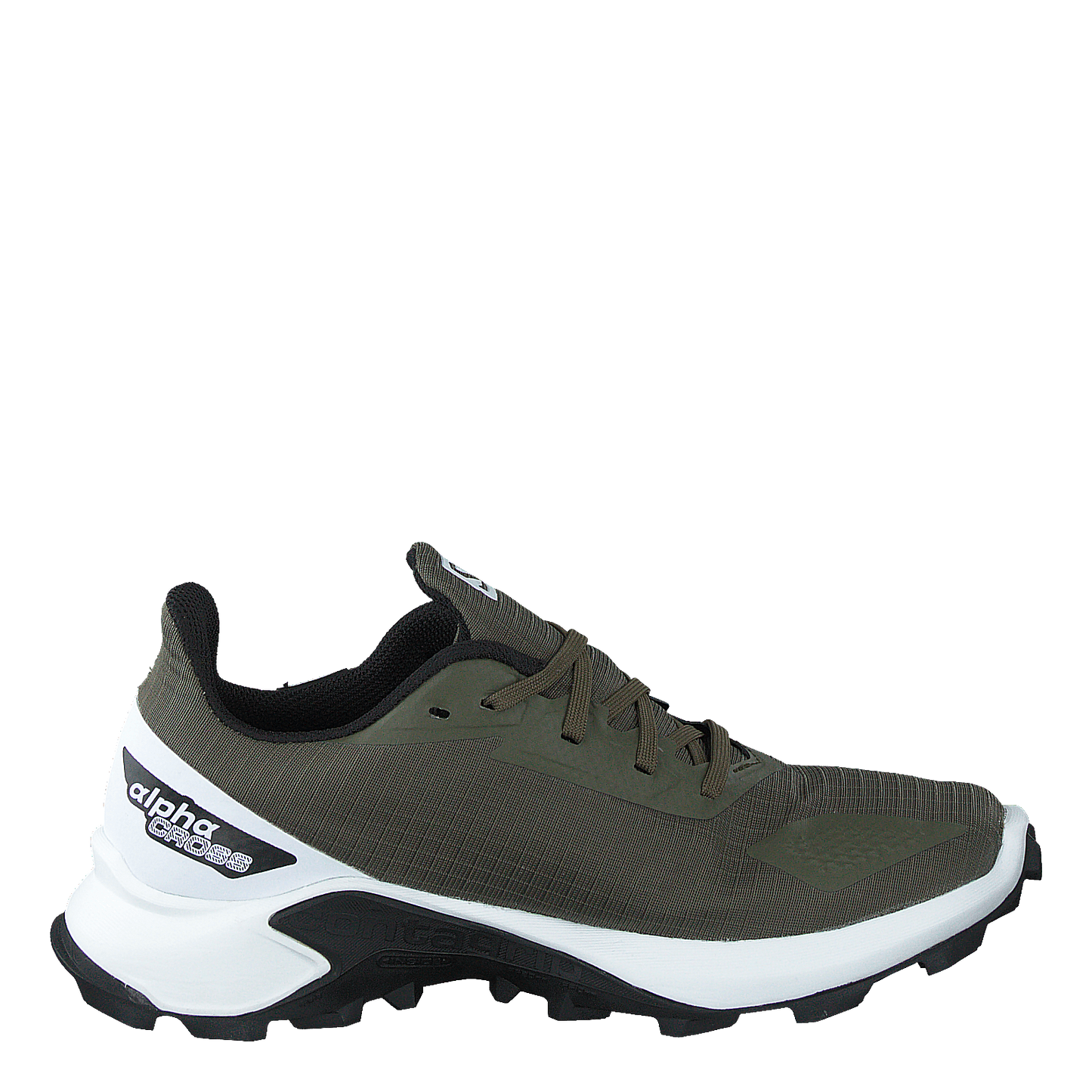Salomon's Alphacross Blast CSWP J is a waterproof terrain shoe designed for children's outdoor adventures. Featuring an olive green upper with white and black accents, this durable shoe offers excellent grip and protection. The lace-up design, cushioning foam, and soft lining ensure comfort, while the robust outsole provides traction for various terrains. Ideal for hiking or running, it keeps small feet dry and protected.