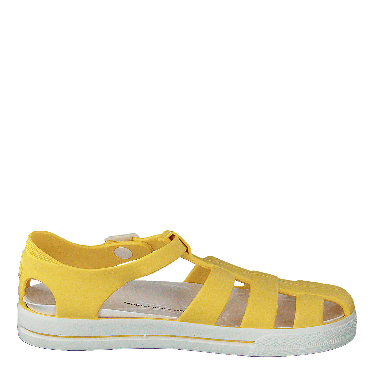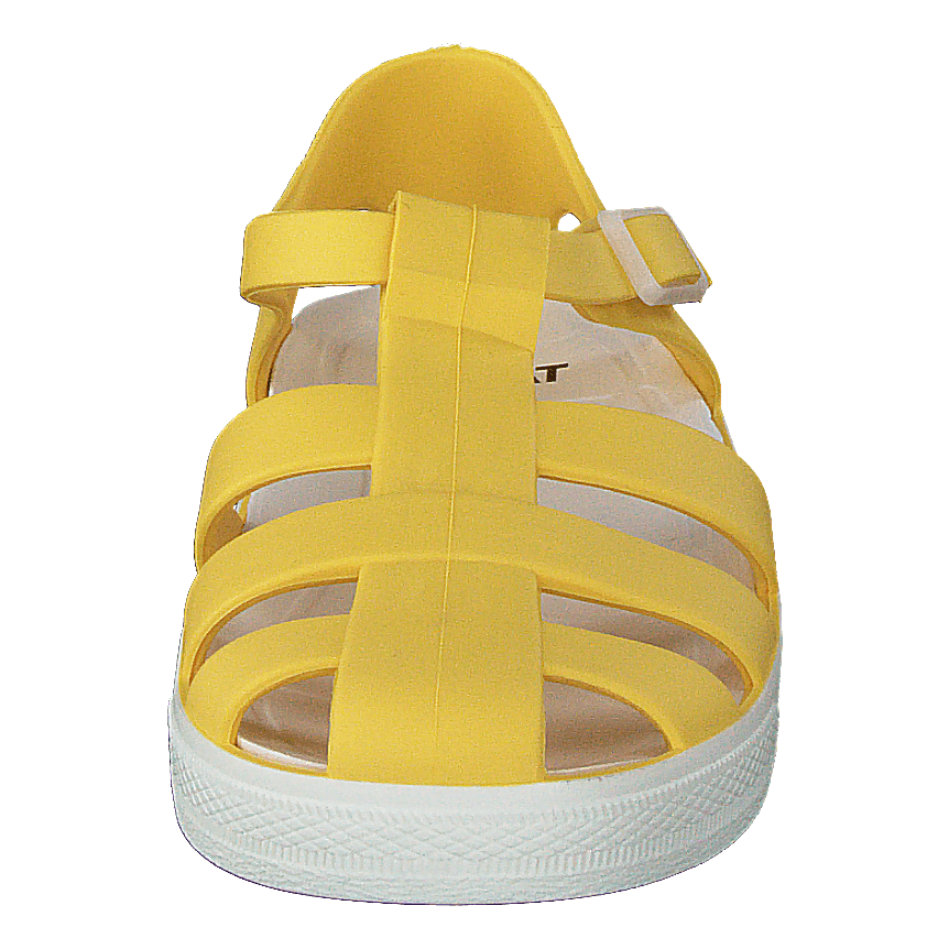 Sand WP Light Yellow is a vibrant, beach-ready sandal perfect for summer water play. Made from PVC-free, recyclable SEBS rubber, these durable shoes offer protection against rocks and sharp objects. Features include a shock-absorbing removable insole, adjustable buckle, and easy snap-on design. Machine washable and chrome-free, these closed-toe sandals combine practicality with a fun, summery aesthetic.