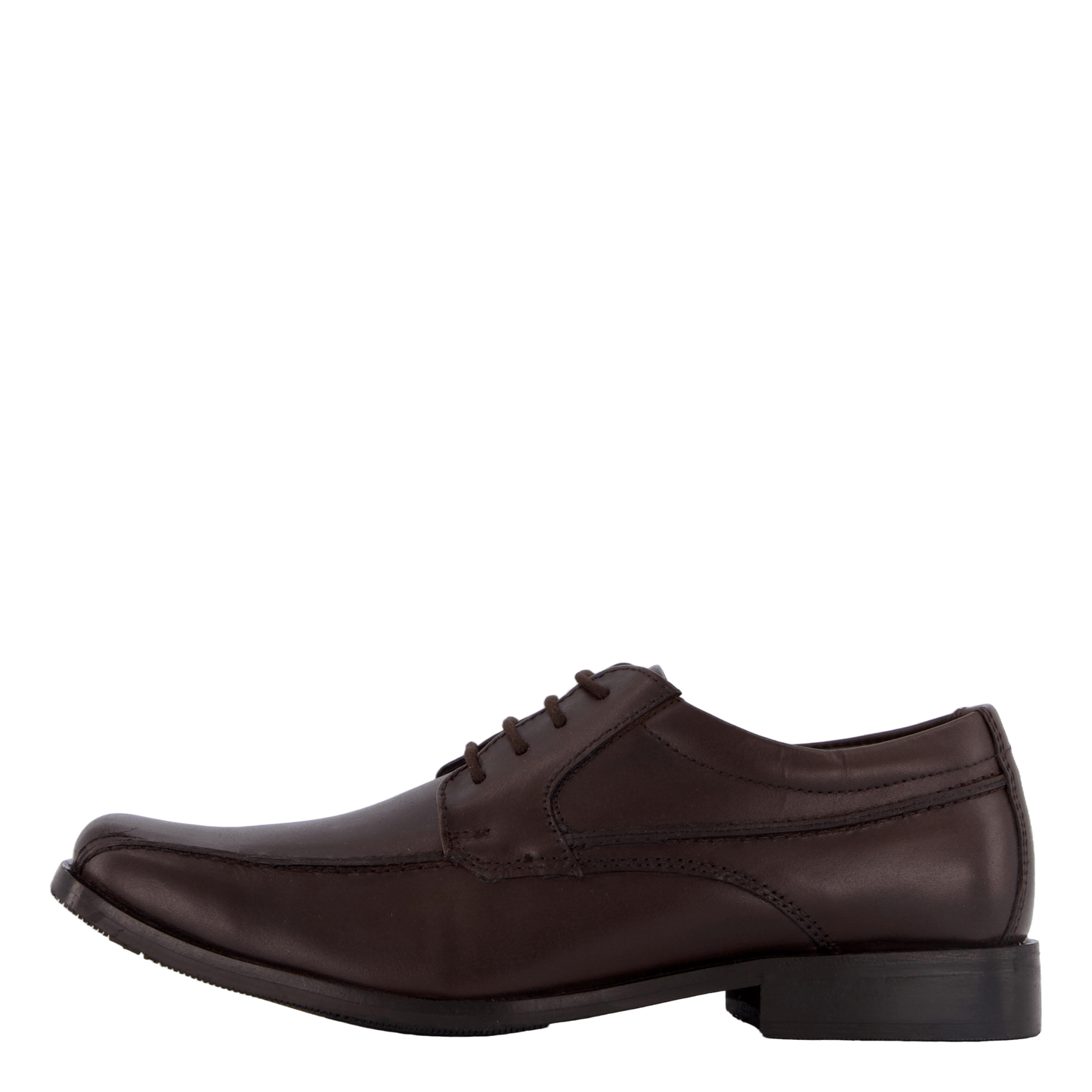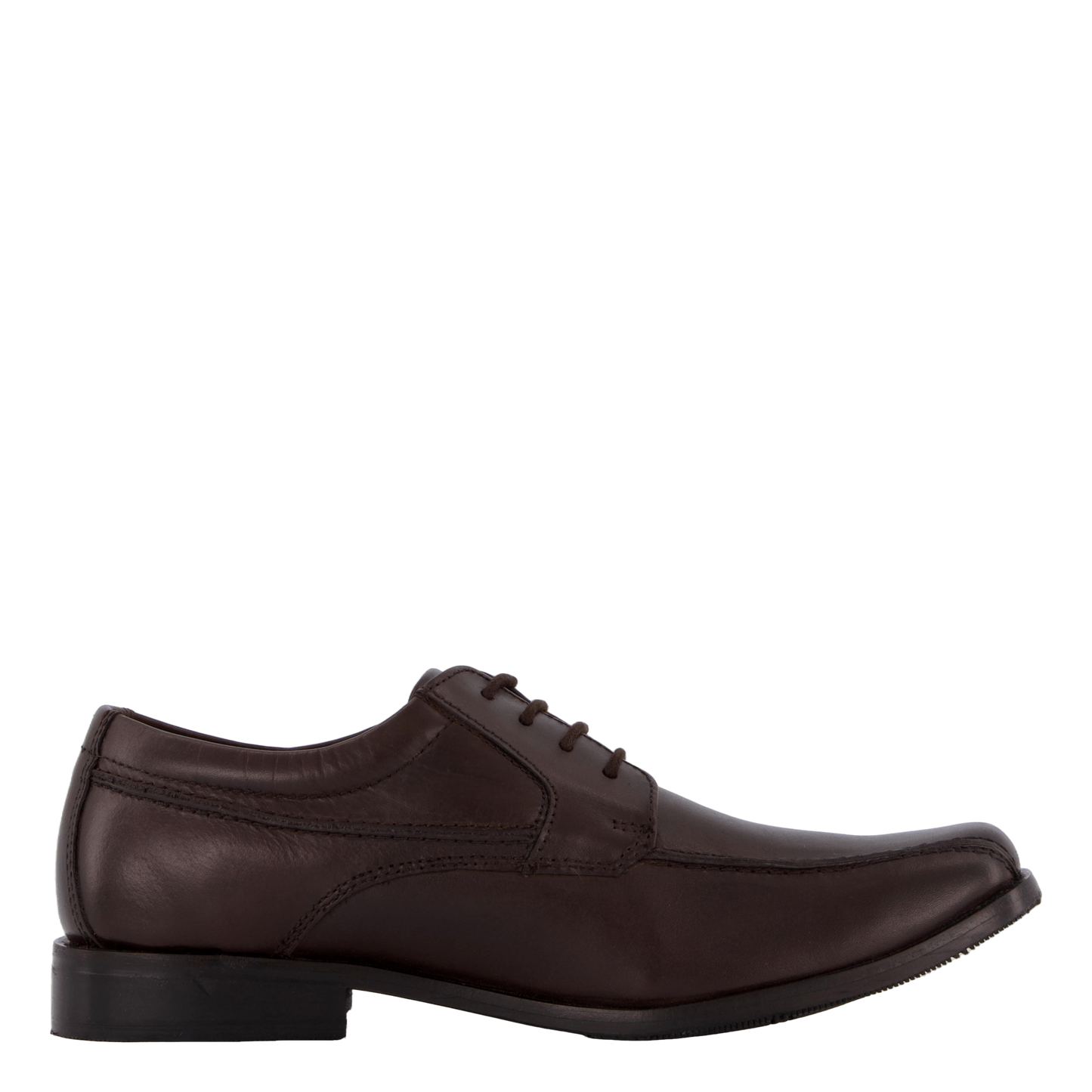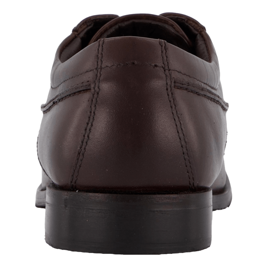 Elevate your formal wear with these Senator dark brown leather dress shoes. Featuring a classic derby-style design with lace-up closure, these shoes boast a modern squared toe and sleek profile. Crafted with smooth leather and visible stitching, they offer a professional look suitable for business or formal occasions. The low-heel rubber sole ensures comfort and durability.