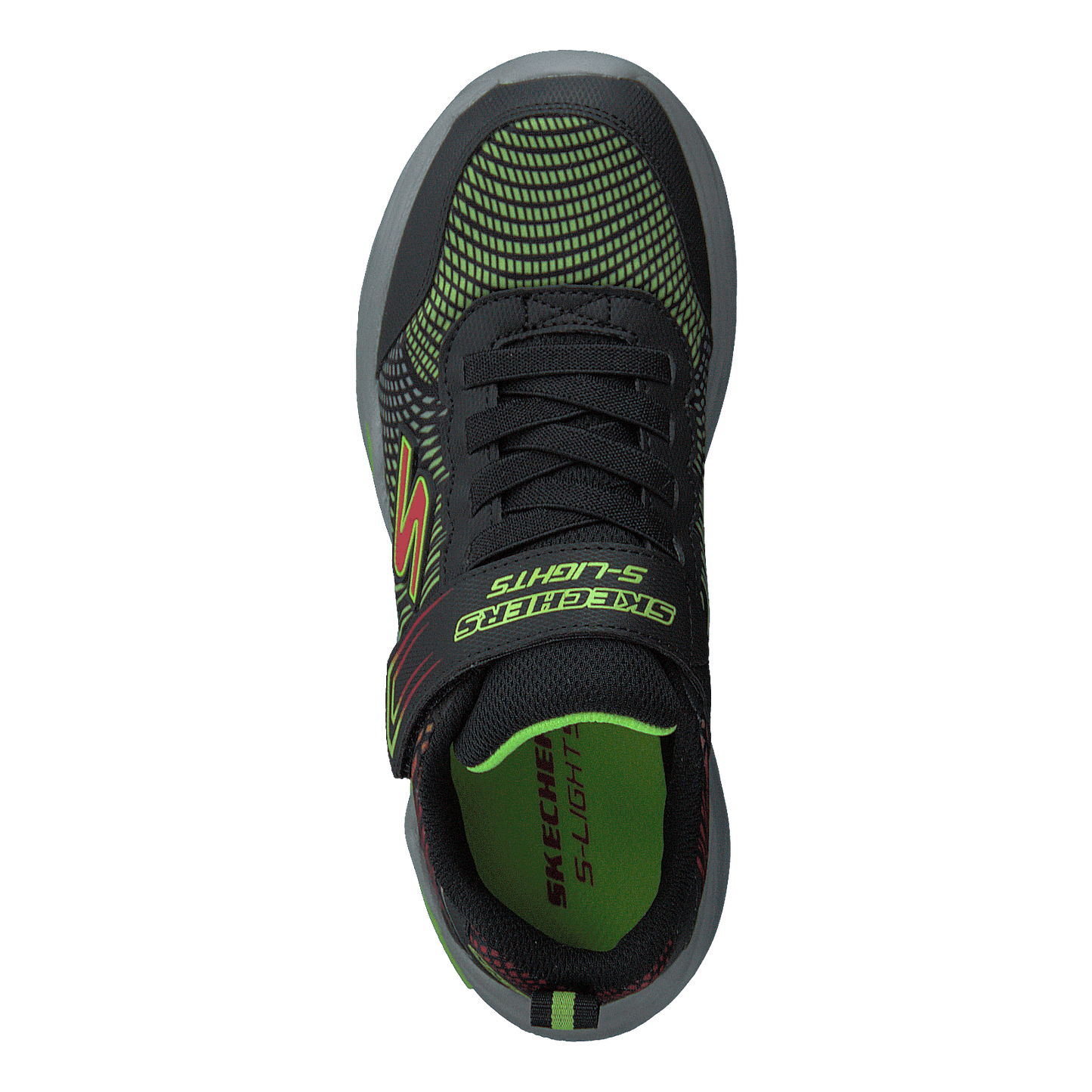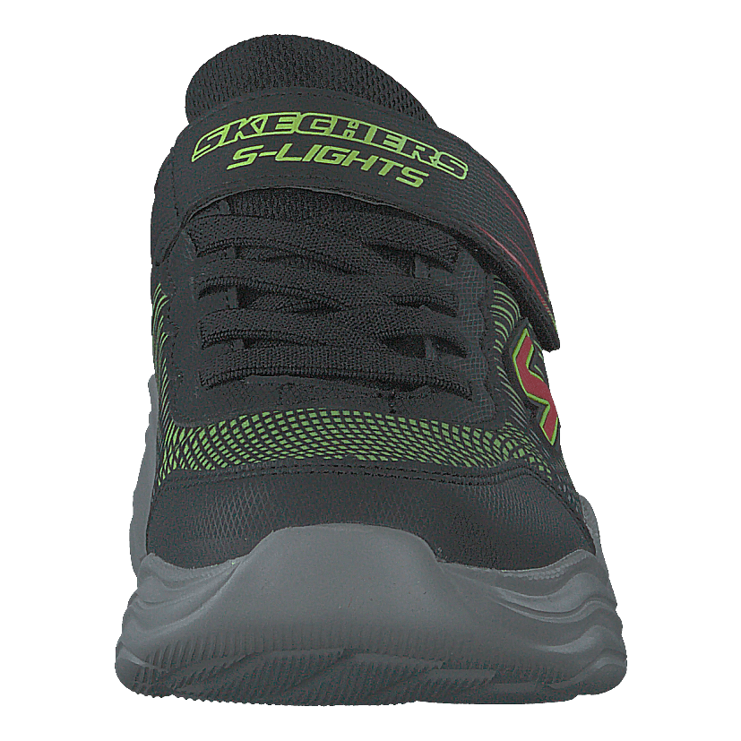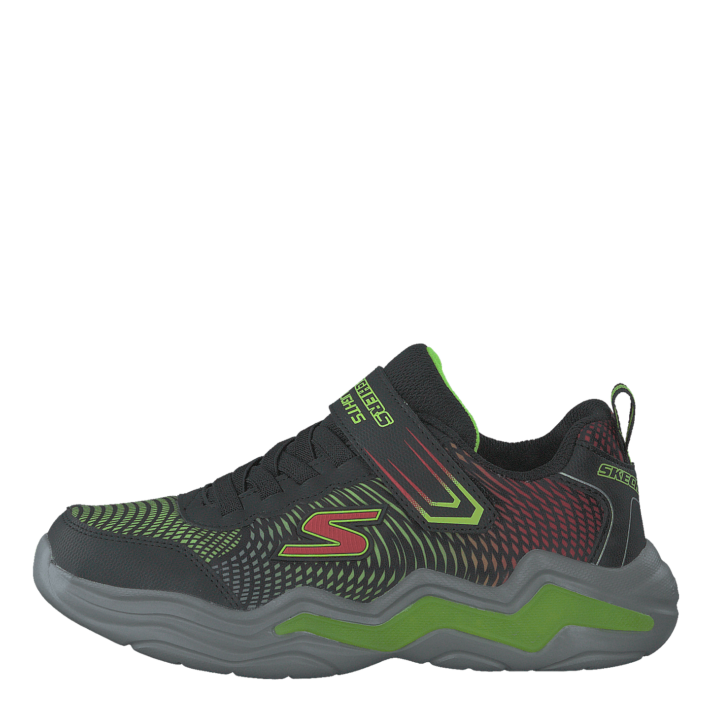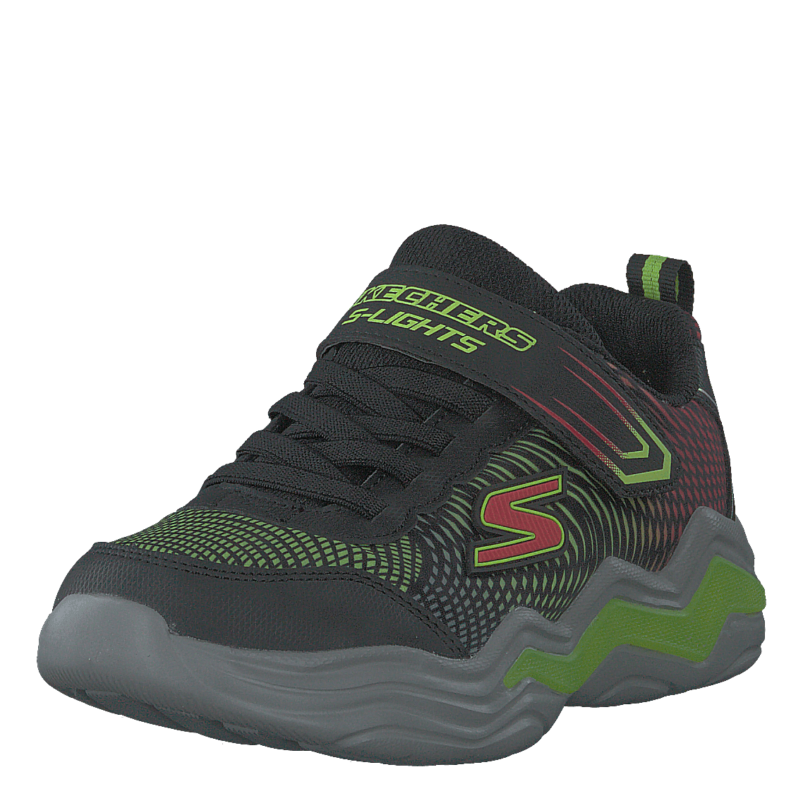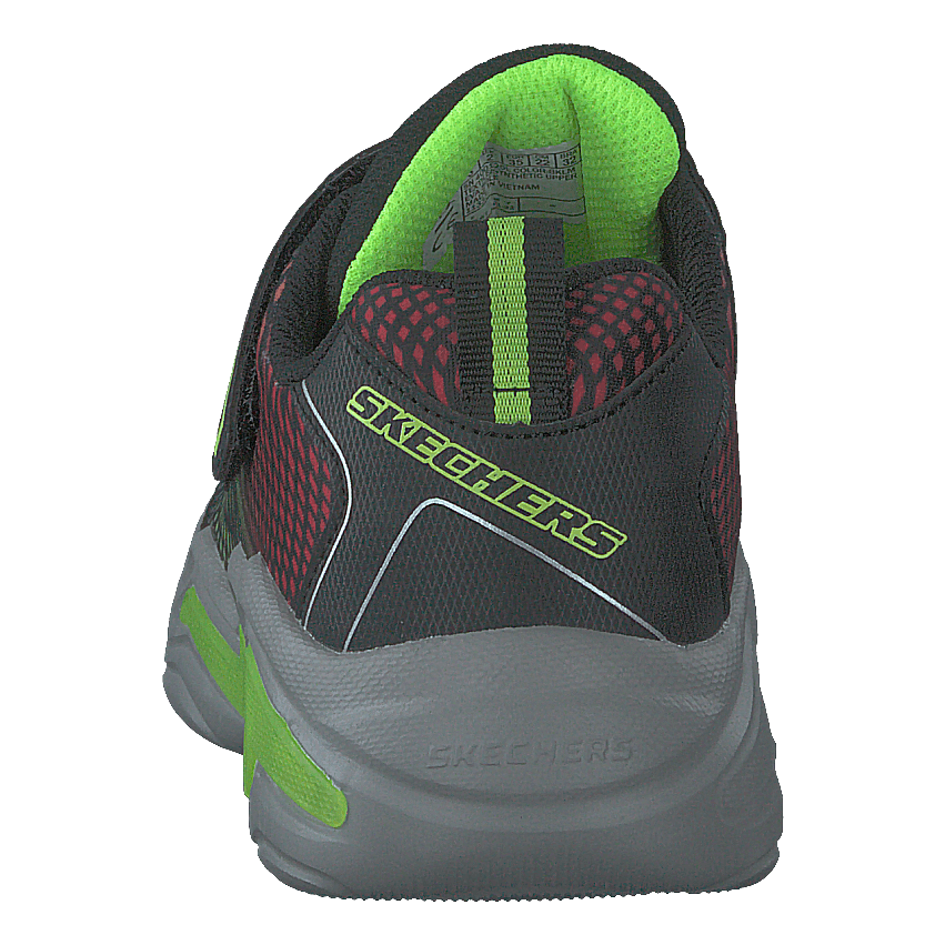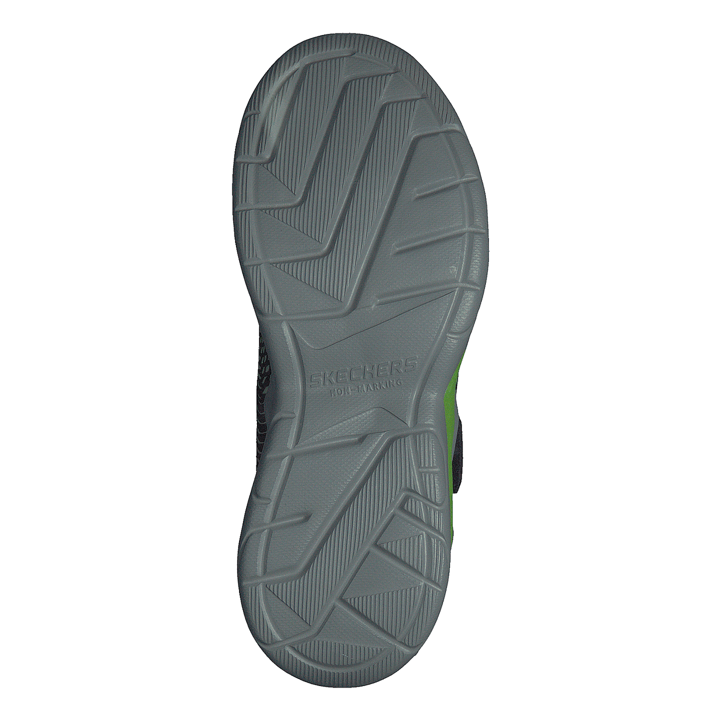 Skechers Erupters IV boys' athletic shoe combines style and comfort with its sleek black mesh upper and vibrant lime green accents. Featuring a slip-on design with elastic laces for easy wear, this sporty shoe boasts a chunky gray rubber sole for excellent cushioning and support. The dynamic wave-like pattern and prominent Skechers logo add a modern touch, perfect for active young wearers.