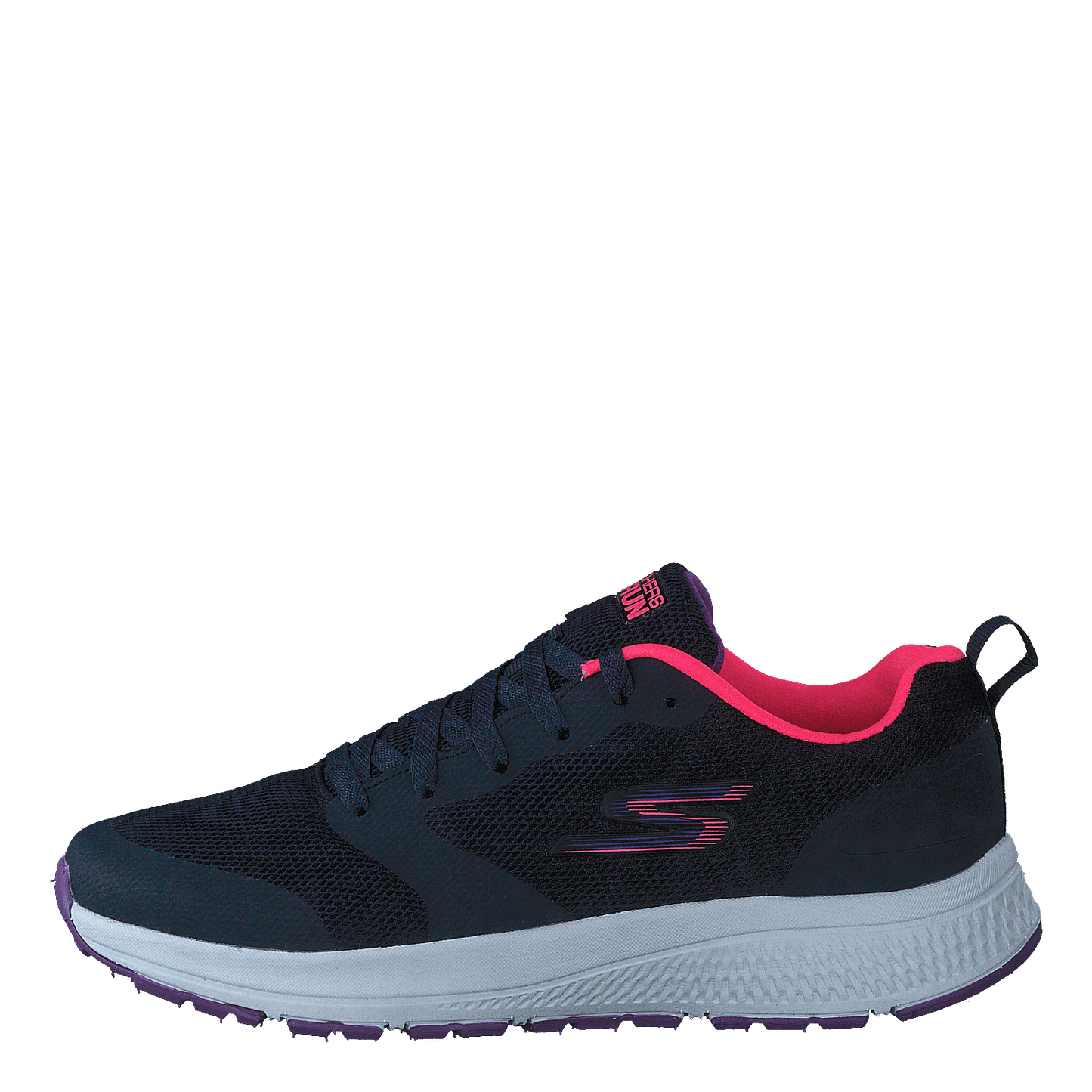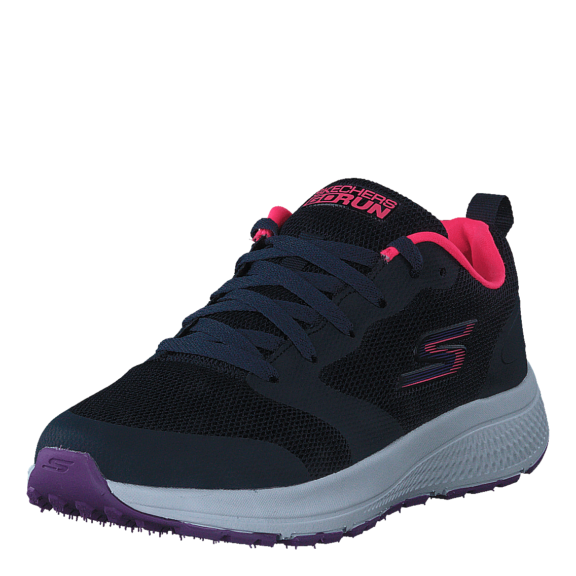 Skechers Girls Go Run Consistent combines style and performance in a navy blue running shoe with pink accents. Featuring a breathable mesh upper, memory foam insole, and durable outsole, it offers comfort and support for active girls. The lightweight construction, flexible forefoot, and lace-up closure ensure a responsive fit, while the purple tread pattern provides excellent traction for various surfaces.