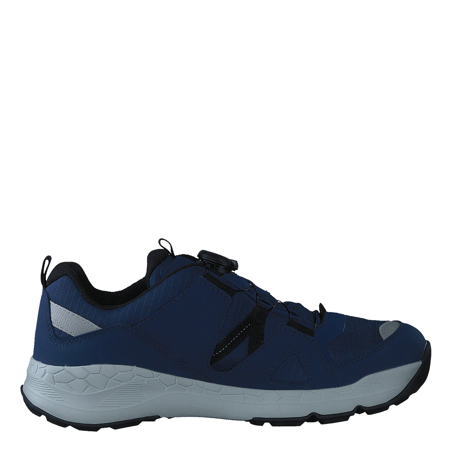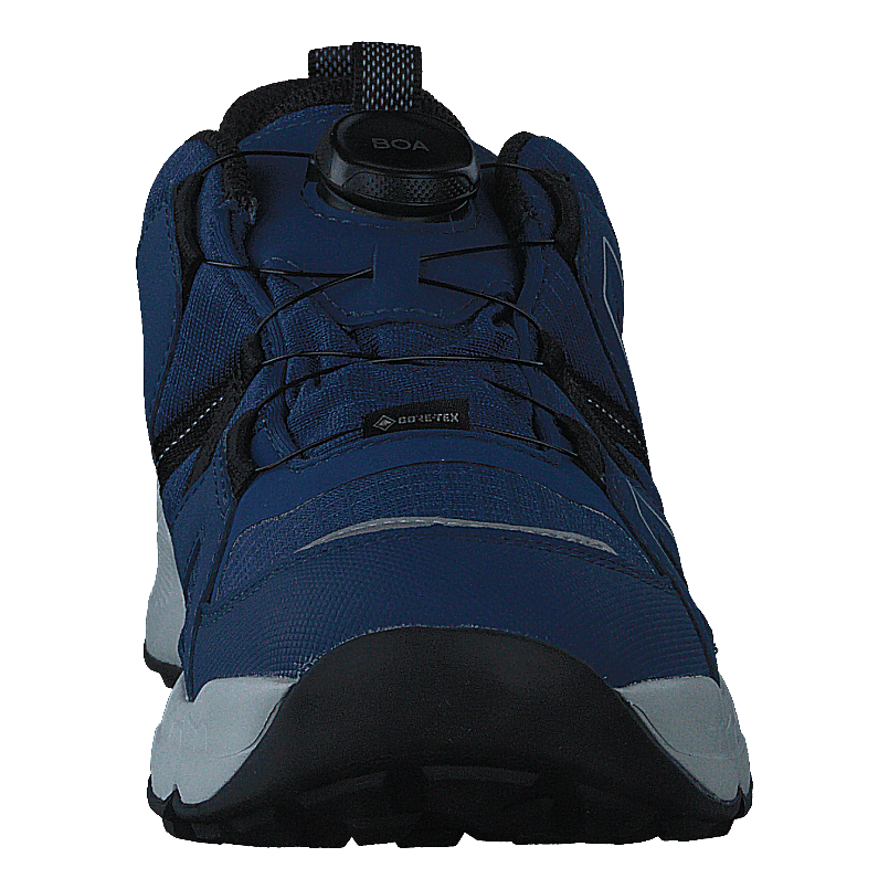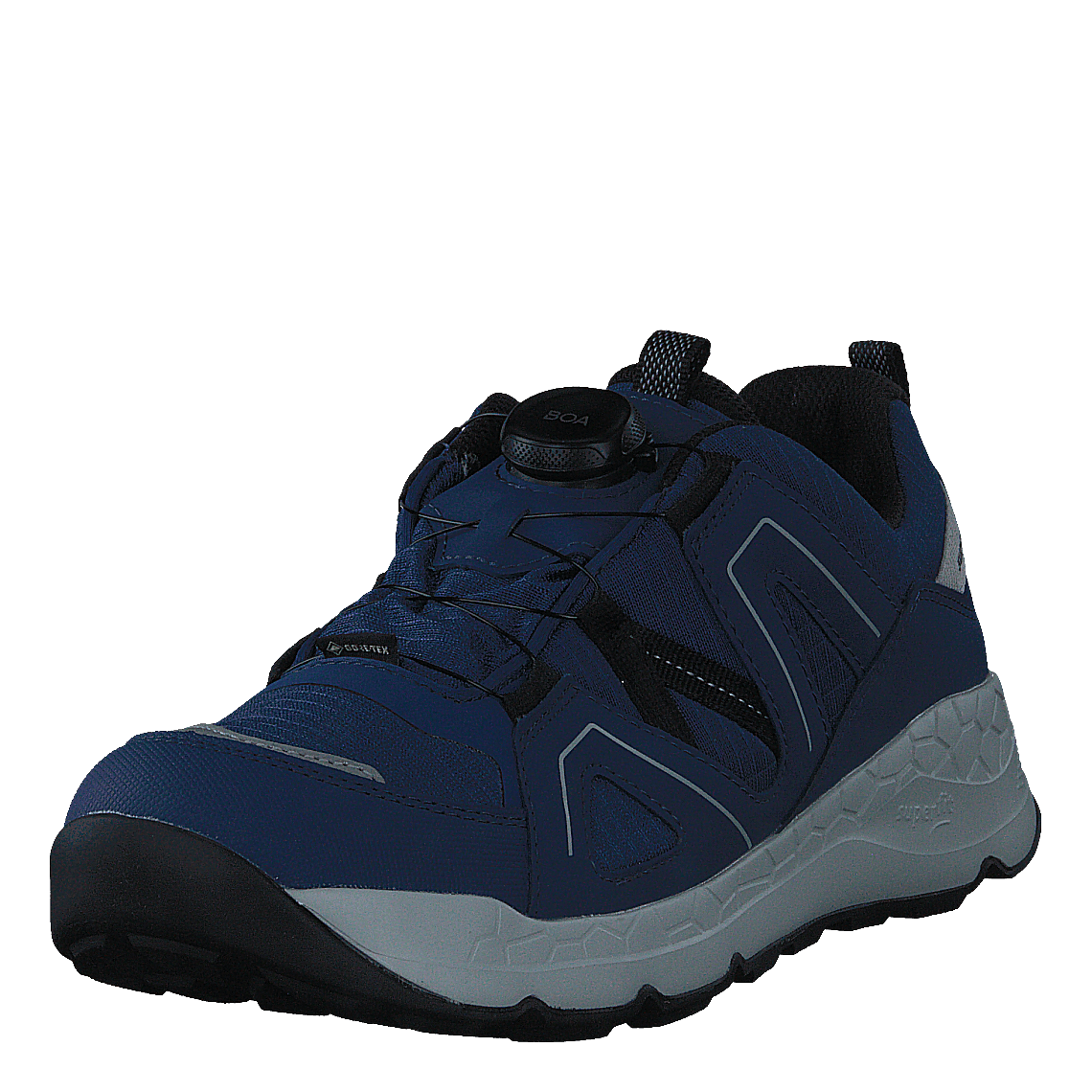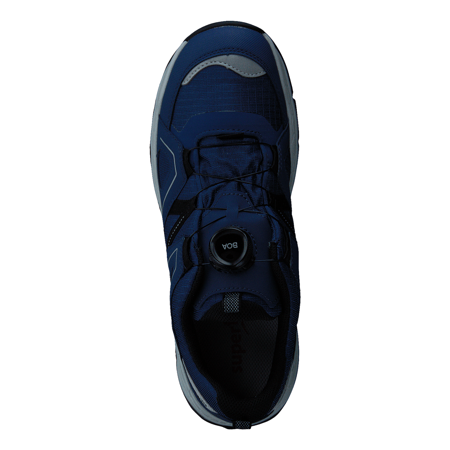 The Free Ride Blue sneaker by Superfit combines style and functionality for outdoor adventures. Featuring a waterproof GORE-TEX lining, BOA® closure system for precise fit, and a durable two-component sole, this navy blue shoe offers grip and comfort on various terrains. Reflective elements enhance visibility, while the breathable mesh upper with synthetic overlays ensures durability and support for active lifestyles.