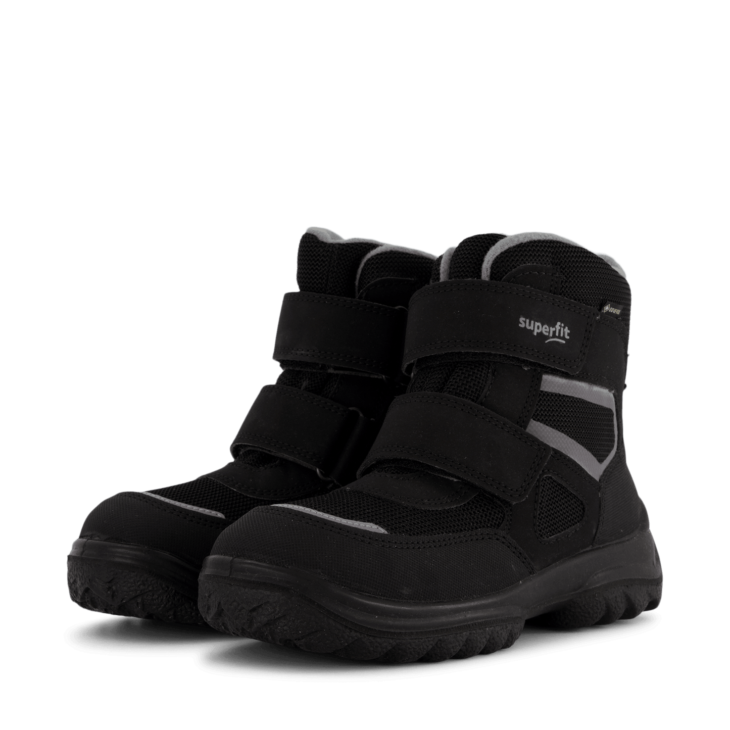 Superfit's Snowcat Black winter boots offer superior protection for children's winter adventures. Featuring GORE-TEX lining with pure new wool, these waterproof boots keep feet warm and dry. Easy-to-use Velcro fasteners, reflective elements for visibility, and a lightweight, non-slip PU sole ensure comfort and safety. The high-top design and durable materials make these boots ideal for active kids in cold climates.