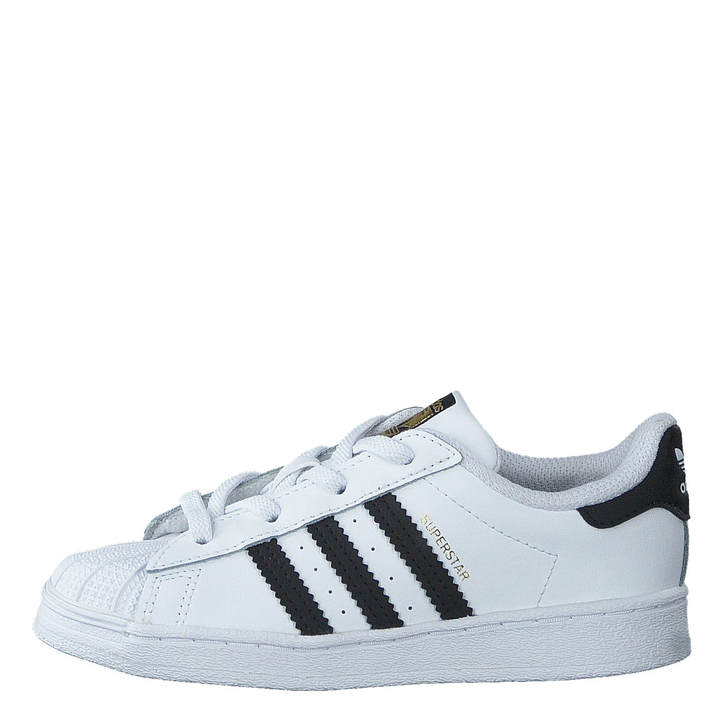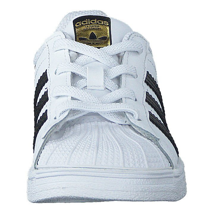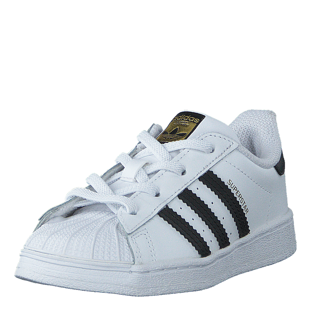 Celebrate 50 years of iconic style with these infant Adidas Superstar shoes. Featuring a white leather upper with classic black 3-Stripes, rubber shell toe, and OrthoLite® sockliner for comfort. Easy-on elastic laces (plus regular laces included) make dressing hassle-free. The rubber cupsole ensures durability for daily wear, perfect for little feet learning to explore.