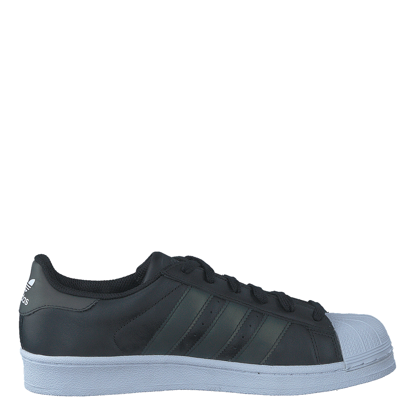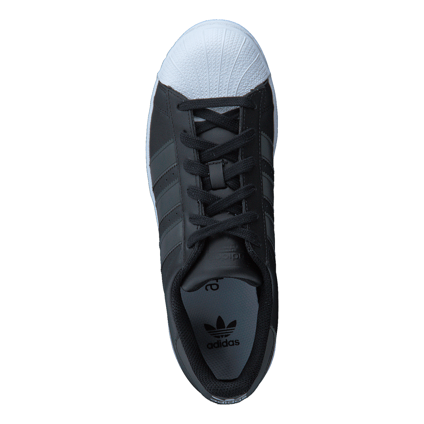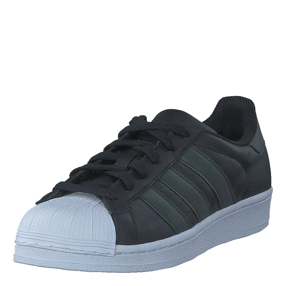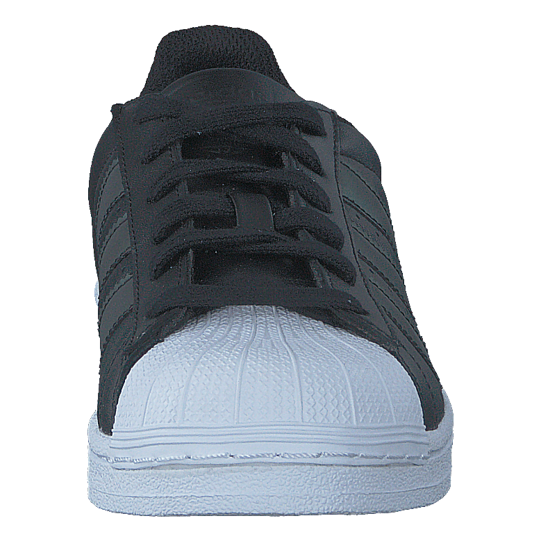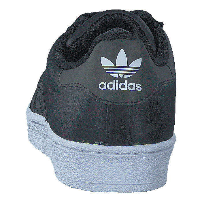 Elevate your child's style with these adidas Originals Superstar J sneakers in Core Black and Ftwr White. Featuring the iconic shell toe and three-stripe design, these shoes blend classic aesthetics with modern comfort. The smooth black leather upper, contrasting white midsole, and durable rubber sole make them perfect for everyday wear and active play.
