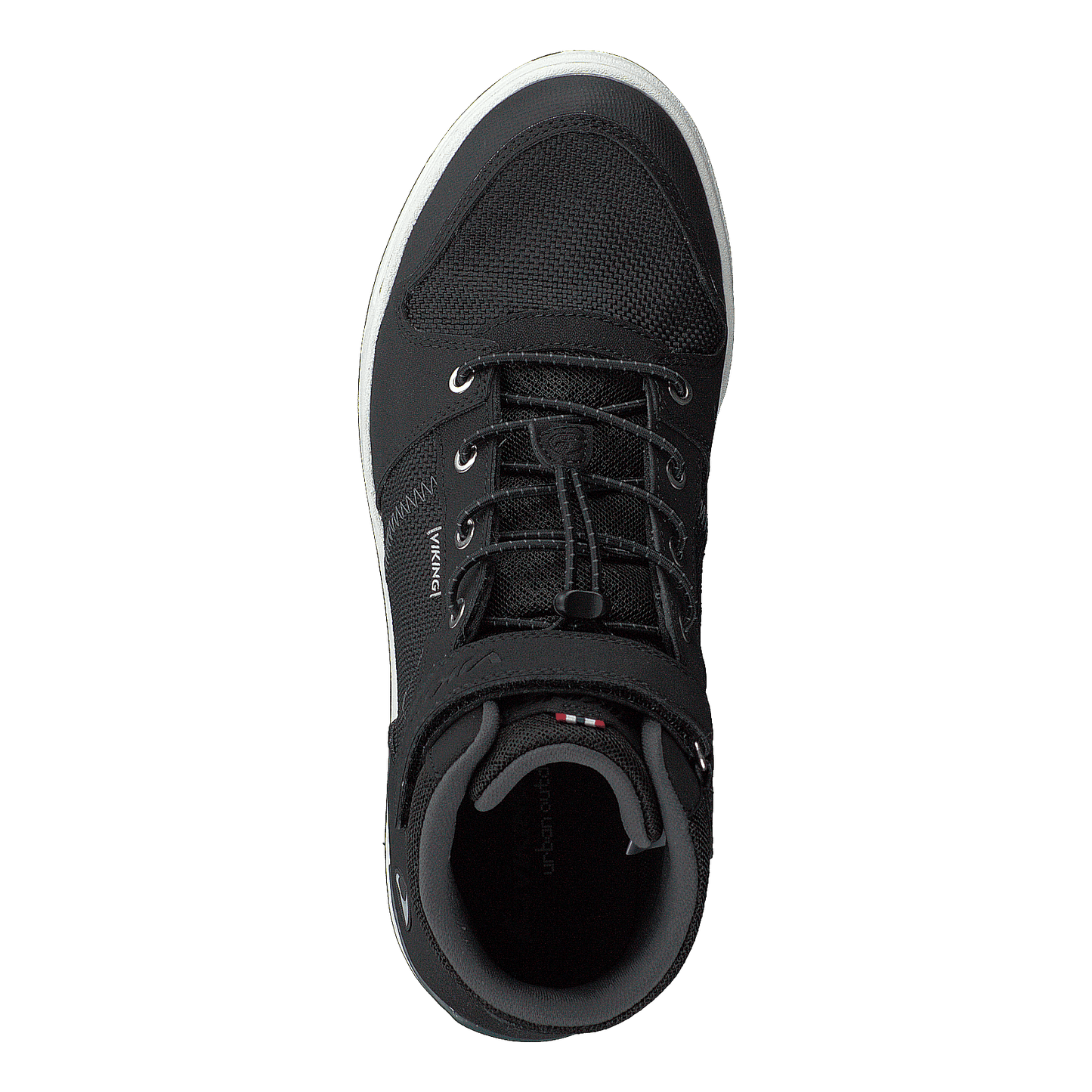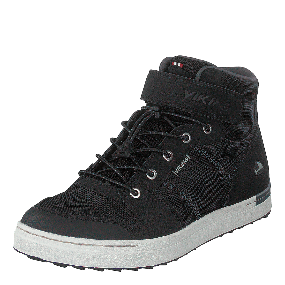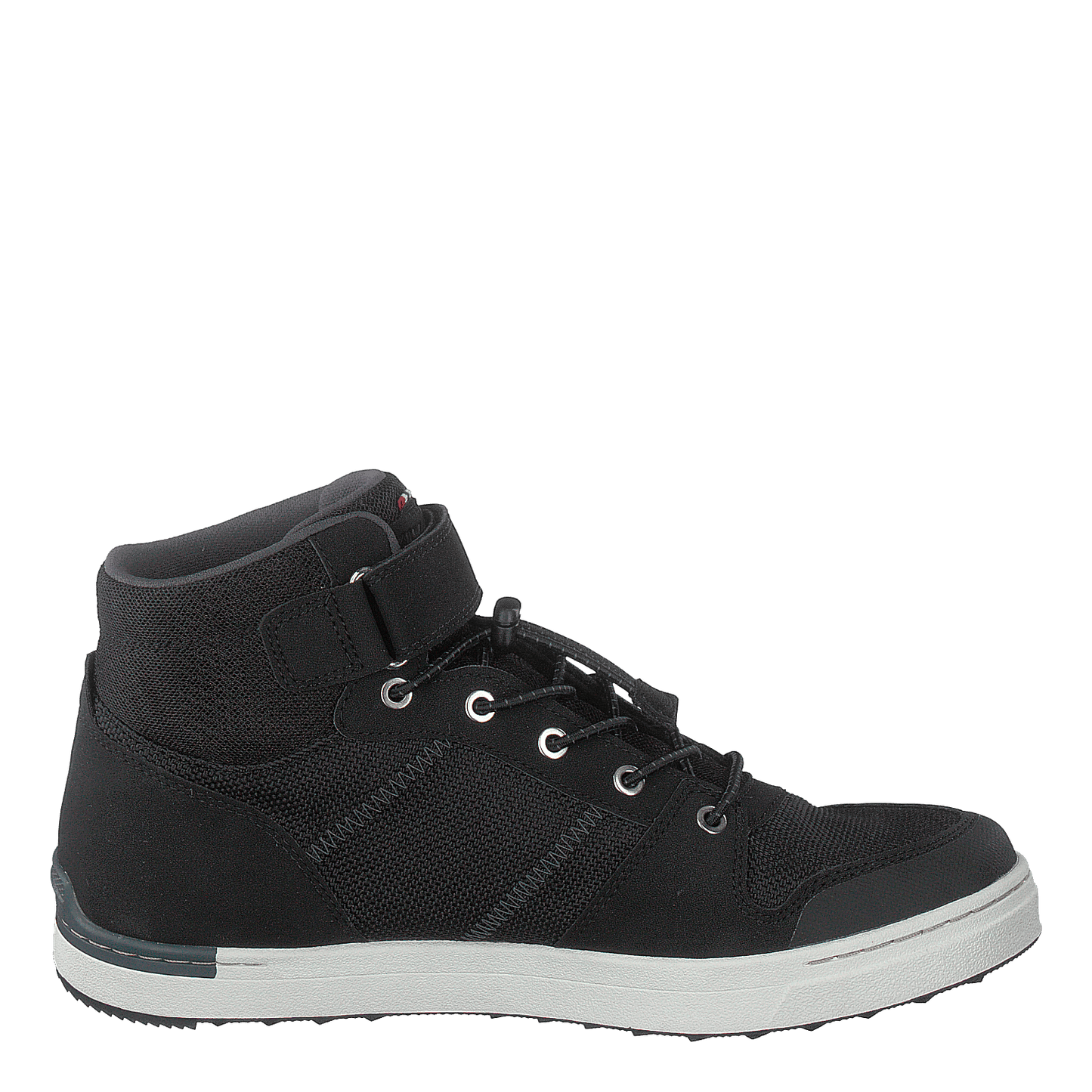 The Tonsen Mid Gtx is a versatile black and charcoal shoe featuring GORE-TEX technology for waterproof breathability. Its textile and suede-like upper combines style with functionality, while the padded ankle collar and velcro strap ensure comfort and ease of use. The white midsole provides cushioning, and the rubber outsole offers reliable traction for everyday wear or light outdoor activities.