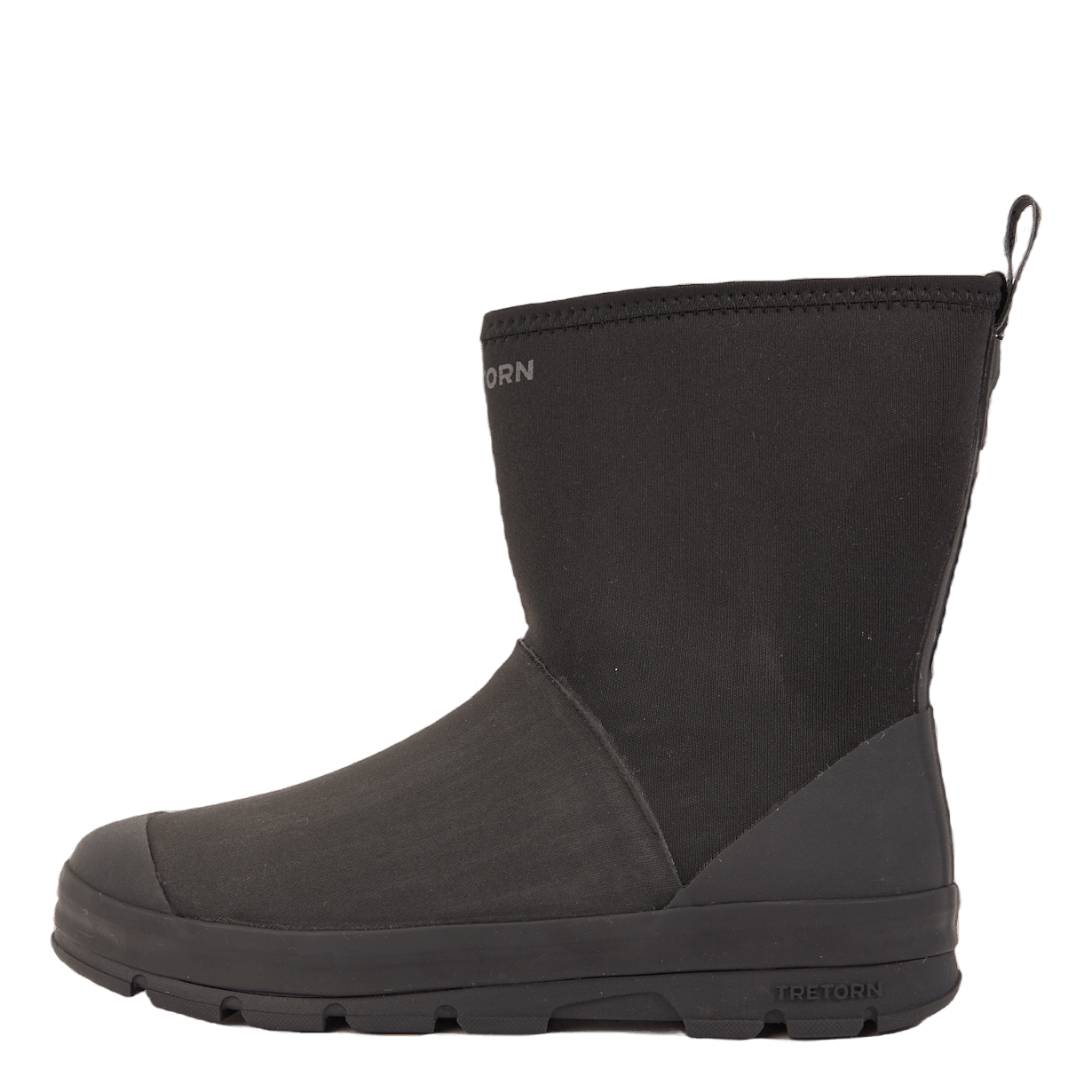 The Tretorn Mimas Hybrid Jet Black is a sleek, modern winter boot designed for style and functionality. Featuring a stretchy, sock-like upper extending to mid-calf and a robust rubber sole, this pull-on boot offers easy wear and excellent traction. Its all-black minimalist design, reinforced toe cap, and sturdy construction make it ideal for urban winter wear or casual outdoor activities.