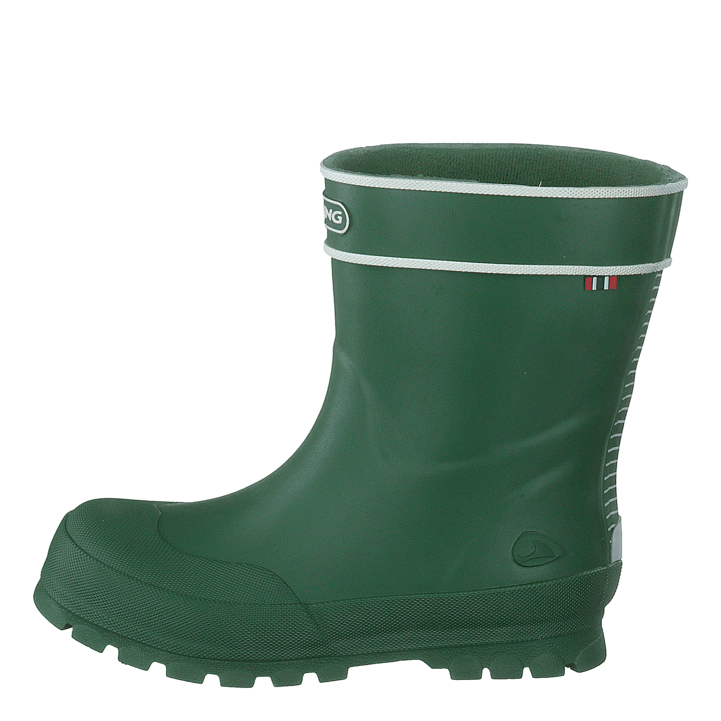 Meet our Alv Jolly boot, consistently voted Best in Test for years and now for our youngest customers with the smallest feet! This retro-styled rain boot has many modern details like double-sealed seams, a reinforced toe cap, reflective details, and deep lugs for maximum traction on wet days. The boot has a standard fit, and it features synthetic textile lining and a removable sole for quick drying. This boot is handcrafted from natural rubber. This product is both vegan and PVC-free.