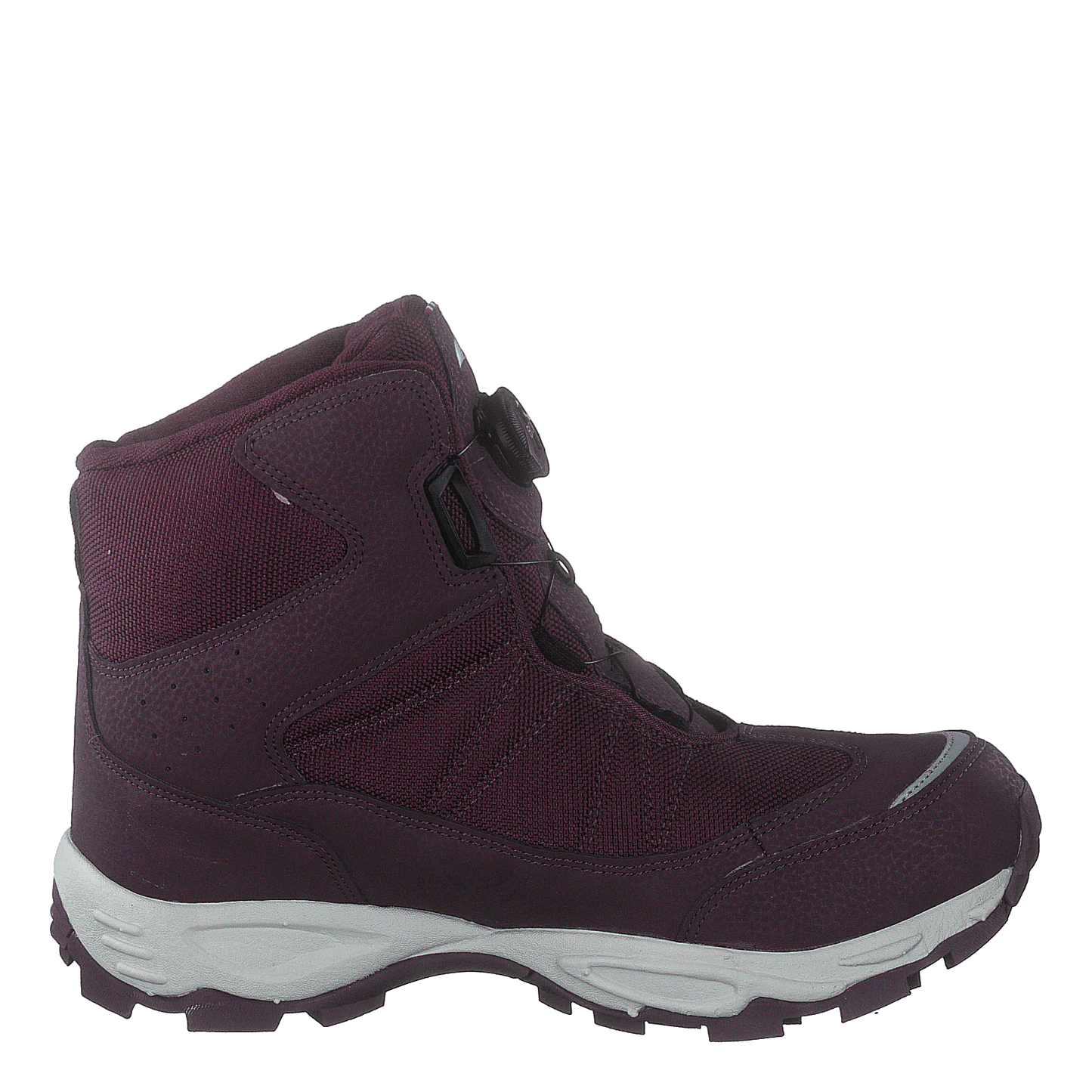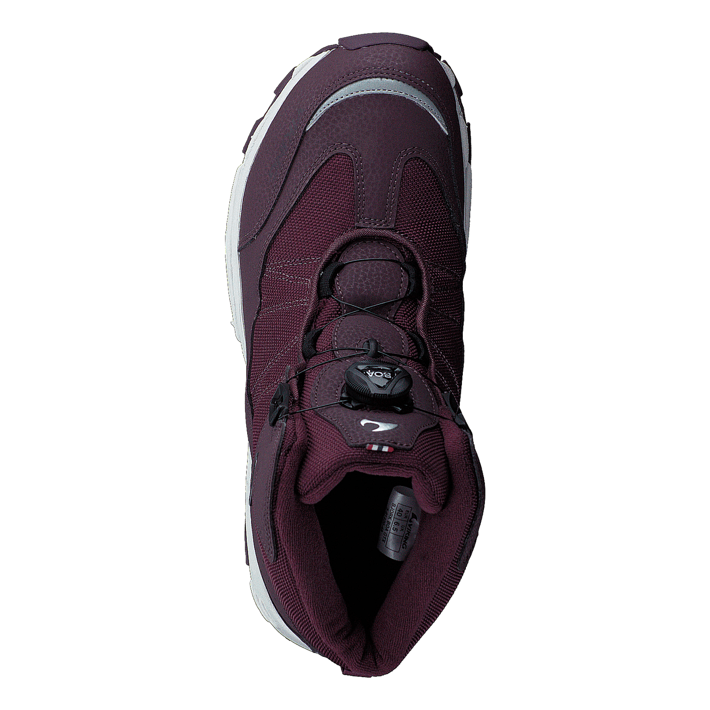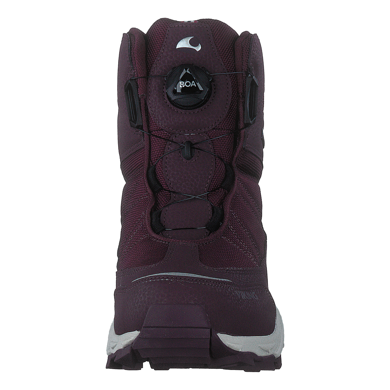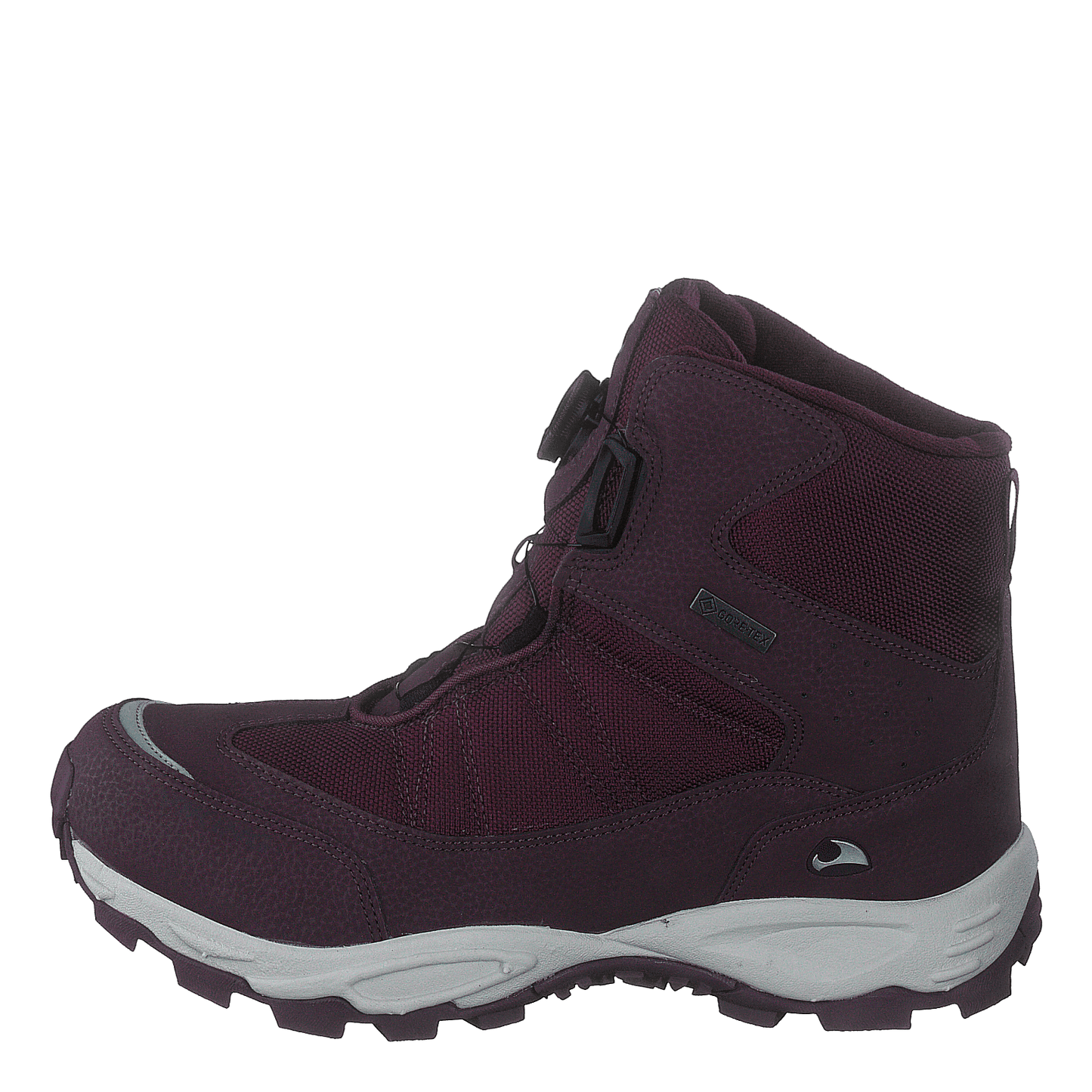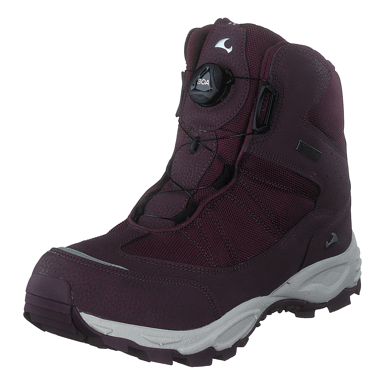 The Bjork High Gtx Boa Warm Grape boot combines style and functionality for cold weather performance. Featuring a Gore-Tex waterproof membrane, high-cut design for ankle protection, and BOA® Fit System for easy adjustments. The warm grape color and athletic look are complemented by a durable construction, wool blend lining for warmth, and a chunky sole for traction on various terrains.