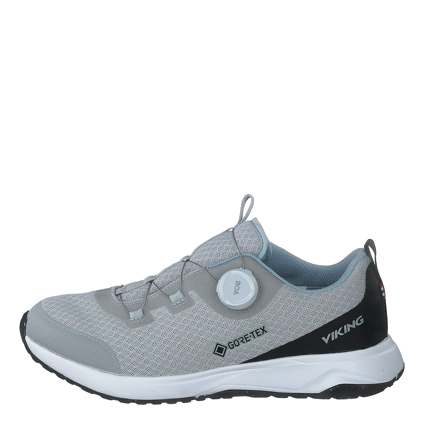 Elevate Low F Gtx Boa Light Grey by Viking is a versatile urban sneaker combining style and functionality. Featuring a waterproof GORE-TEX membrane, lightweight EVA midsole, and recycled rubber outsole, it offers comfort in various weather conditions. The BOA dial system ensures quick, precise fit adjustments, while the reflective ripstop and mesh upper enhances visibility. This vegan-friendly shoe is ideal for urban exploration or everyday wear.