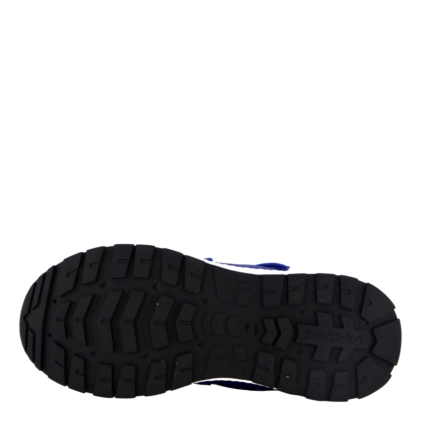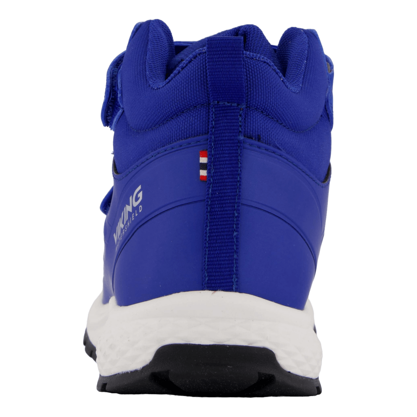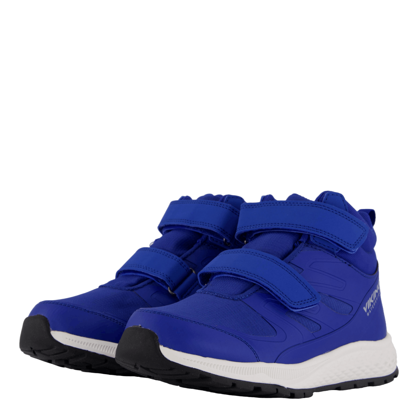 Viking's Equip Mid Wp 2v Blue is a children's athletic shoe designed for active lifestyles. This mid-top sneaker features a vibrant royal blue upper with breathable mesh and synthetic materials. Two wide velcro straps offer easy fastening, while the padded collar provides ankle support. With WATERSHIELD technology, these shoes are water-resistant, making them ideal for outdoor adventures.