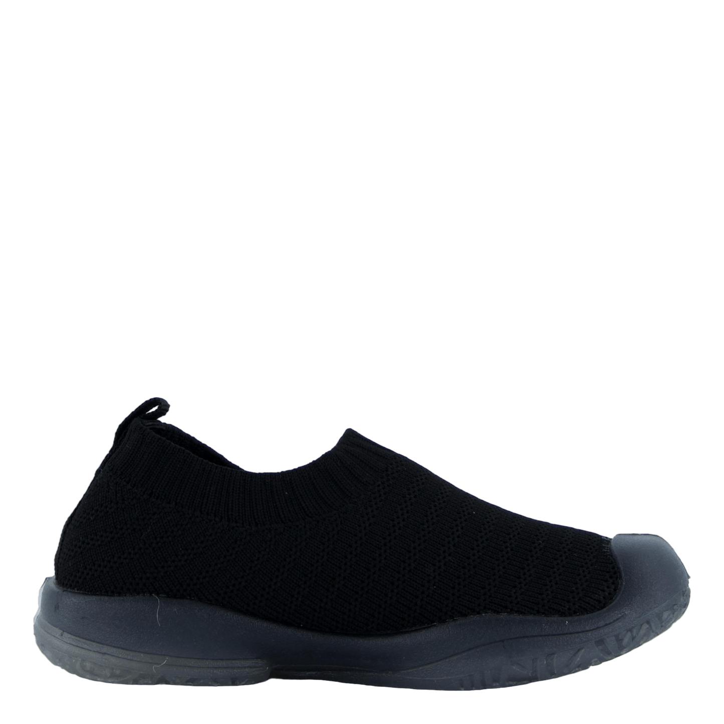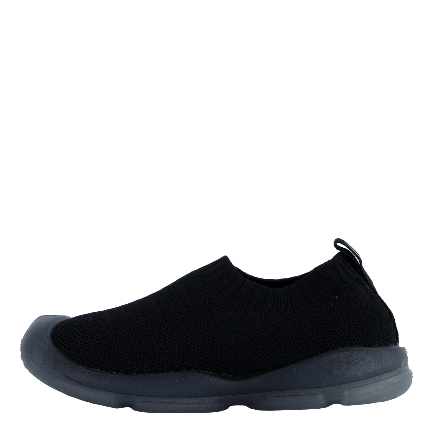 Experience sleek comfort with the Vilde Black slip-on shoe. This modern, athletic-inspired footwear features a seamless black knit upper for breathability and a sock-like fit. The pull-on design offers easy wear, while the reinforced toe area adds durability. With its minimalist aesthetic and streamlined silhouette, this shoe combines style and functionality for everyday use.