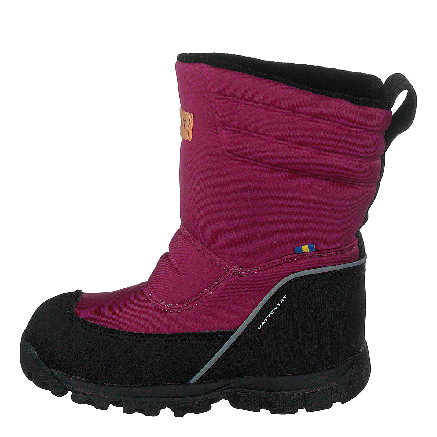 Voxna WP Damson Plum winter boots offer 100% waterproofing with a biodegradable membrane and sealed seams. Featuring a vibrant deep purple upper, these boots incorporate partially recycled materials and a natural rubber outsole for grip. With a warm fleece lining, removable insole, and reflective detailing, they combine style, comfort, and practicality for cold weather activities.
