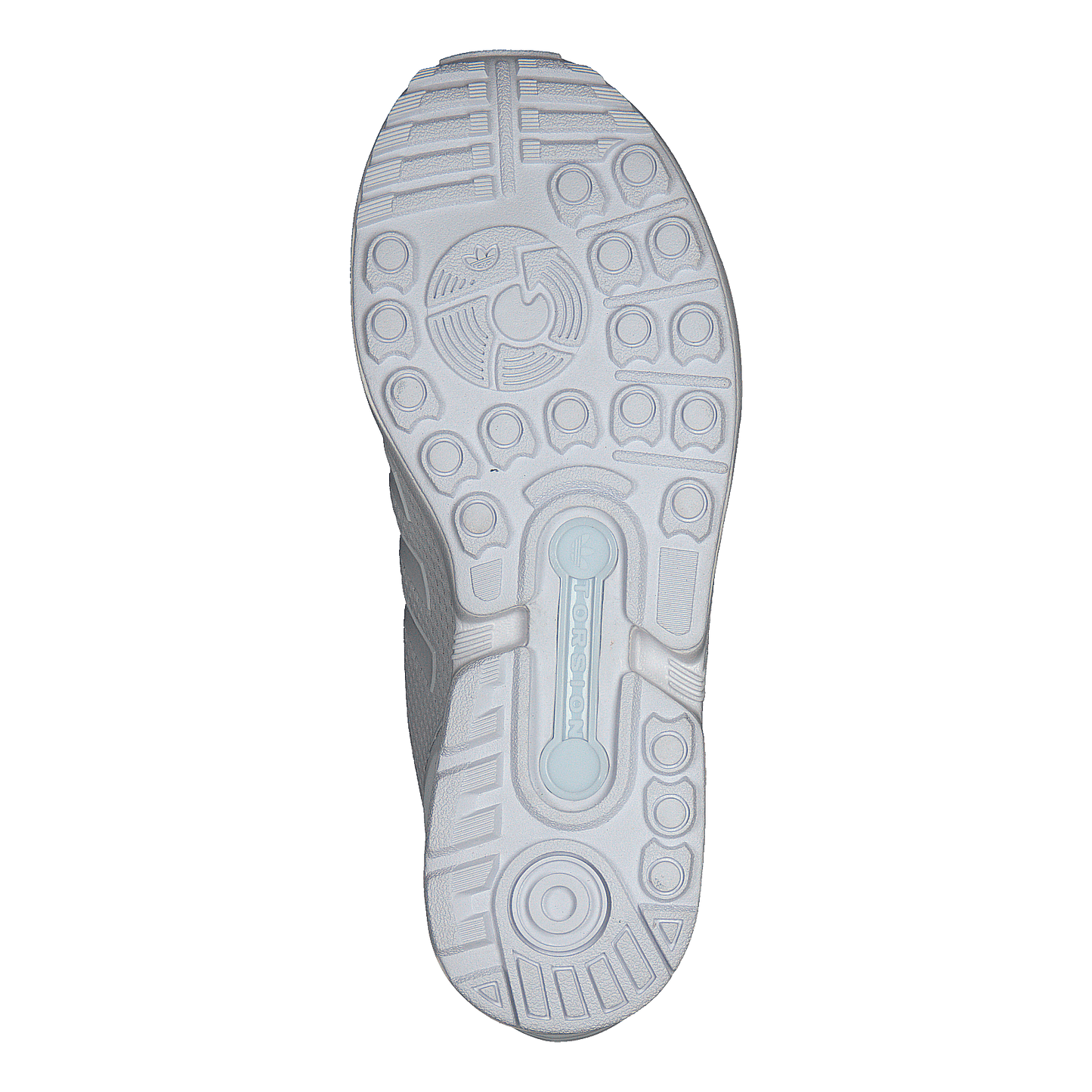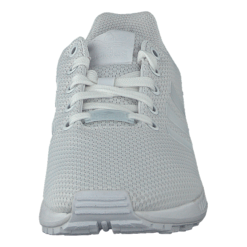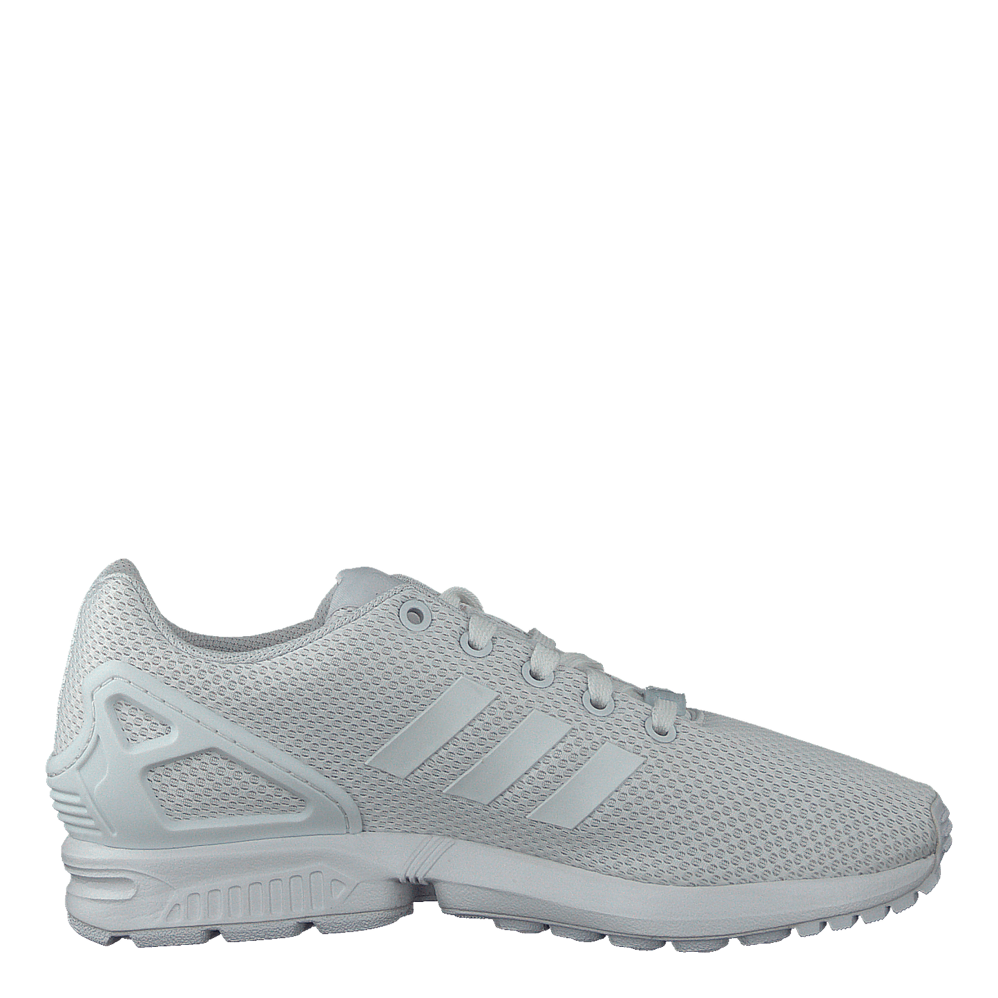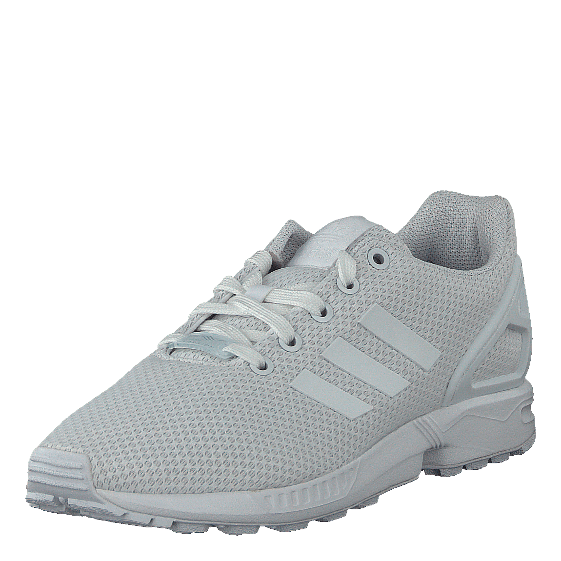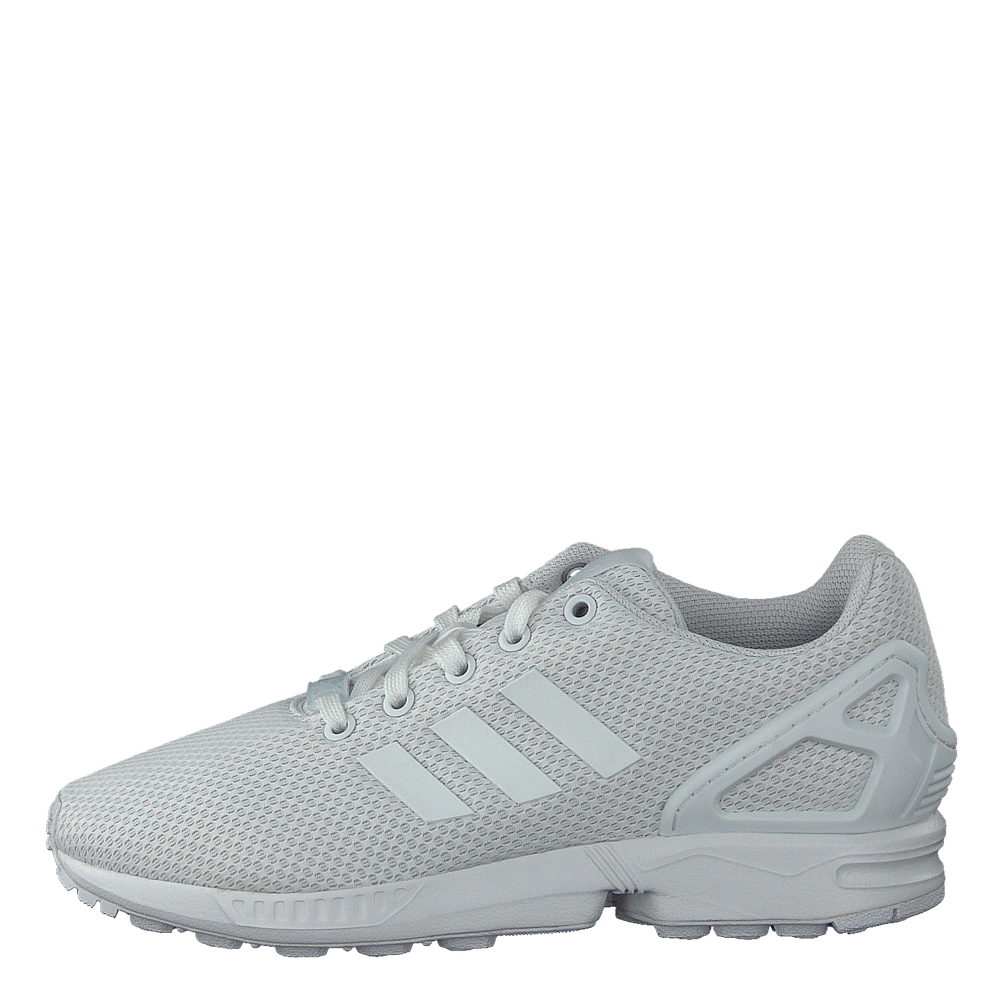 These kids' ZX Flux K sneakers from adidas Originals blend style and comfort. Featuring a sleek, monochromatic light gray design, the shoes boast a breathable one-piece mesh upper and a TPU heel counter for stability. With a lace-up closure and durable rubber sole, they're versatile for both athletic activities and casual wear.